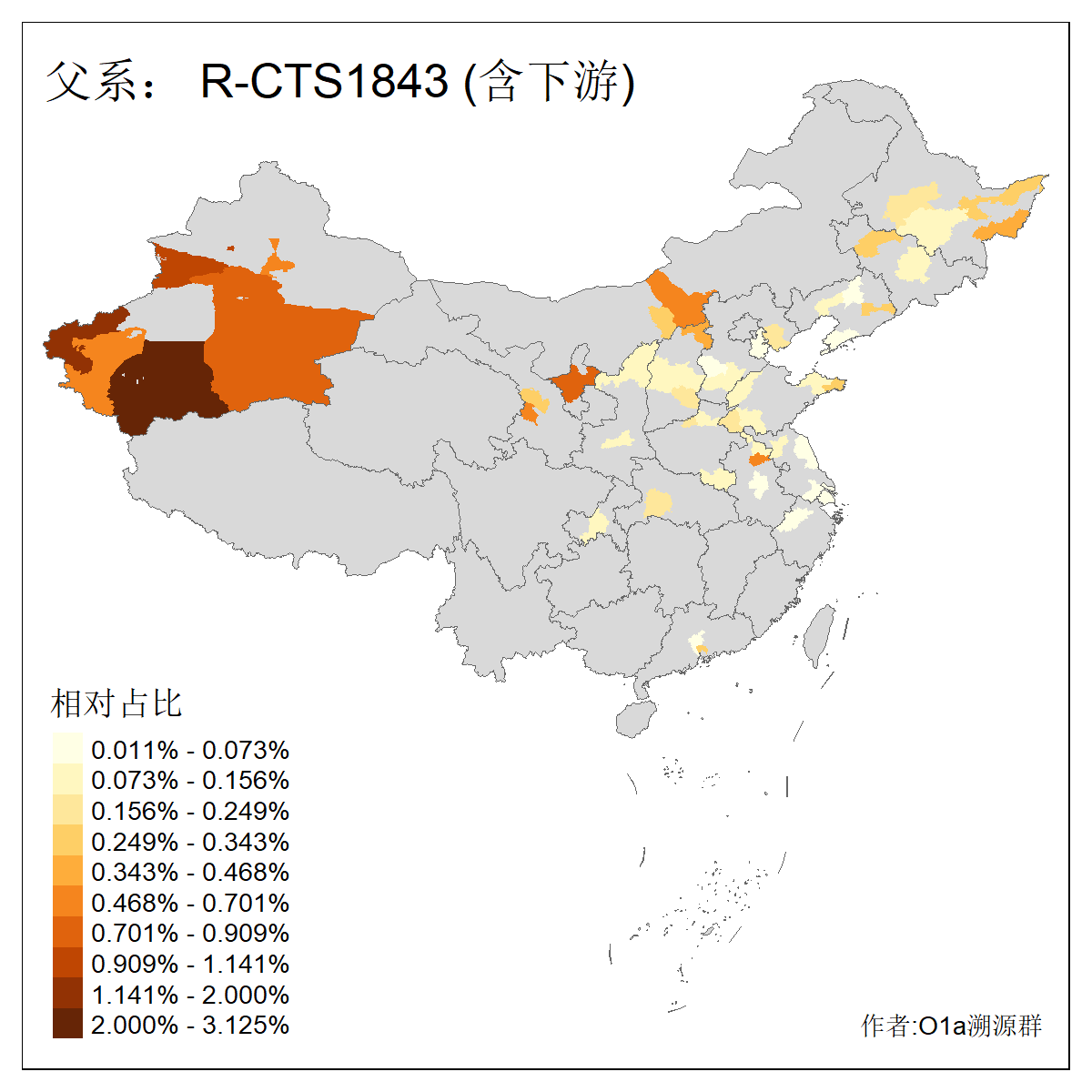 | R_R-Y482_R-M479_R-M124_R-FGC22607 | 10910 | 0.116% | 184人(含下游) 张:22 马:22 王:15 李:9 刘:7 艾:5 阿:5 陈:5 杨:4 苏:4 赵:4 康:3 曹:3 木:3 ![]() | 0人(不含下游) |