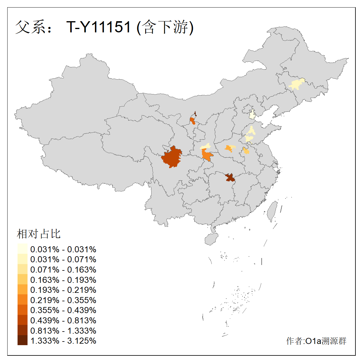 | #父系分布图 作者:咸宁华 2024年8月29日 注意:某些支系不含下游人数过少统计仅供参,仅统计含下游大于等于8人的支系 | ||||