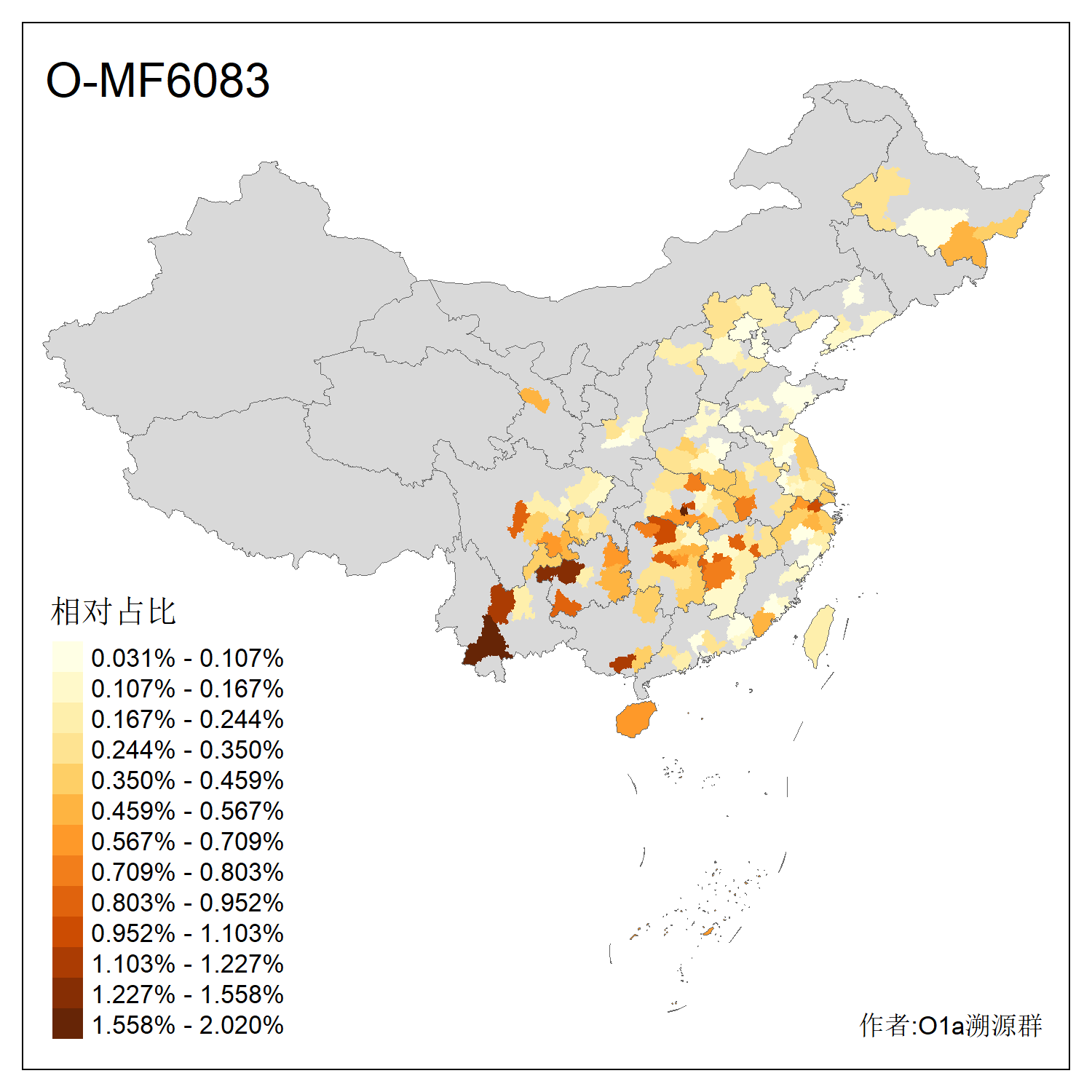 | O-M119_O-Y14027_O-Z23193_O-M307_O-F446_O-Z23448 | 9460 | 6.337% | 17152人(含下游)![]() | 4人(不含下游)![]() |