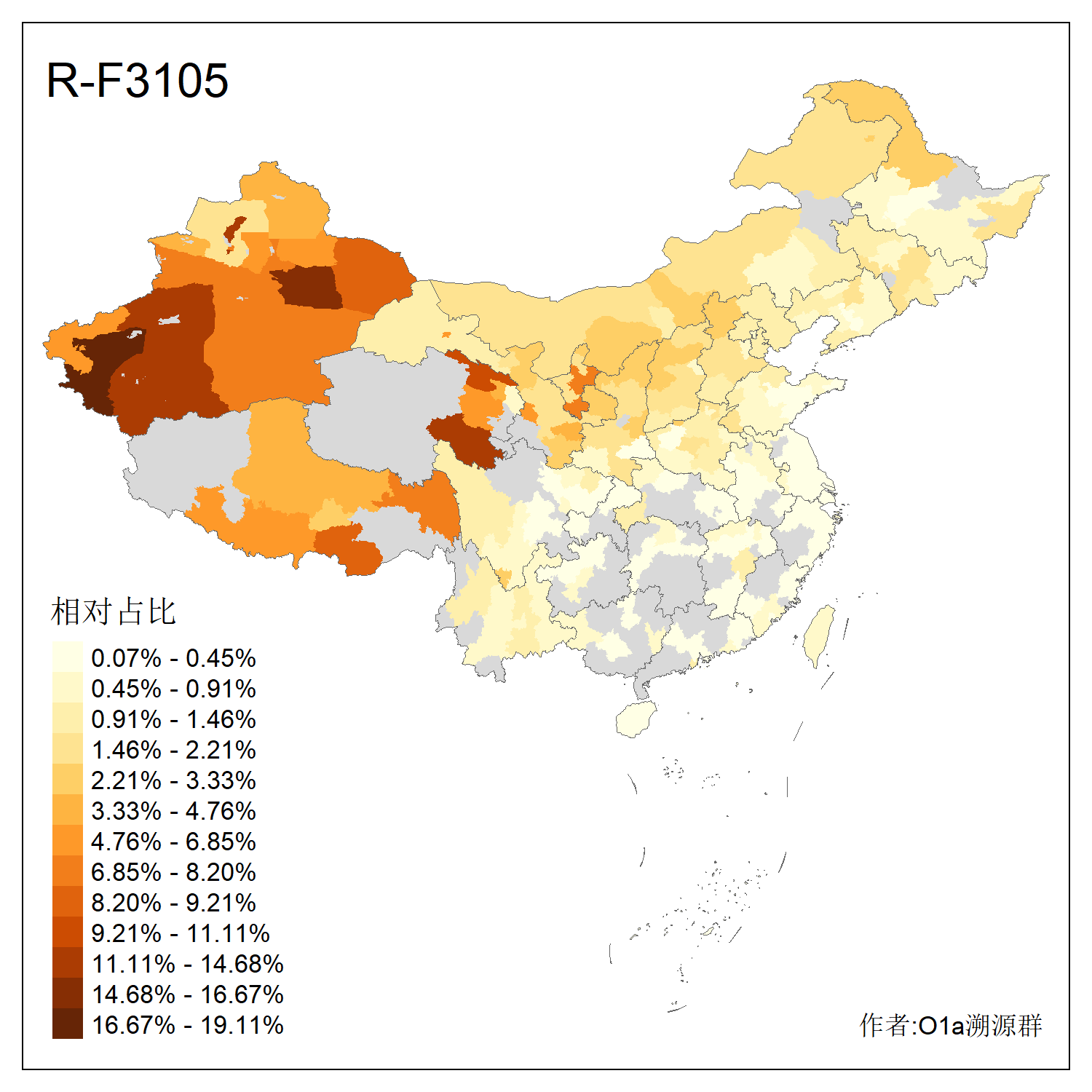 | R_R-Y482_R1_R1a_R-M459_R-M198_R-M417_R-PF6162_R-F992_R-F3105 | 4520 | 0.968% | 1717人(含下游)![]() | 337人(不含下游)![]() |