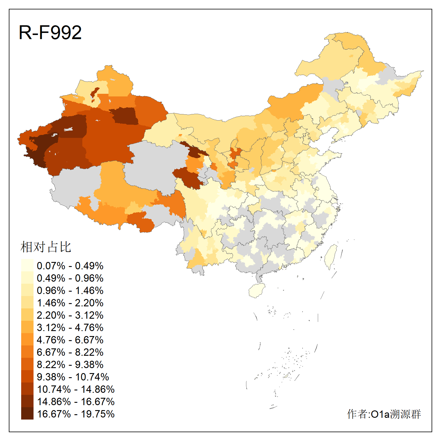 | R_R-Y482_R1_R1a_R-M459_R-M198_R-M417_R-PF6162_R-F992 | 4600 | 0.931% | 1919人(含下游)![]() | 162人(不含下游)![]() |