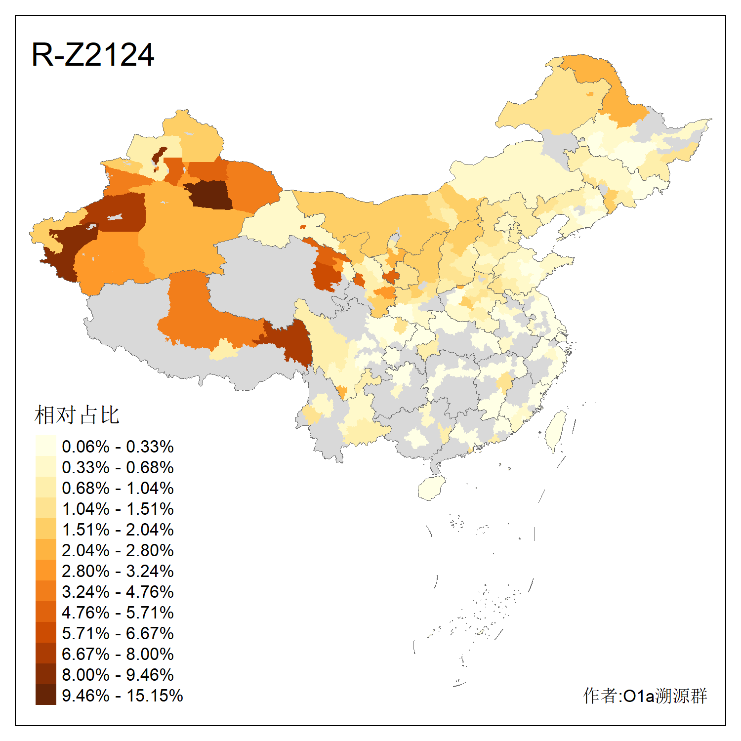 | R_R-Y482_R1_R1a_R-M459_R-M198_R-M417_R-PF6162_R-F992_R-F3105_R-Z2124_R-Z2125_R-Z2123 | 4090 | 0.435% | 767人(含下游)![]() | 594人(不含下游)![]() |