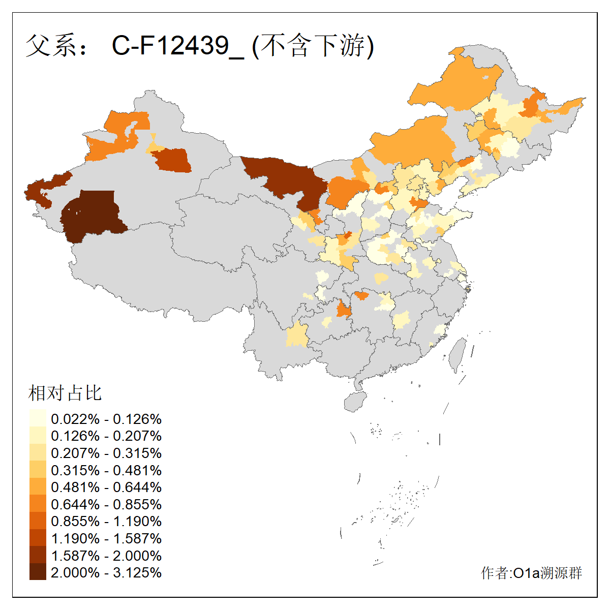 | #父系分布图 作者:咸宁华 2024年8月29日 注意:某些支系不含下游人数过少统计仅供参,仅统计含下游大于等于8人的支系 | ||||
