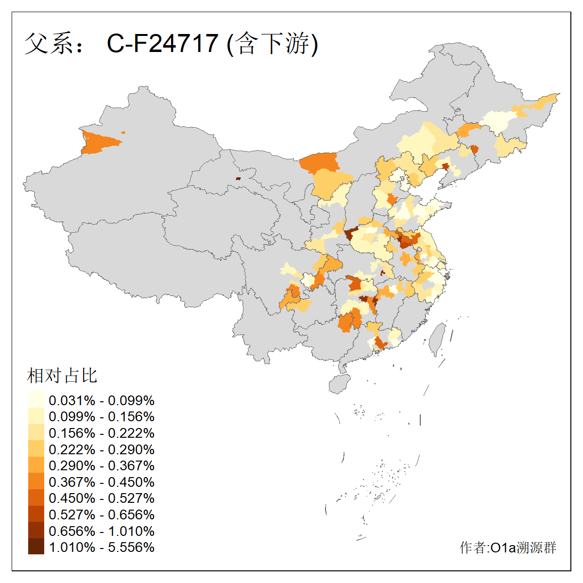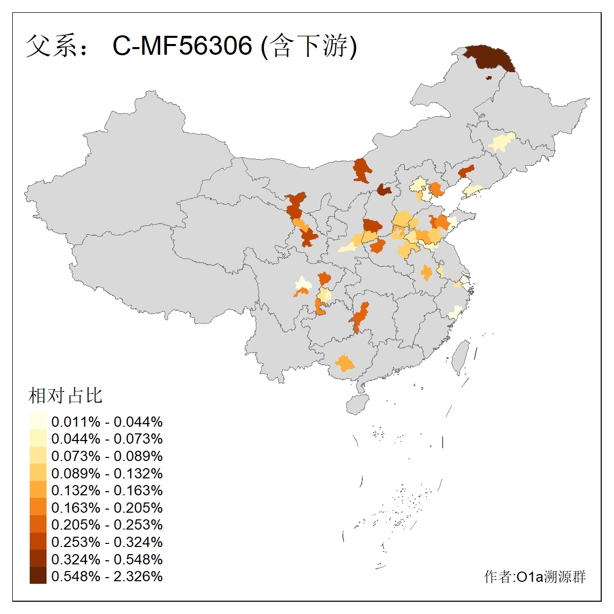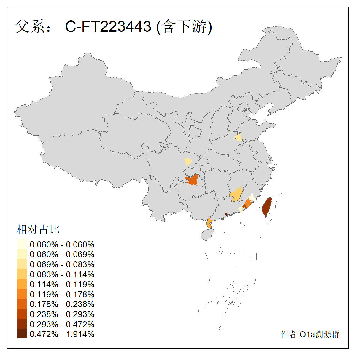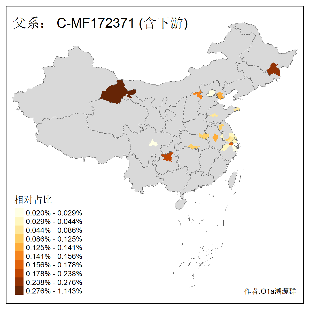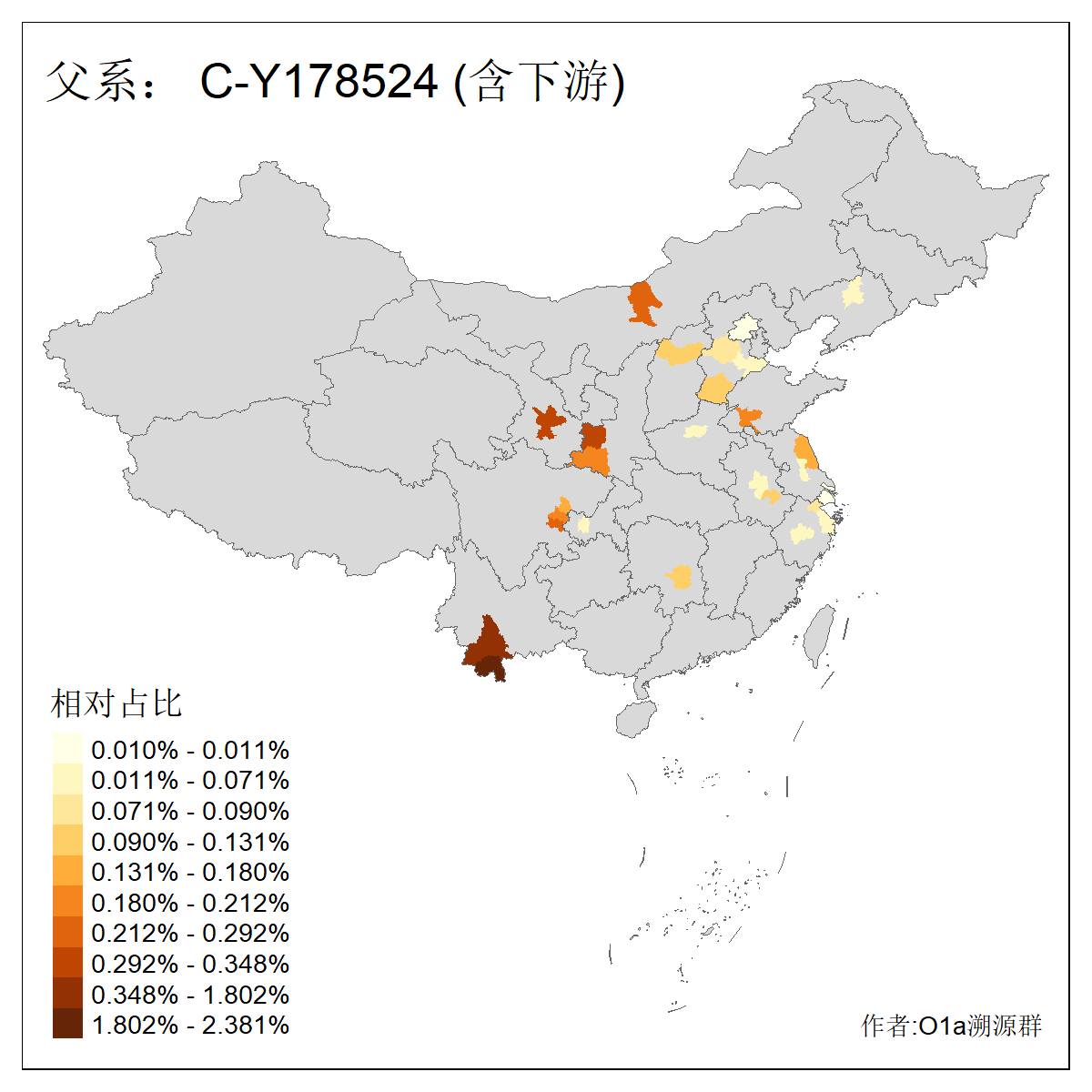 | C-M130_C-M217_C-F1067_C-CTS2_C-F978_C-F3895_C-CTS2657_C-A14901_C-A14909_C-A14908 | 7120 | 0.173% | 443人(含下游) 李:38 王:32 陈:28 张:25 刘:21 周:16 郑:16 杨:13 徐:12 吴:10 董:9 胡:8 袁:8 黄:8 ![]() | 21人(不含下游) 刘:4 周:2 高:2 严:1 凌:1 商:1 张:1 徐:1 李:1 梅:1 田:1 薛:1 贾:1 郭:1 ![]() |