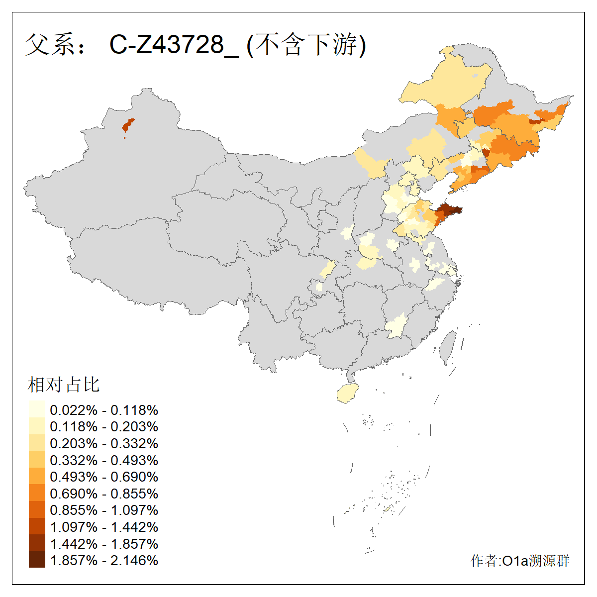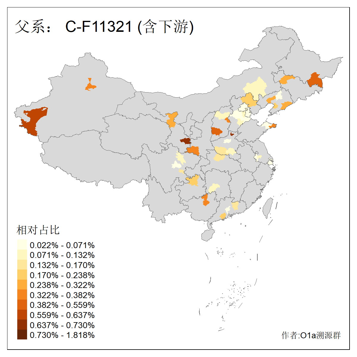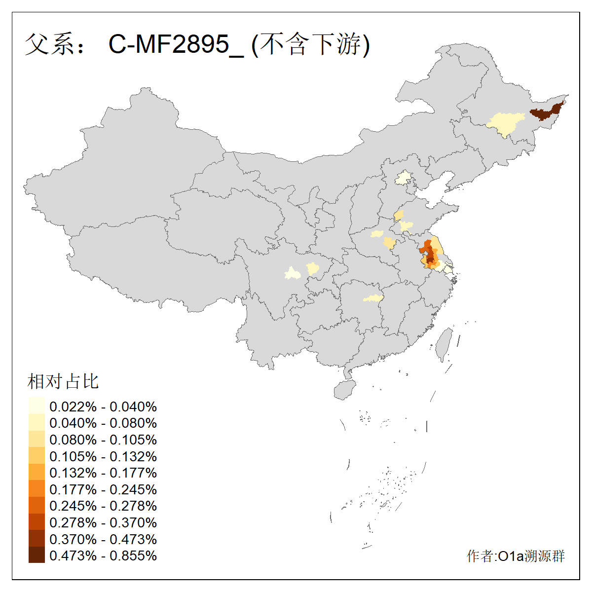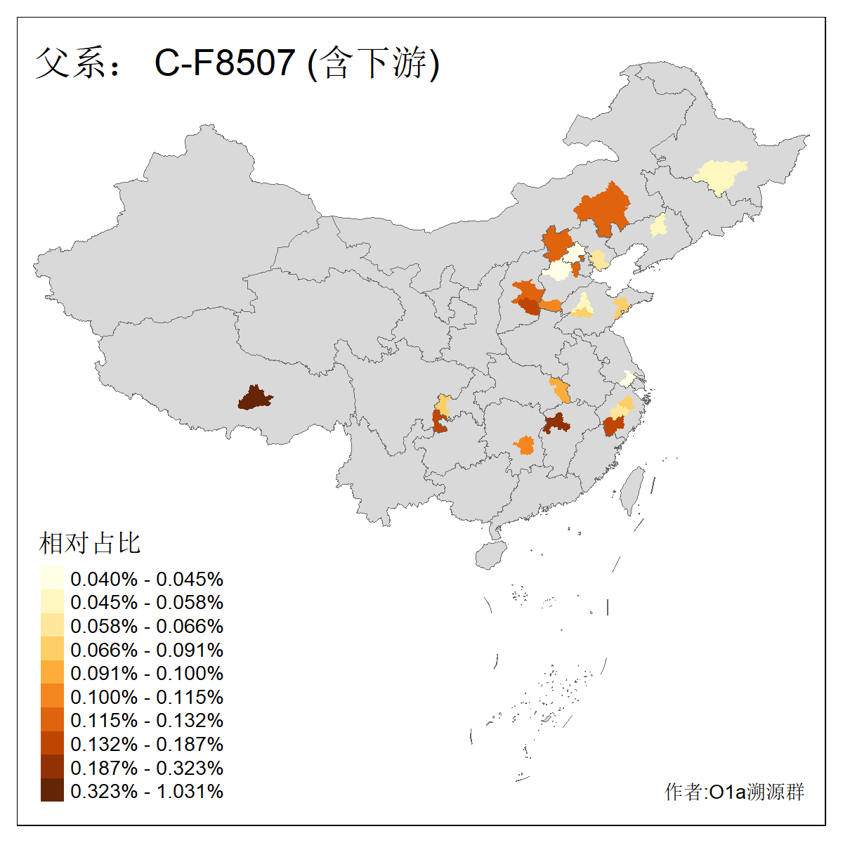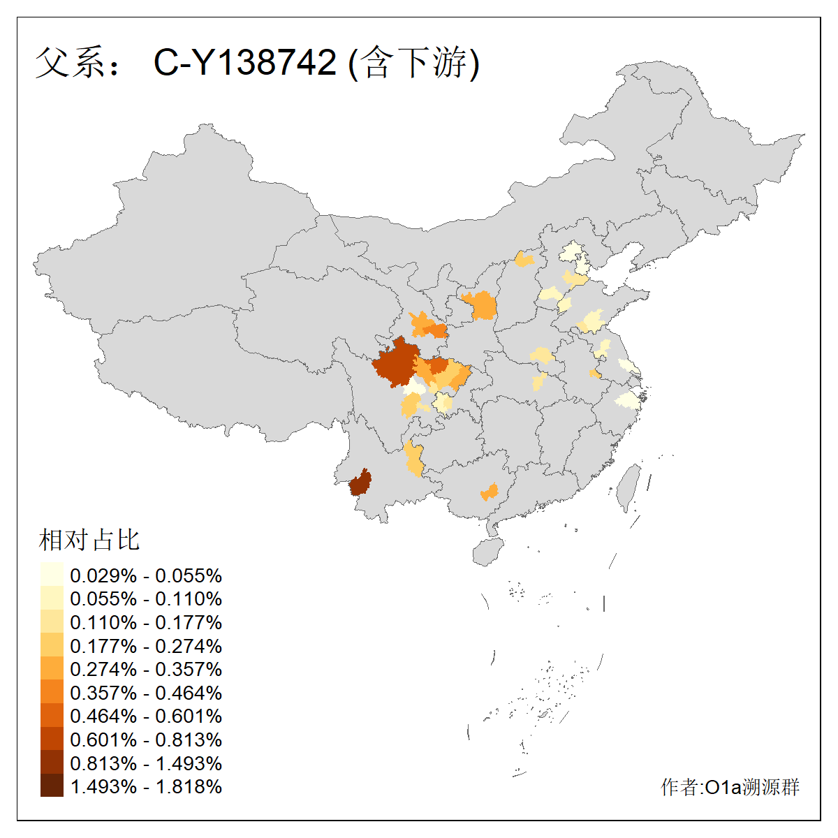 | C-M130_C-M217_C-F1067_C-CTS2_C-F978_C-F3895_C-CTS2657_C-A14901_C-A14909_C-A14908 | 7120 | 0.173% | 443人(含下游) 李:38 王:32 陈:28 张:25 刘:21 周:16 郑:16 杨:13 徐:12 吴:10 董:9 胡:8 袁:8 黄:8 ![]() | 21人(不含下游) 刘:4 周:2 高:2 严:1 凌:1 商:1 张:1 徐:1 李:1 梅:1 田:1 薛:1 贾:1 郭:1 ![]() |