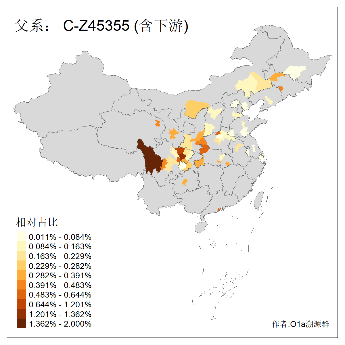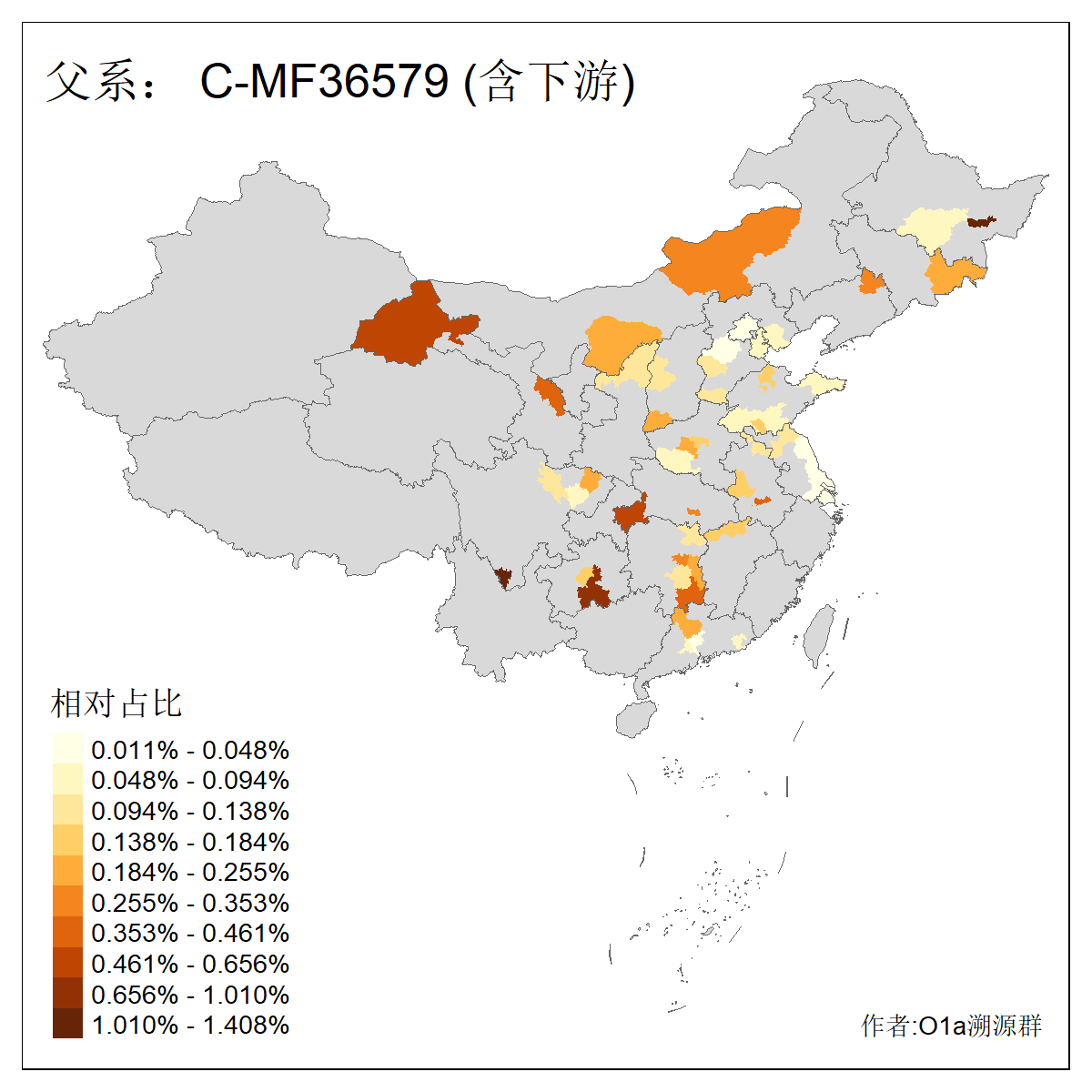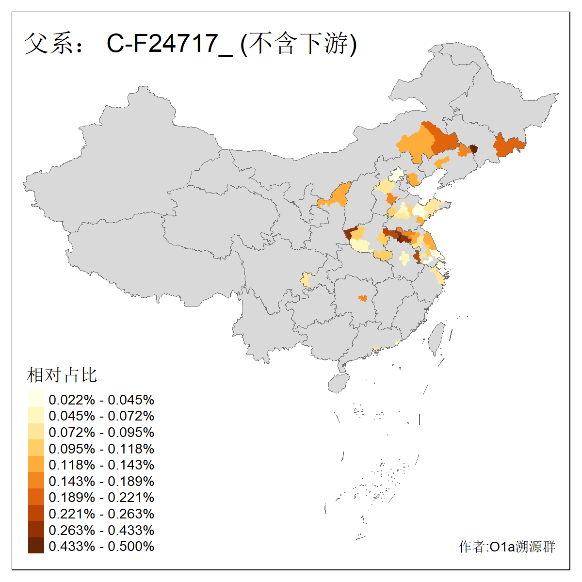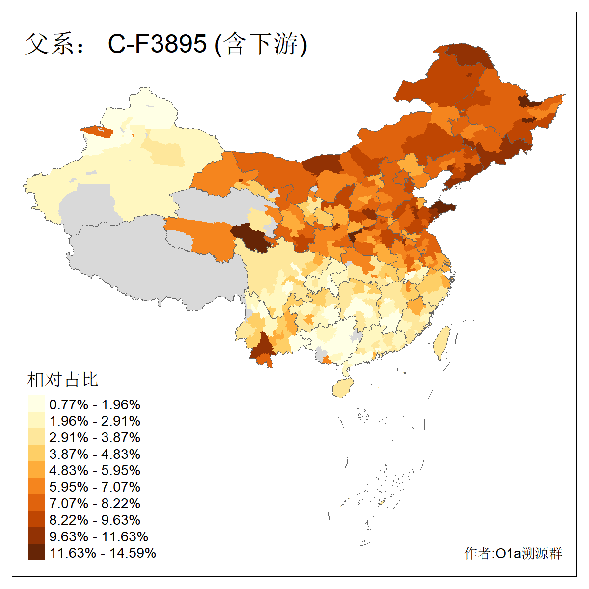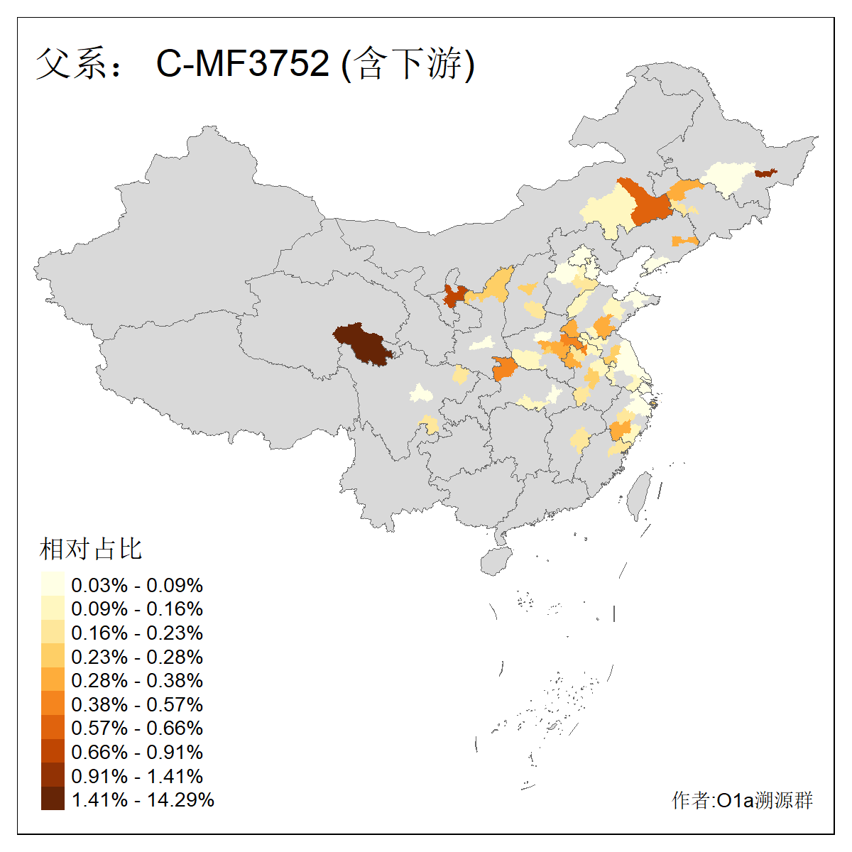 | C-M130_C-M217_C-F1067_C-CTS2_C-F978_C-F3895_C-CTS2657_C-A14901_C-A14909_C-A14908 | 7120 | 0.173% | 443人(含下游) 李:38 王:32 陈:28 张:25 刘:21 周:16 郑:16 杨:13 徐:12 吴:10 董:9 胡:8 袁:8 黄:8 ![]() | 21人(不含下游) 刘:4 周:2 高:2 严:1 凌:1 商:1 张:1 徐:1 李:1 梅:1 田:1 薛:1 贾:1 郭:1 ![]() |