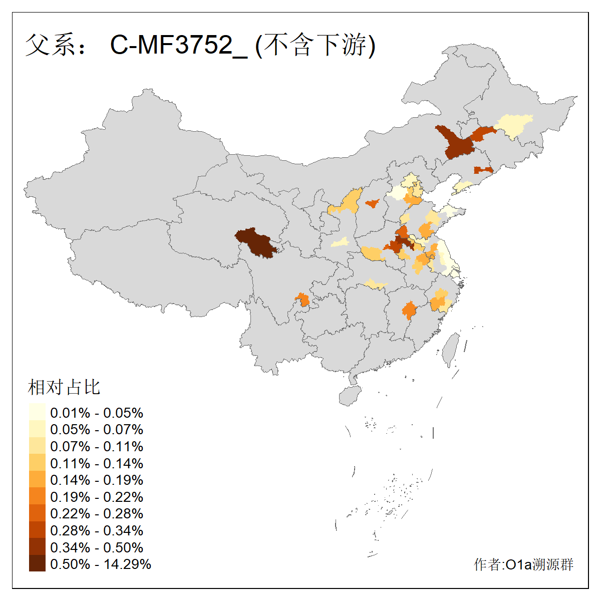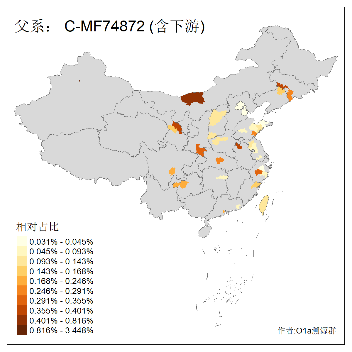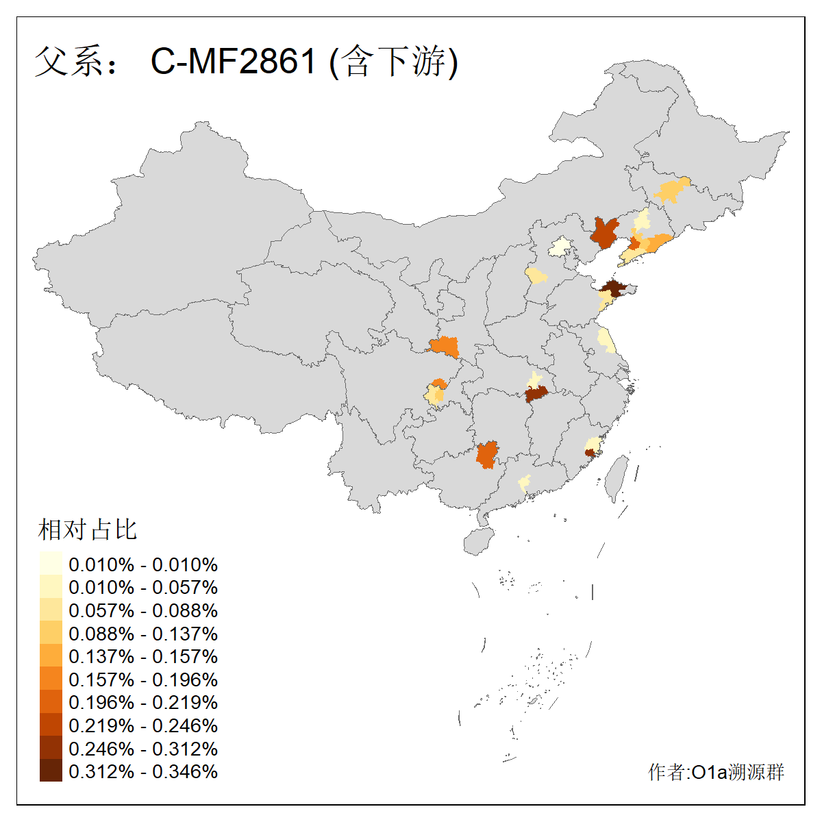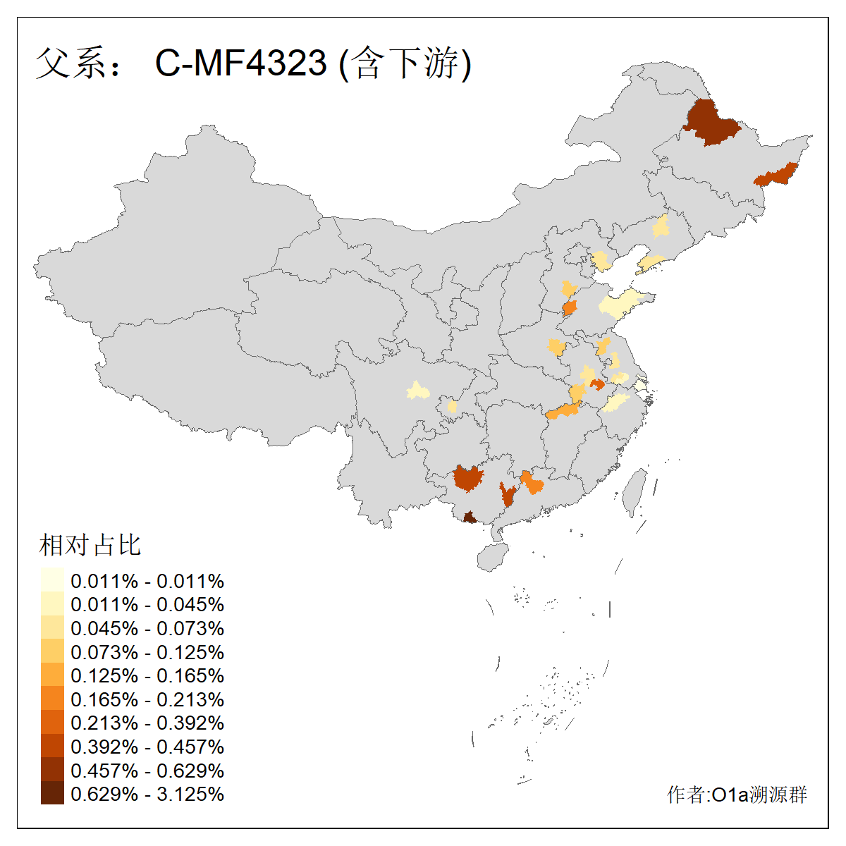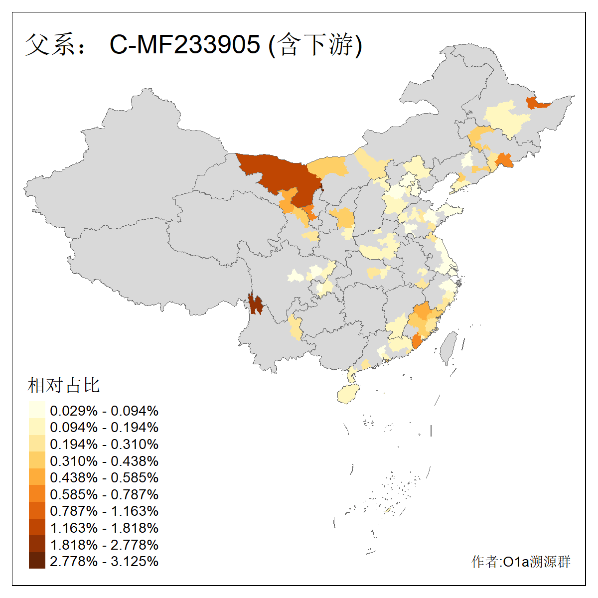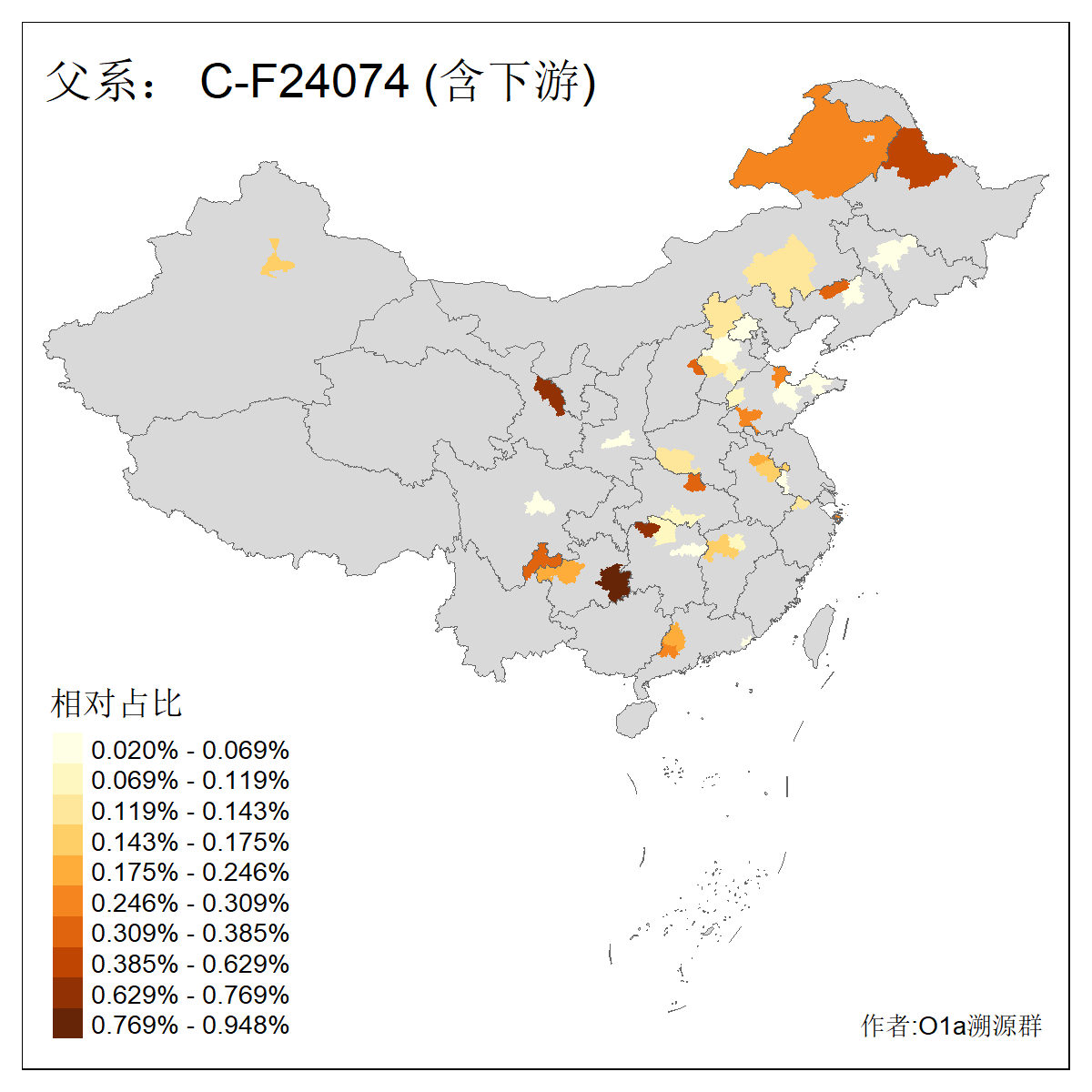 | C-M130_C-M217_C-F1067_C-CTS2_C-F978_C-F3895_C-CTS2657_C-A14901_C-A14909_C-A14908 | 7120 | 0.173% | 443人(含下游) 李:38 王:32 陈:28 张:25 刘:21 周:16 郑:16 杨:13 徐:12 吴:10 董:9 胡:8 袁:8 黄:8 ![]() | 21人(不含下游) 刘:4 周:2 高:2 严:1 凌:1 商:1 张:1 徐:1 李:1 梅:1 田:1 薛:1 贾:1 郭:1 ![]() |