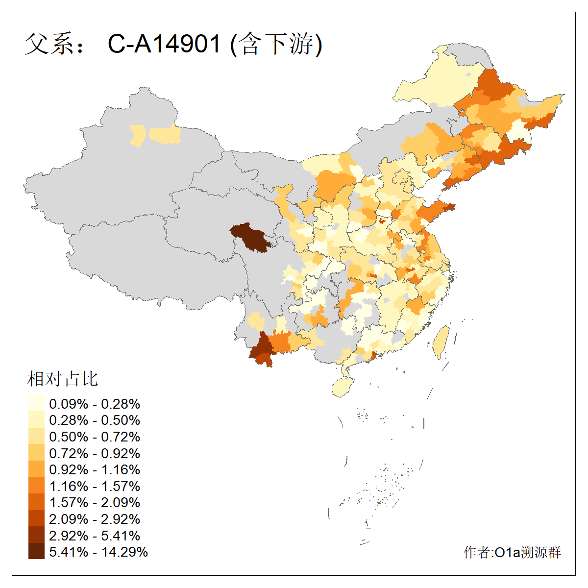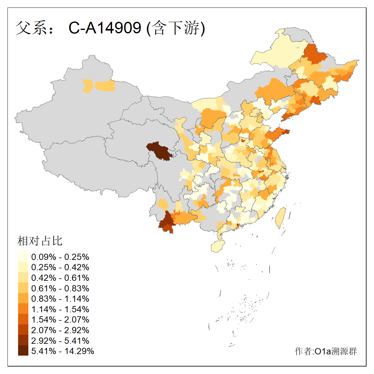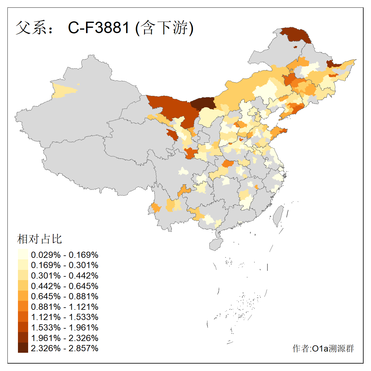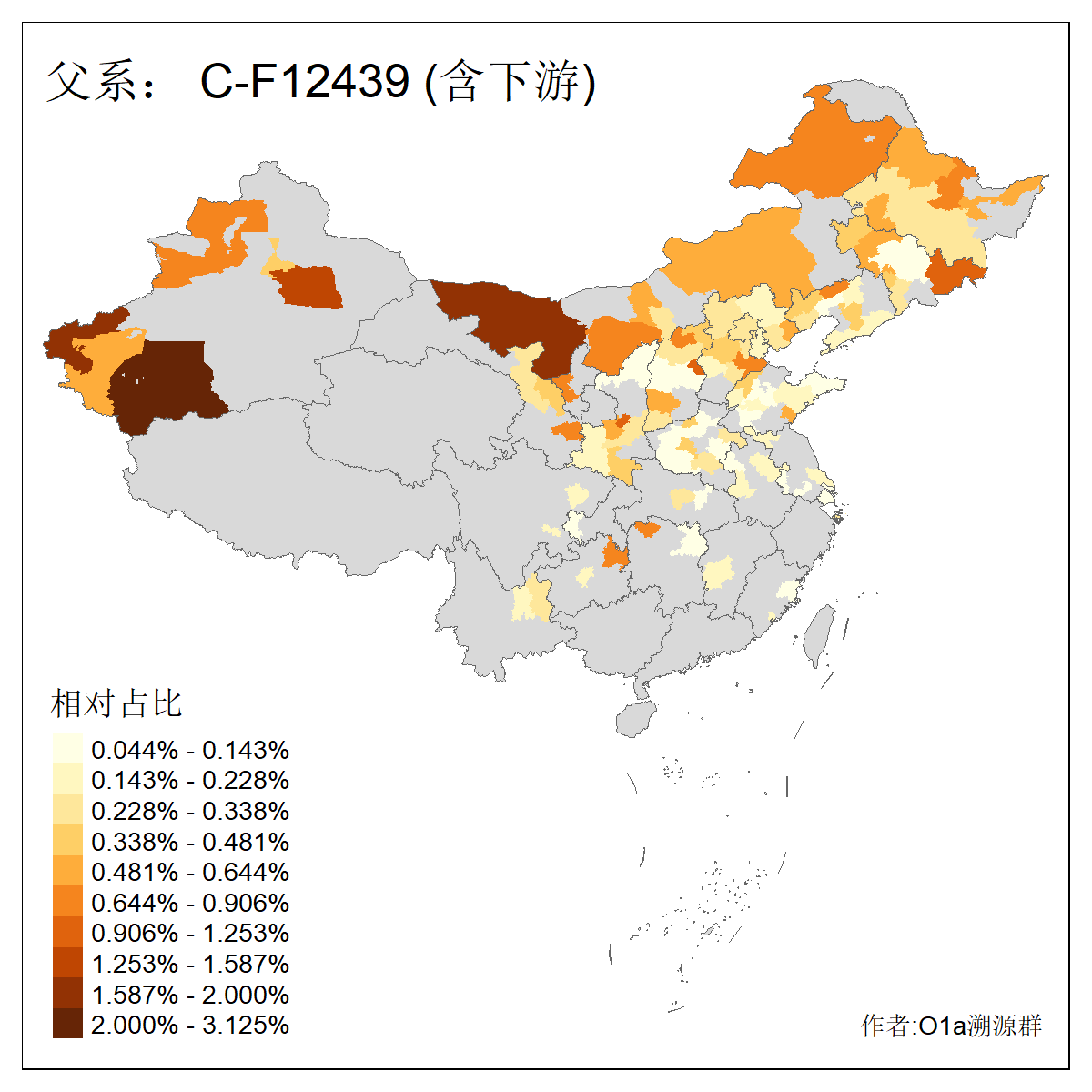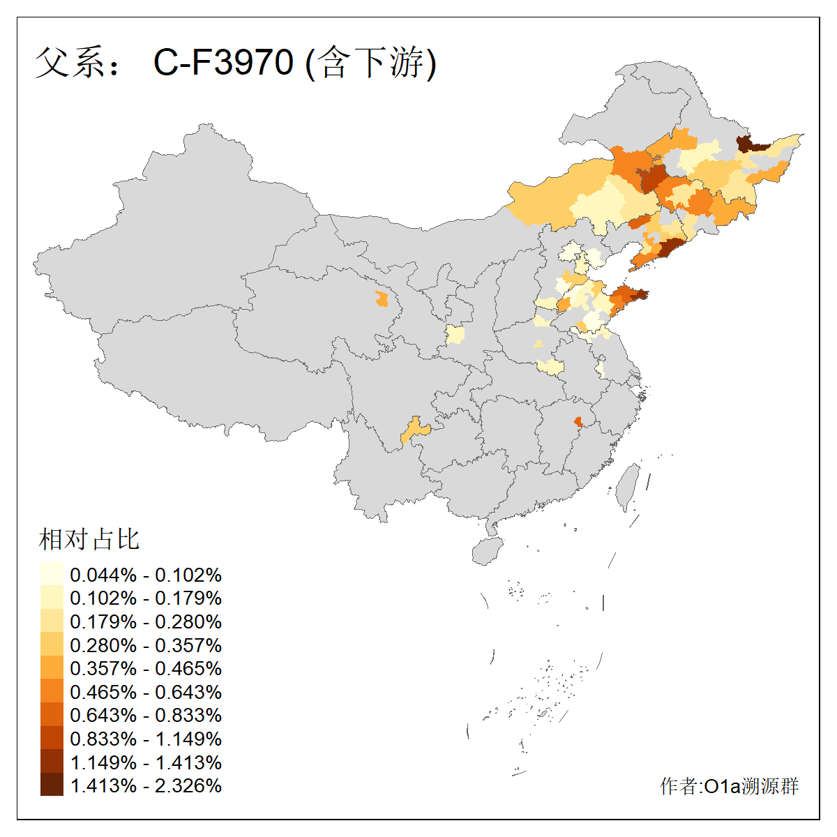 | C-M130_C-M217_C-F1067_C-CTS2_C-F978_C-F3895_C-CTS2657_C-A14901_C-A14909_C-A14908 | 7120 | 0.173% | 443人(含下游) 李:38 王:32 陈:28 张:25 刘:21 周:16 郑:16 杨:13 徐:12 吴:10 董:9 胡:8 袁:8 黄:8 ![]() | 21人(不含下游) 刘:4 周:2 高:2 严:1 凌:1 商:1 张:1 徐:1 李:1 梅:1 田:1 薛:1 贾:1 郭:1 ![]() |