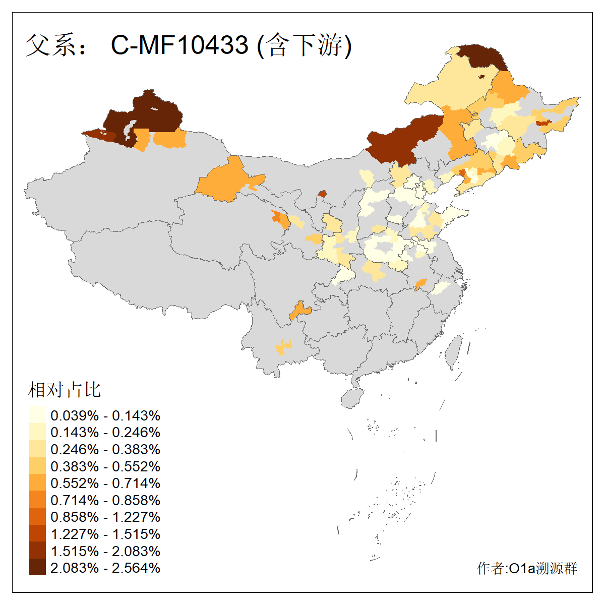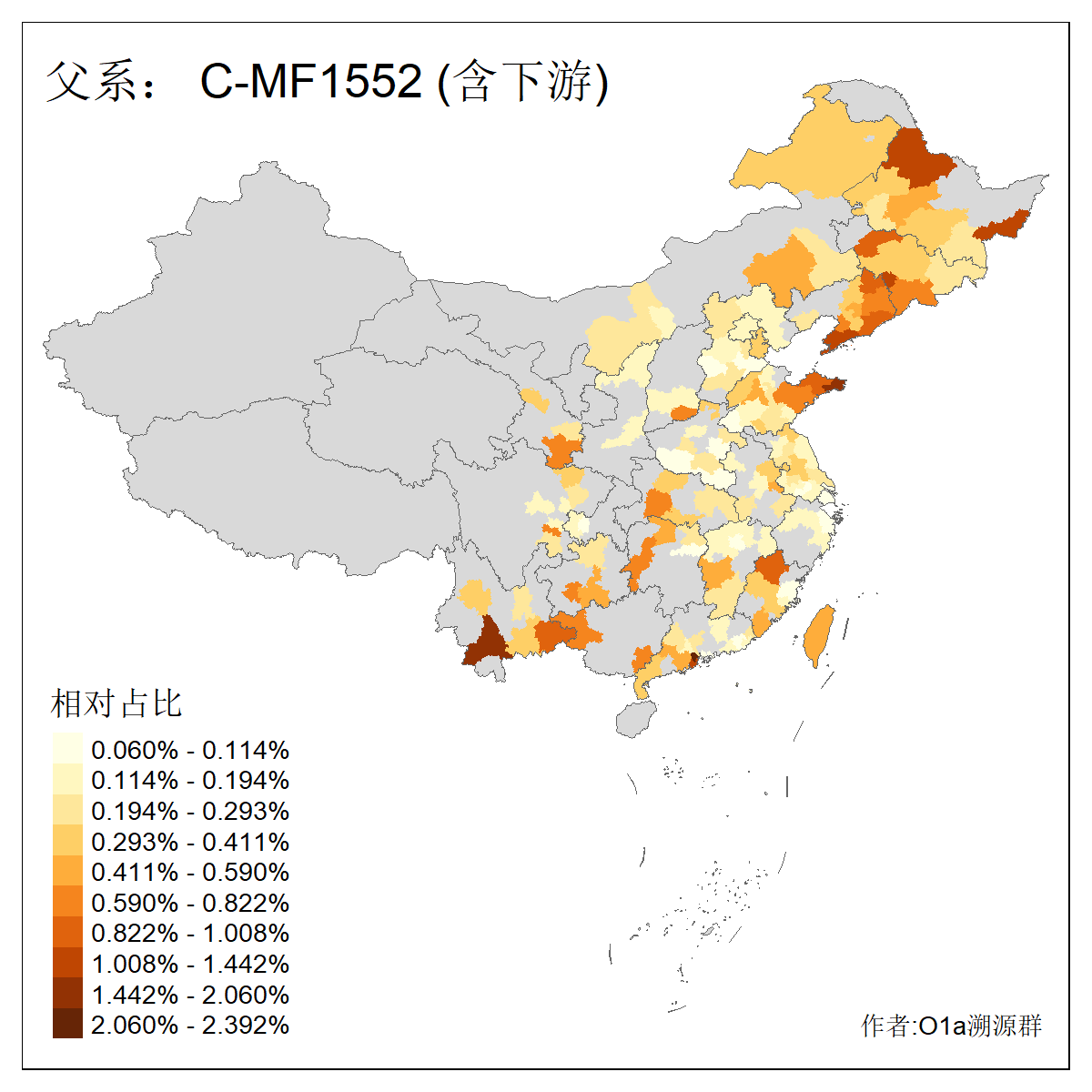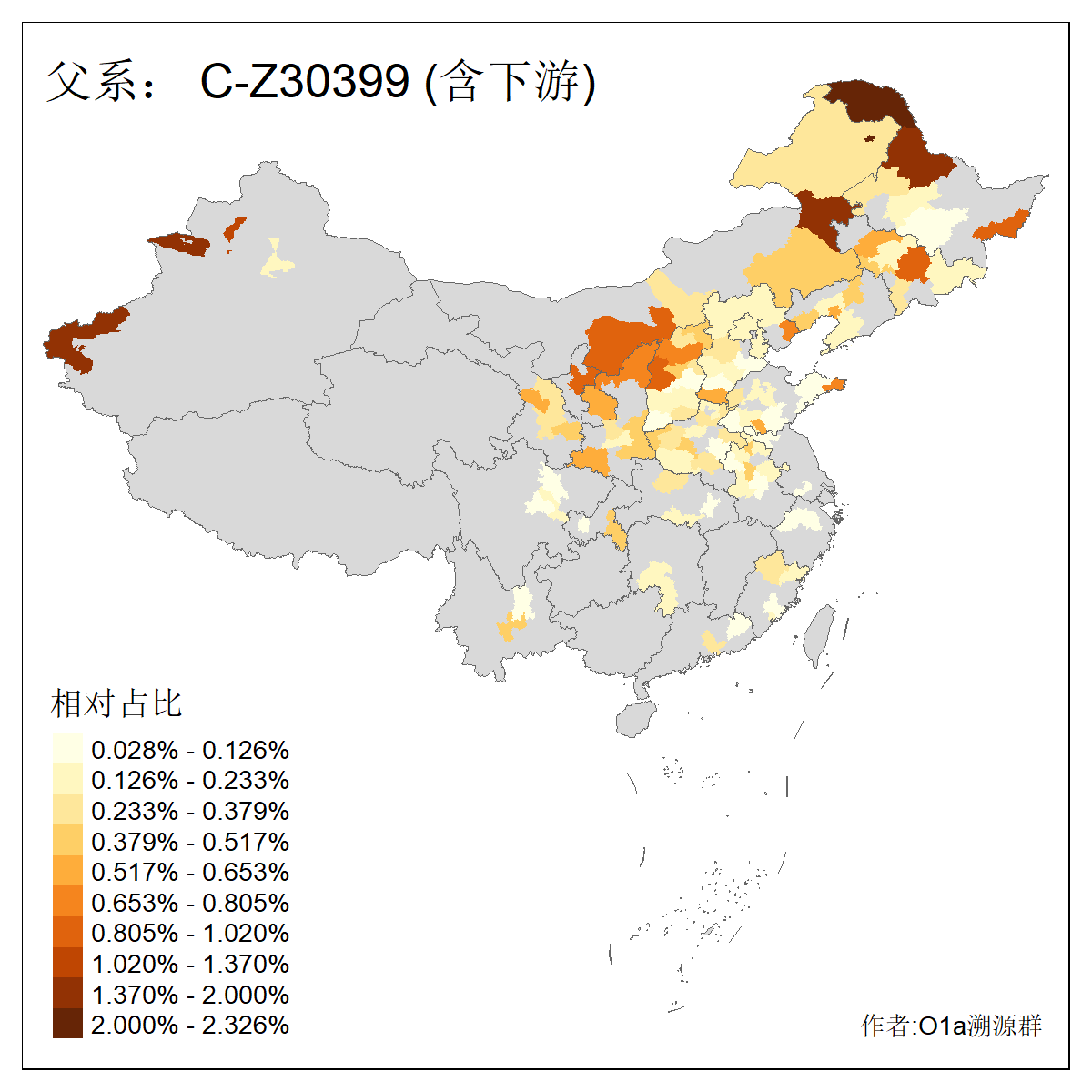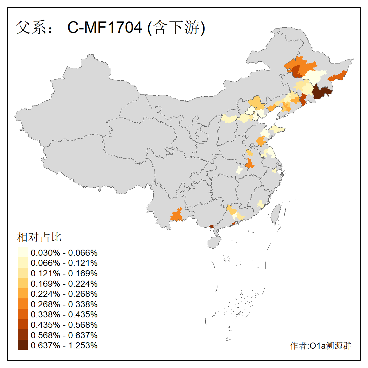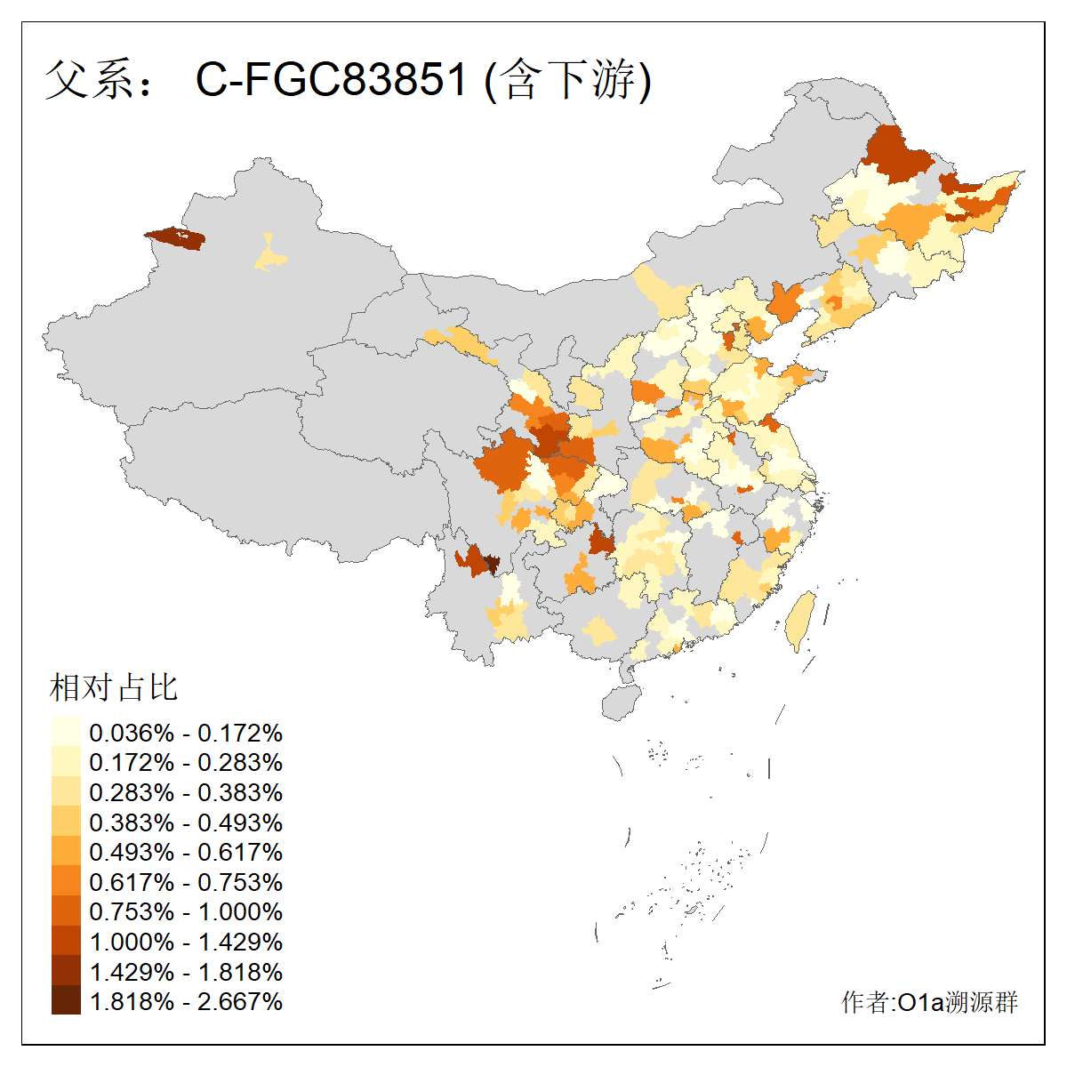 | C-M130_C-M217_C-F1067_C-CTS2_C-F978_C-F3895_C-CTS2657_C-A14901_C-A14909_C-A14908 | 7120 | 0.173% | 443人(含下游) 李:38 王:32 陈:28 张:25 刘:21 周:16 郑:16 杨:13 徐:12 吴:10 董:9 胡:8 袁:8 黄:8 ![]() | 21人(不含下游) 刘:4 周:2 高:2 严:1 凌:1 商:1 张:1 徐:1 李:1 梅:1 田:1 薛:1 贾:1 郭:1 ![]() |