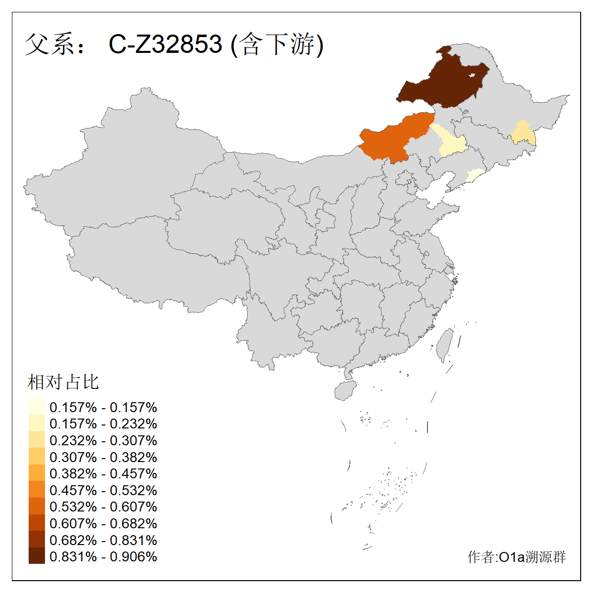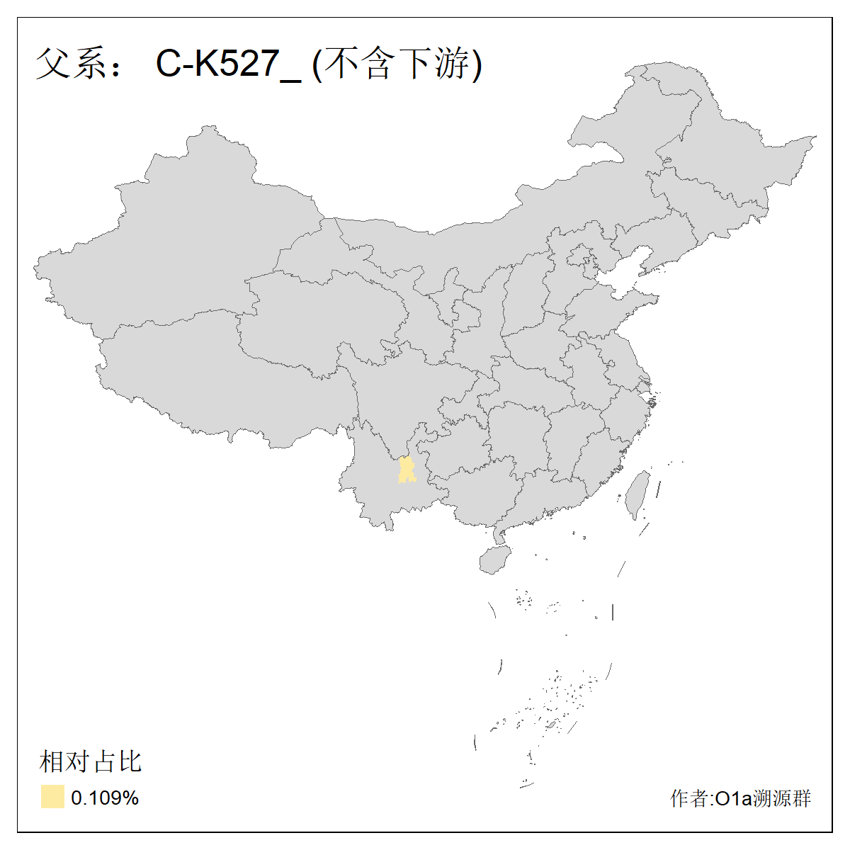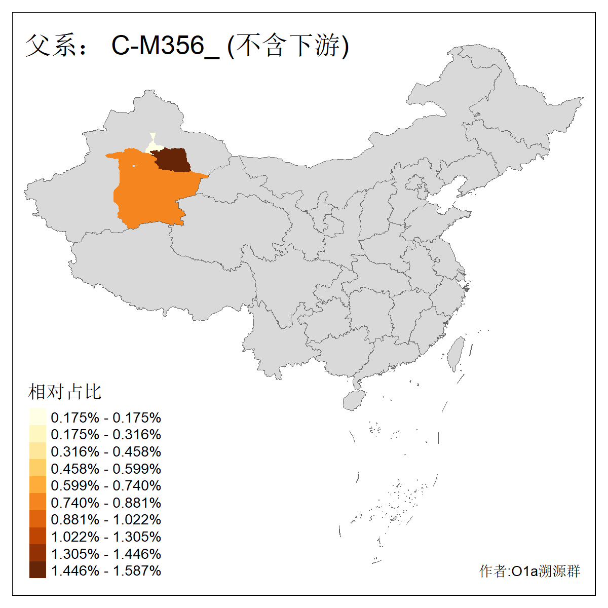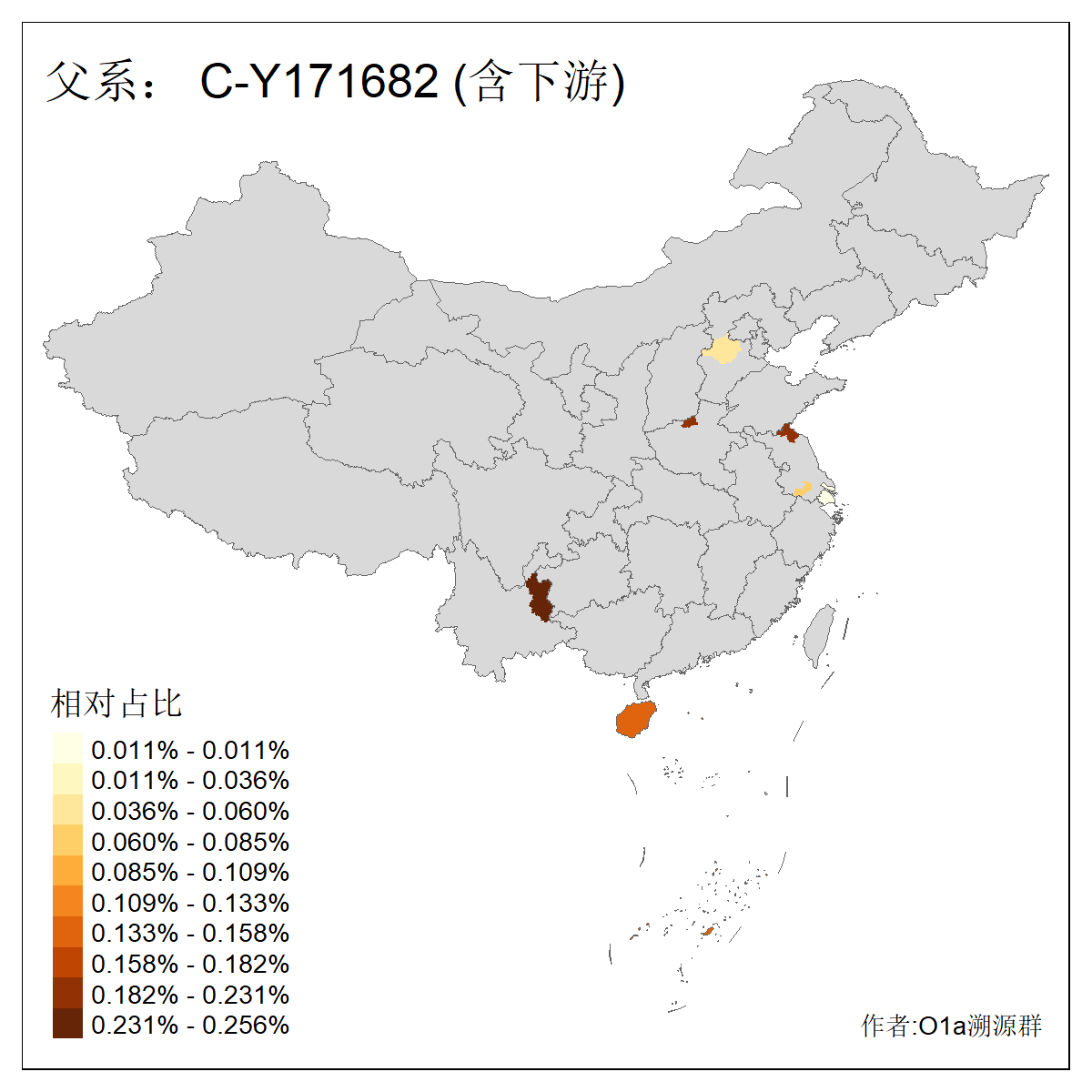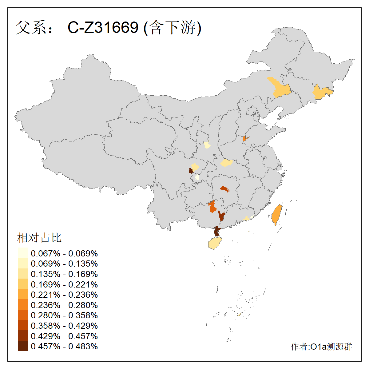 | C-M130_C-M217_C-L1373_C-F3447_C-F1699_C-Y6715_C-M504 | 8600 | 0.337% | 730人(含下游) 赵:47 李:36 张:34 关:29 王:26 吴:20 马:17 阿:16 刘:14 白:14 艾:14 何:13 巴:12 哈:11 ![]() | 10人(不含下游) 赵:3 张:1 洪:1 祖:1 肖:1 鄂:1 马:1 ![]() |