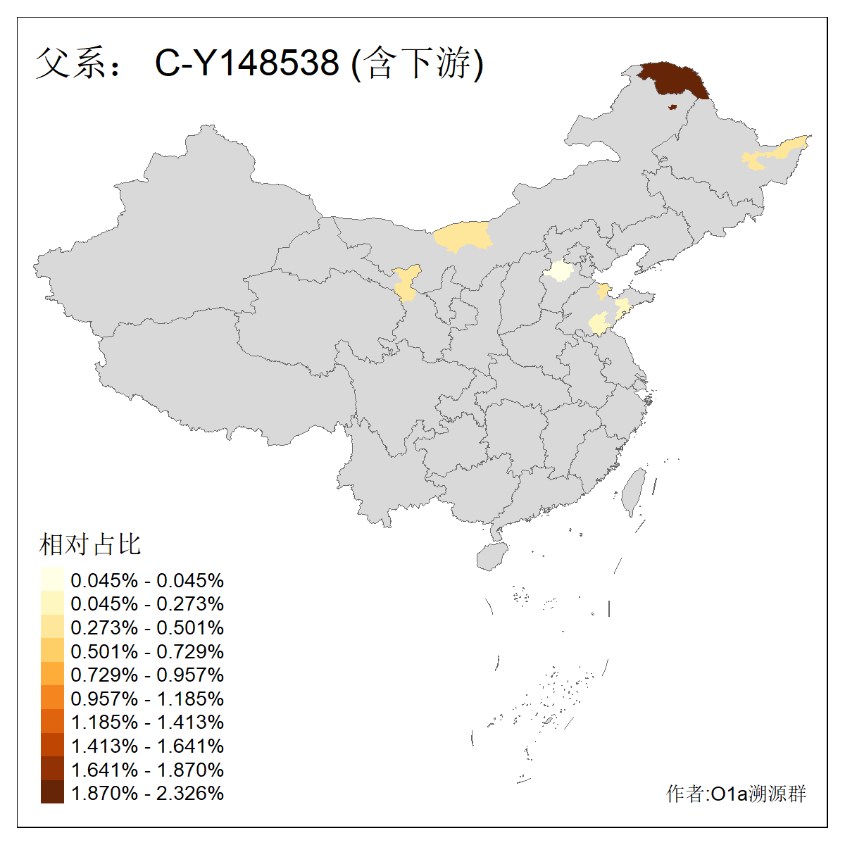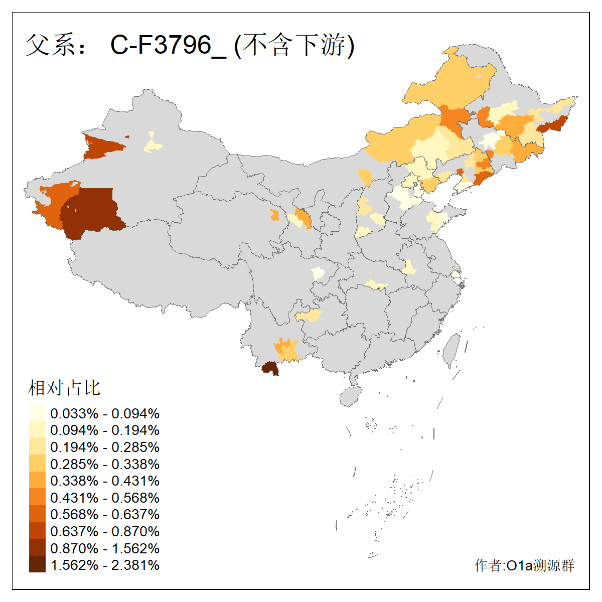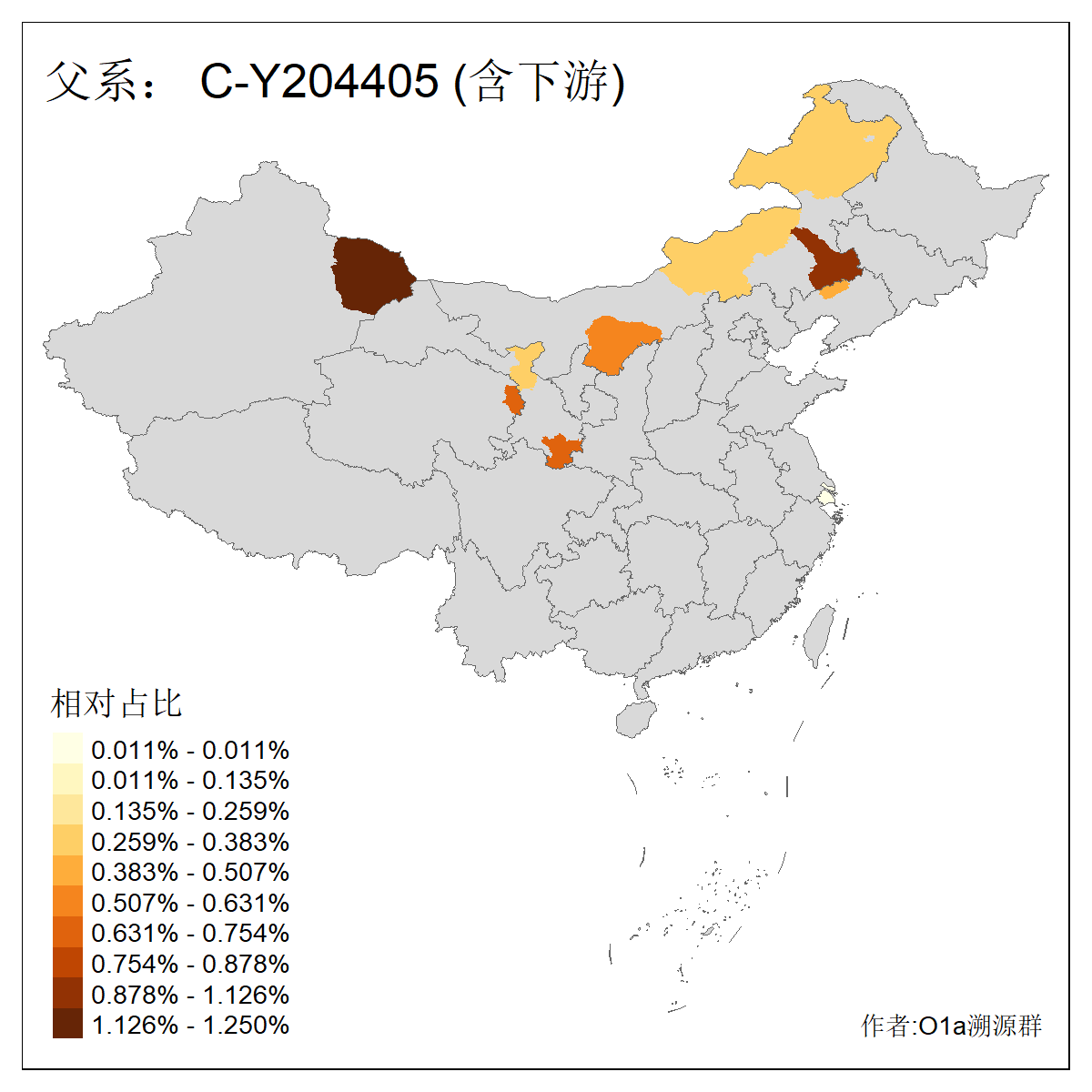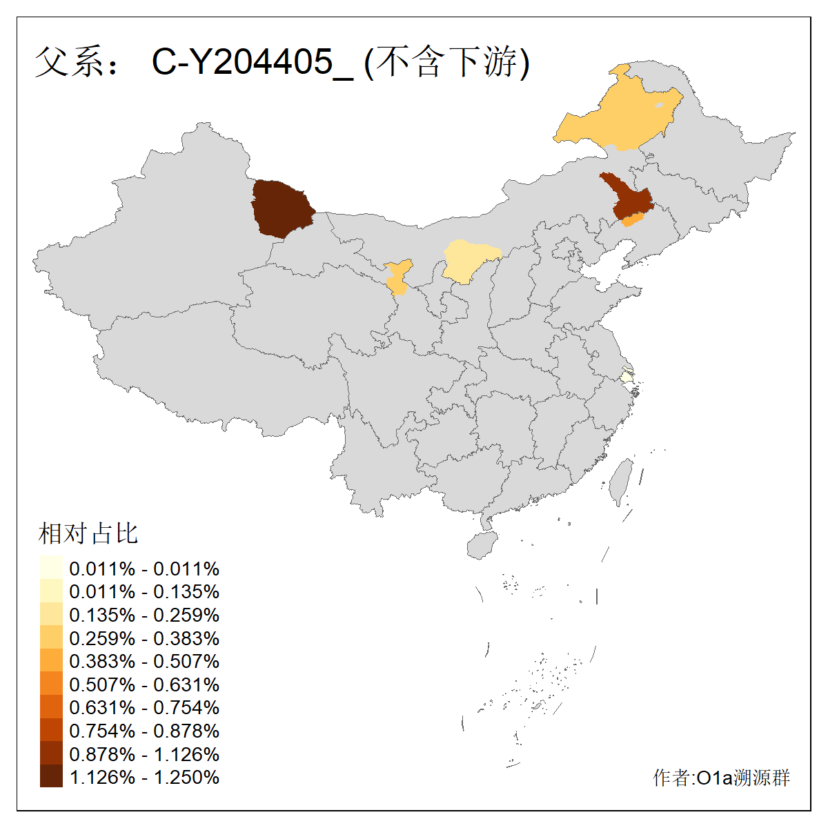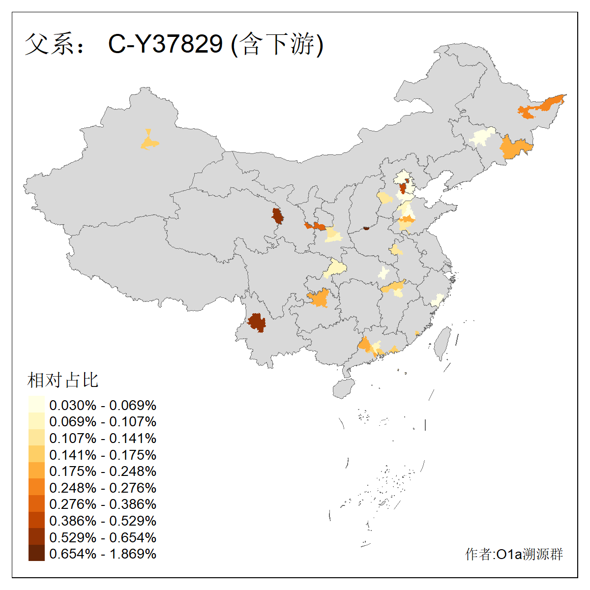 | C-M130_C-M217_C-L1373_C-F3447_C-F1699_C-Y6715_C-M504 | 8600 | 0.337% | 730人(含下游) 赵:47 李:36 张:34 关:29 王:26 吴:20 马:17 阿:16 刘:14 白:14 艾:14 何:13 巴:12 哈:11 ![]() | 10人(不含下游) 赵:3 张:1 洪:1 祖:1 肖:1 鄂:1 马:1 ![]() |