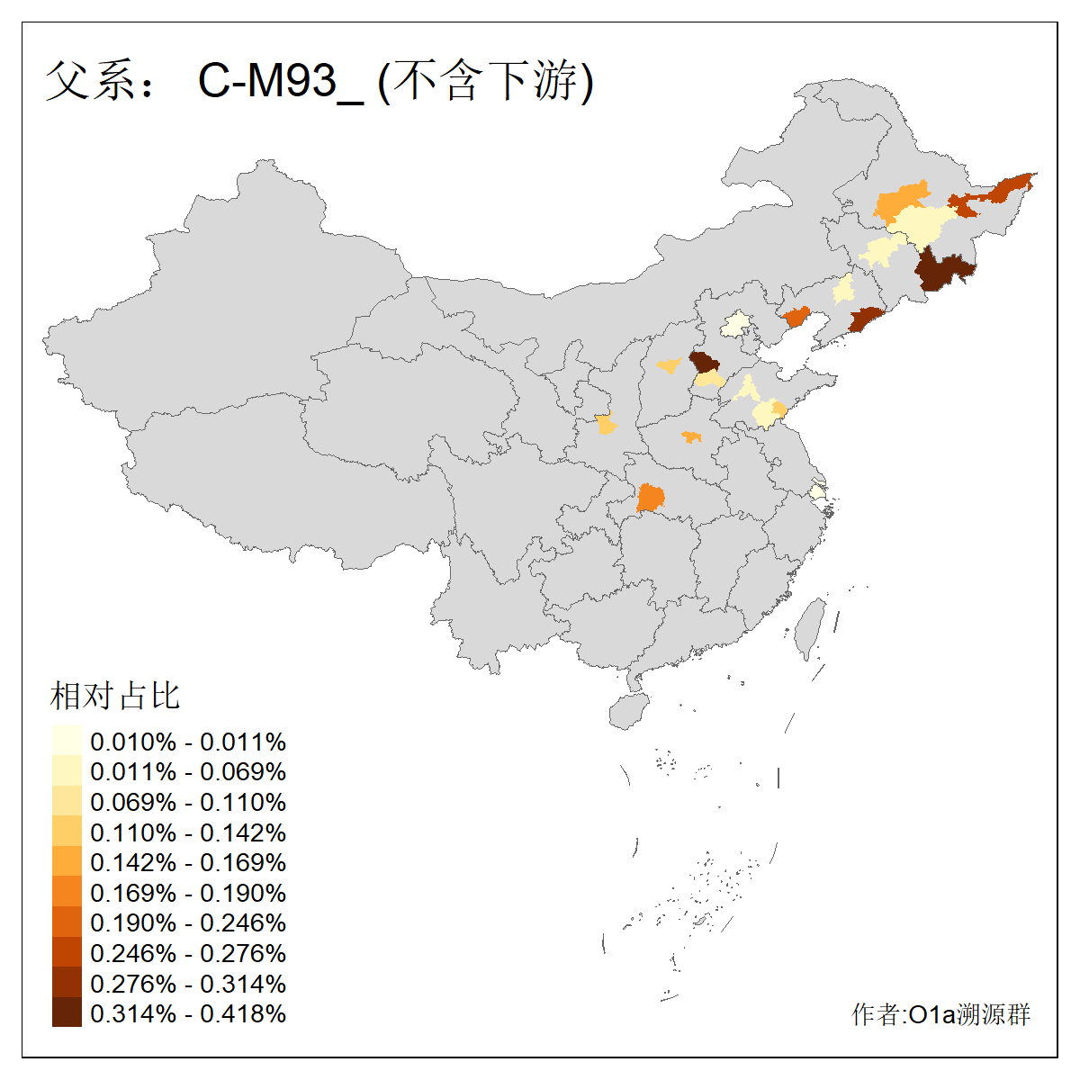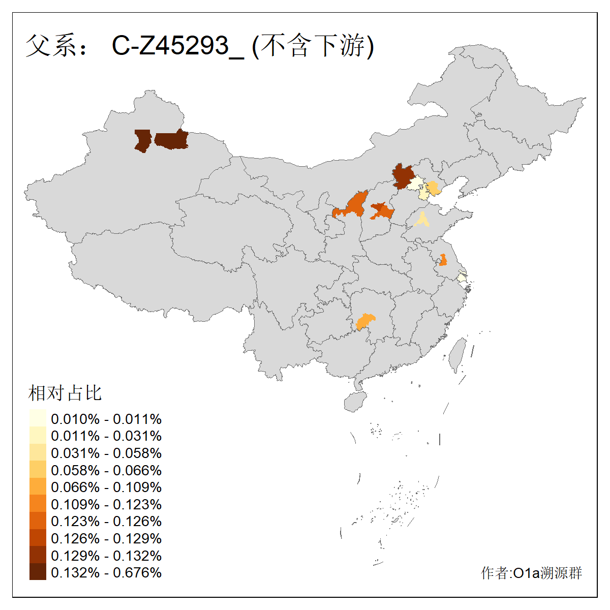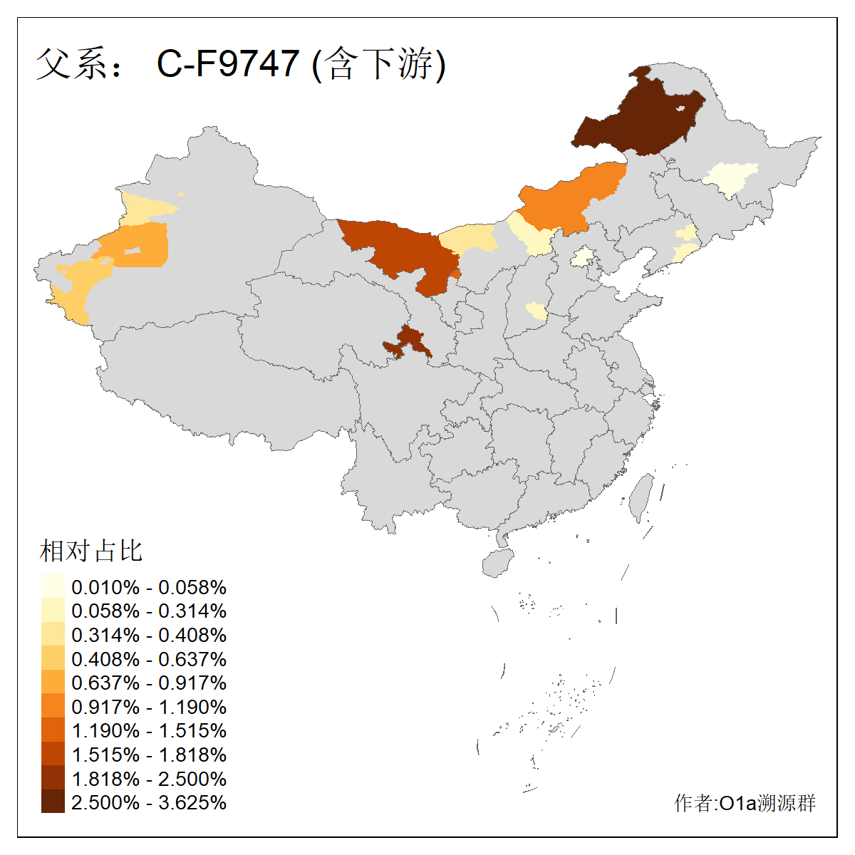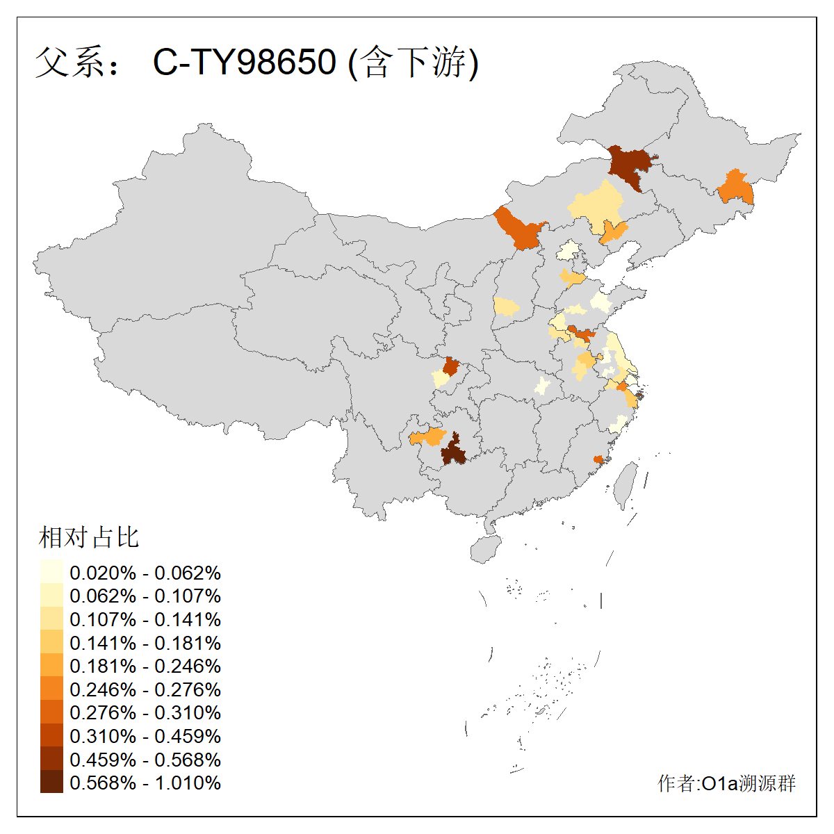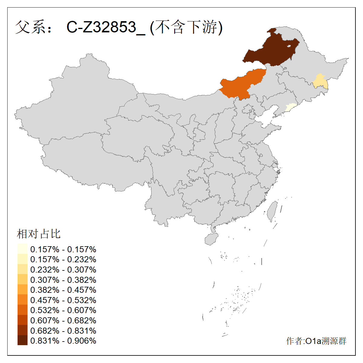 | C-M130_C-M217_C-L1373_C-F3447_C-F1699_C-Y6715_C-M504 | 8600 | 0.337% | 730人(含下游) 赵:47 李:36 张:34 关:29 王:26 吴:20 马:17 阿:16 刘:14 白:14 艾:14 何:13 巴:12 哈:11 ![]() | 10人(不含下游) 赵:3 张:1 洪:1 祖:1 肖:1 鄂:1 马:1 ![]() |