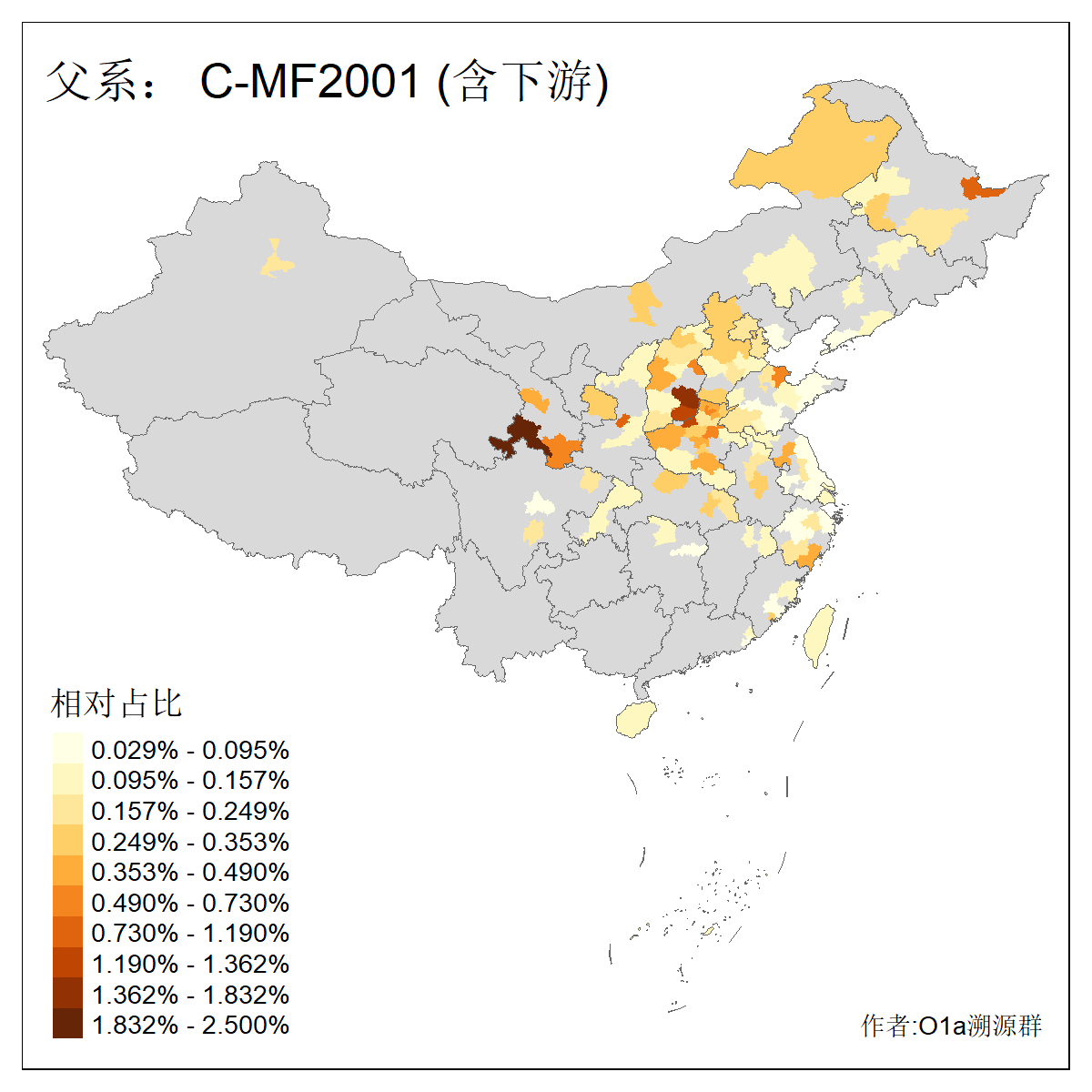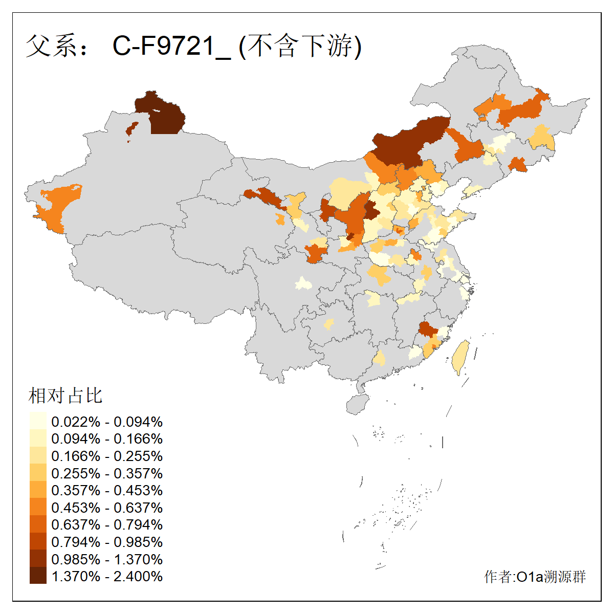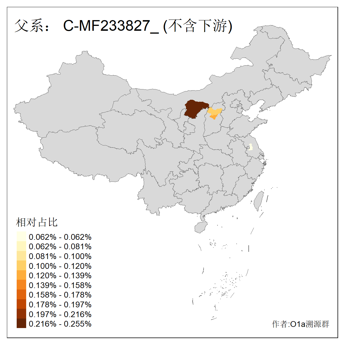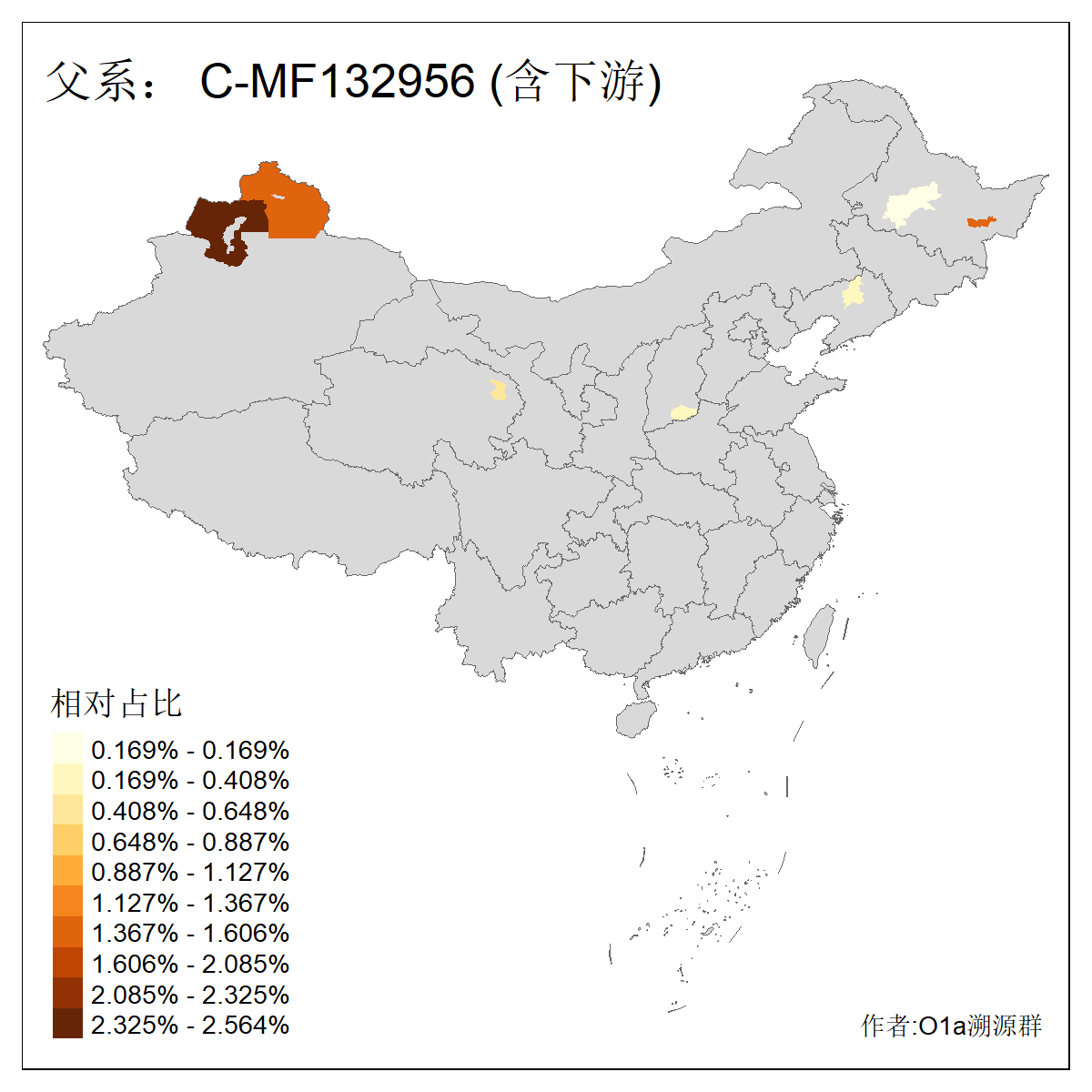 | C-M130_C-M217_C-L1373_C-F3447_C-F1699_C-Y6715_C-M504 | 8600 | 0.337% | 730人(含下游) 赵:47 李:36 张:34 关:29 王:26 吴:20 马:17 阿:16 刘:14 白:14 艾:14 何:13 巴:12 哈:11 ![]() | 10人(不含下游) 赵:3 张:1 洪:1 祖:1 肖:1 鄂:1 马:1 ![]() |