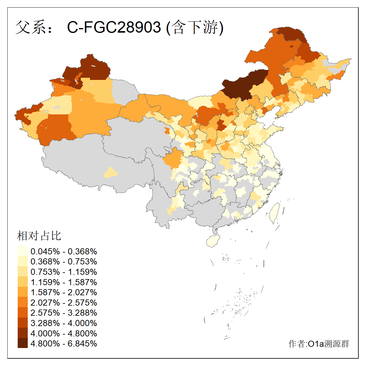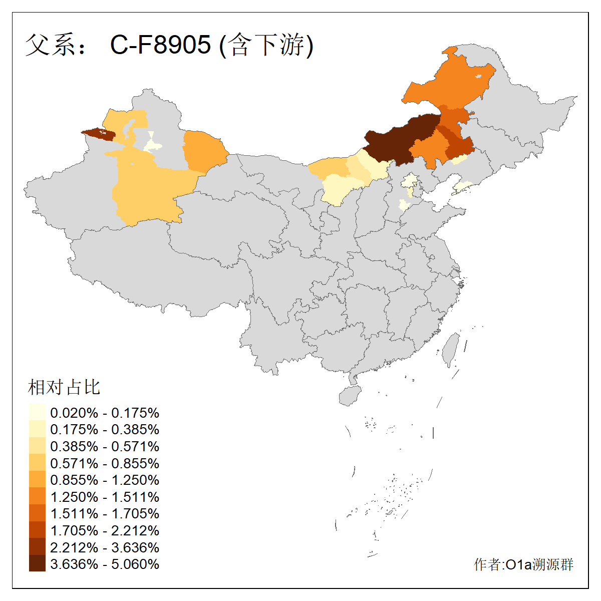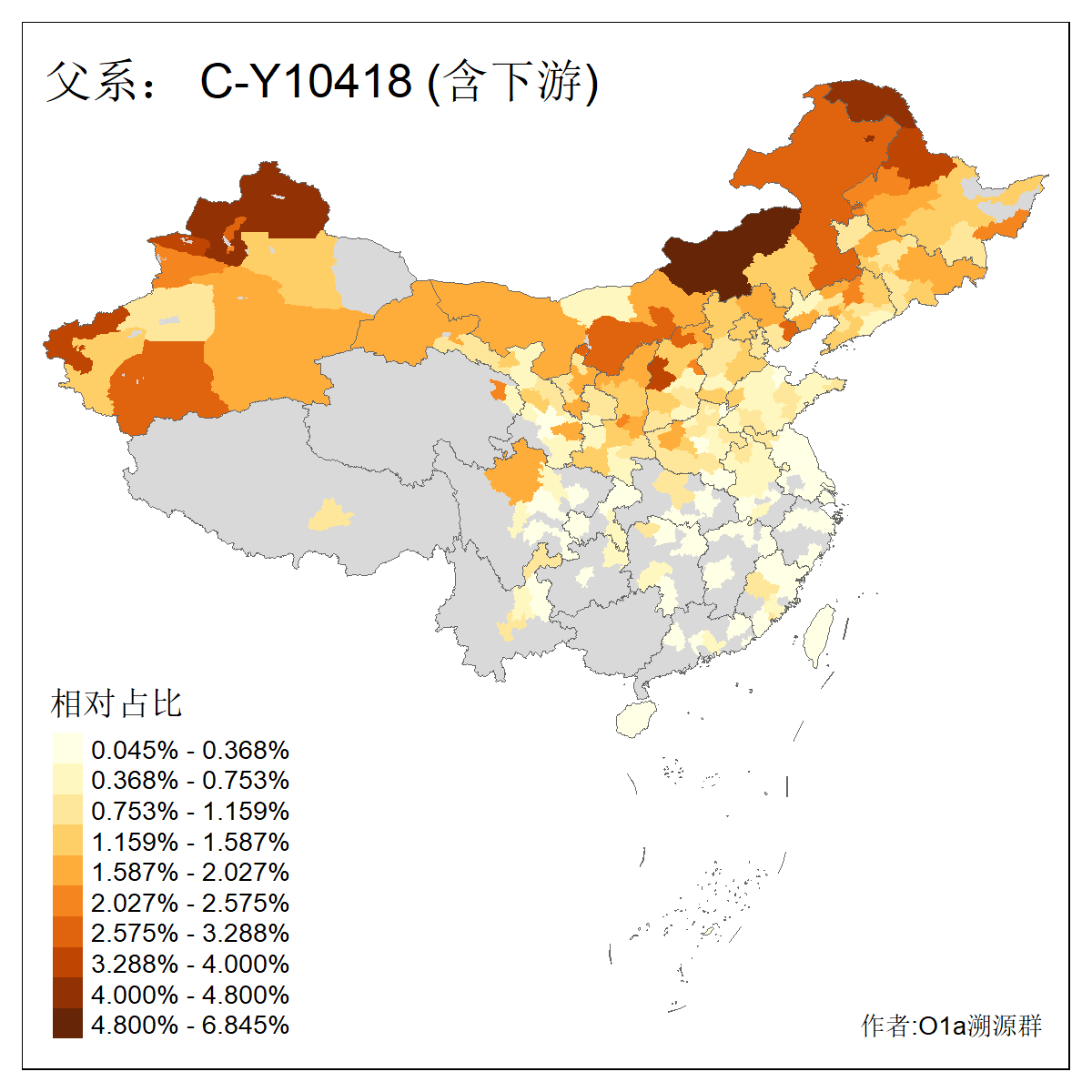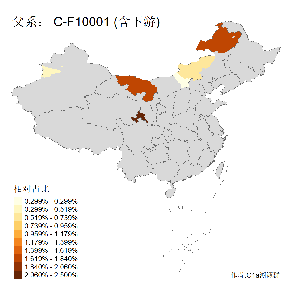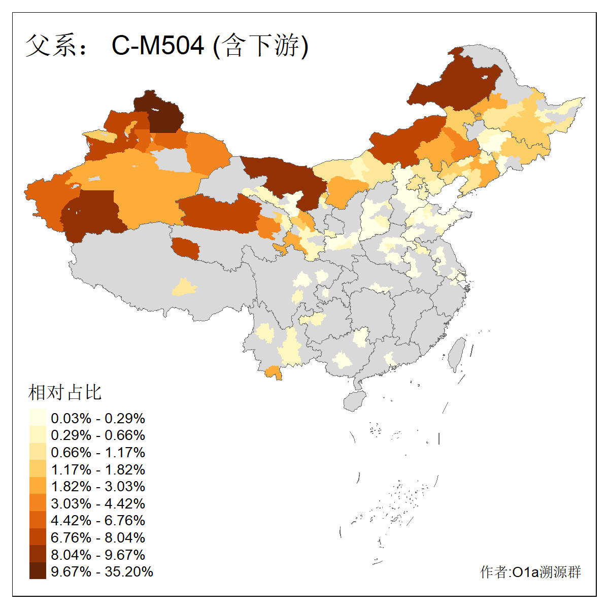 | C-M130_C-M217_C-L1373_C-F3447_C-F1699_C-Y6715_C-M504 | 8600 | 0.337% | 730人(含下游) 赵:47 李:36 张:34 关:29 王:26 吴:20 马:17 阿:16 刘:14 白:14 艾:14 何:13 巴:12 哈:11 ![]() | 10人(不含下游) 赵:3 张:1 洪:1 祖:1 肖:1 鄂:1 马:1 ![]() |