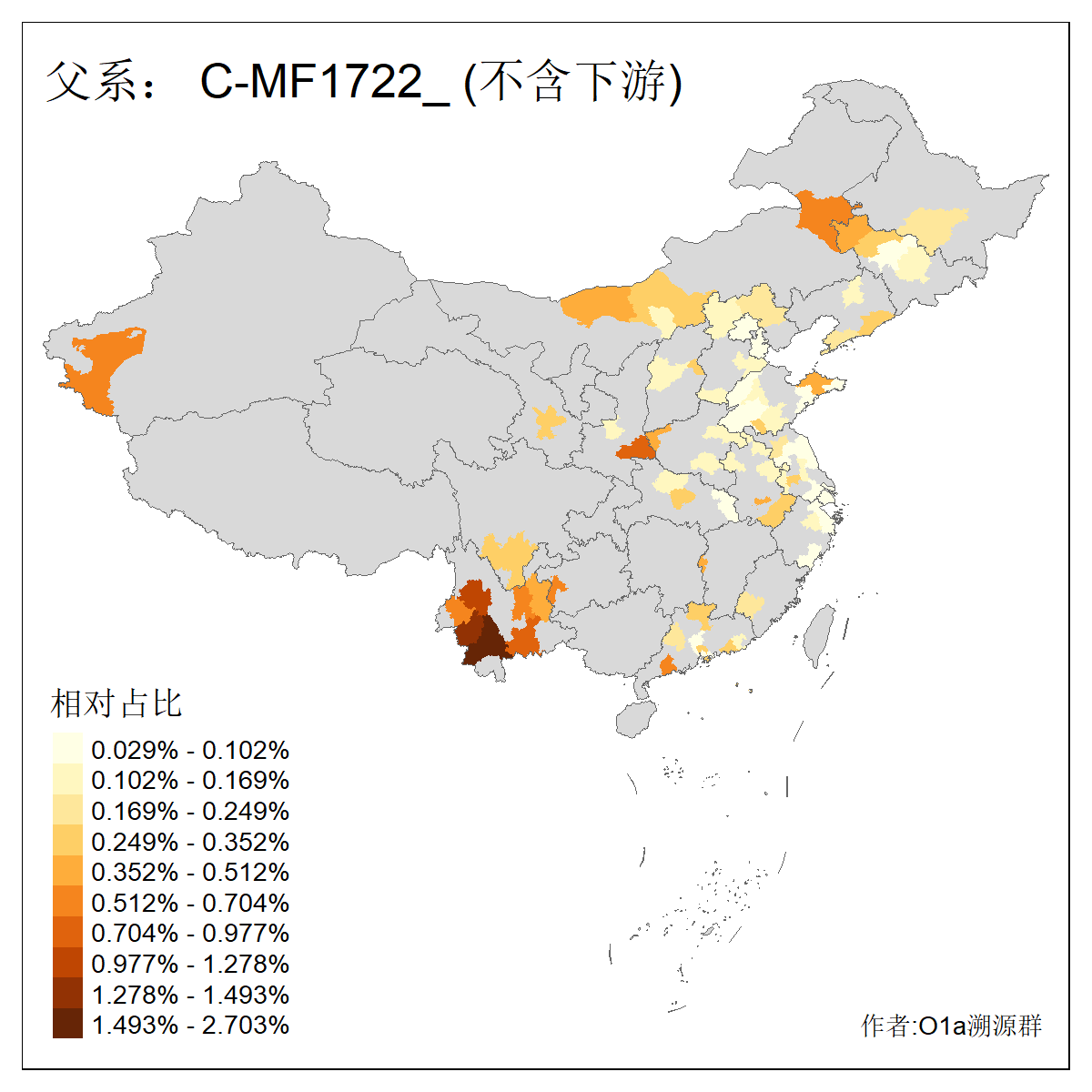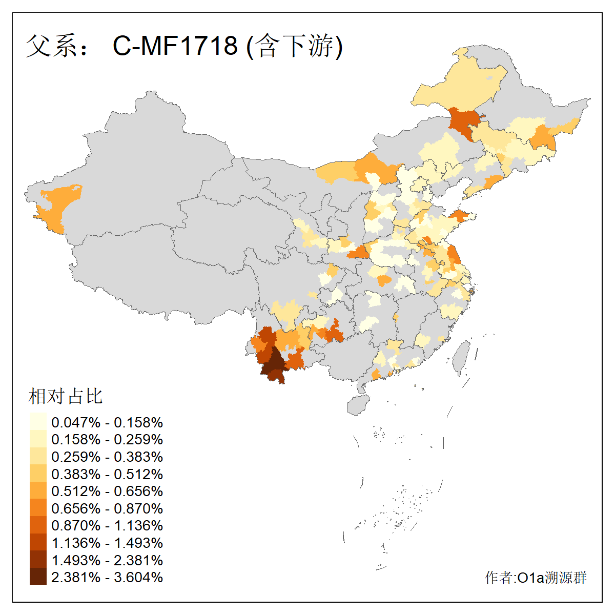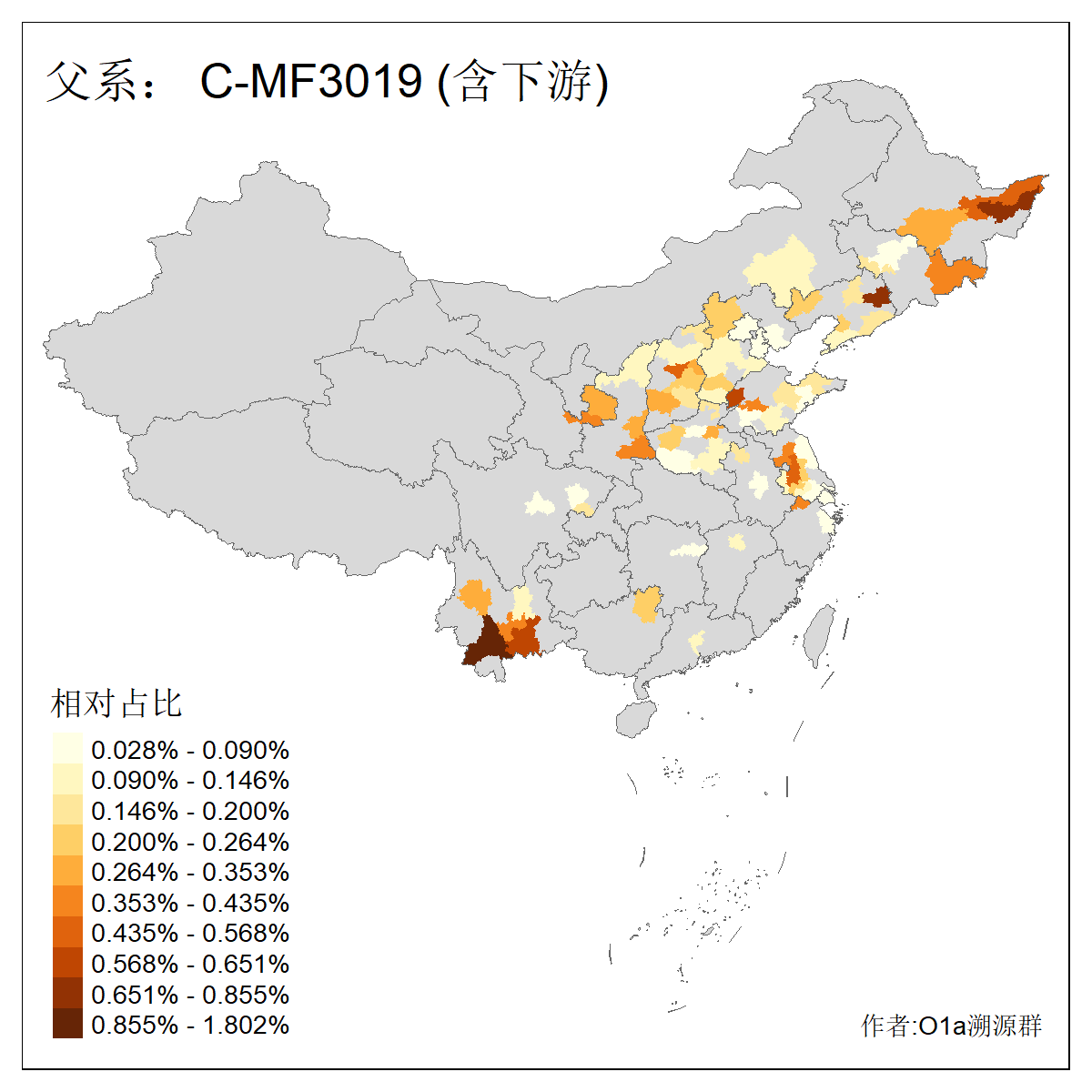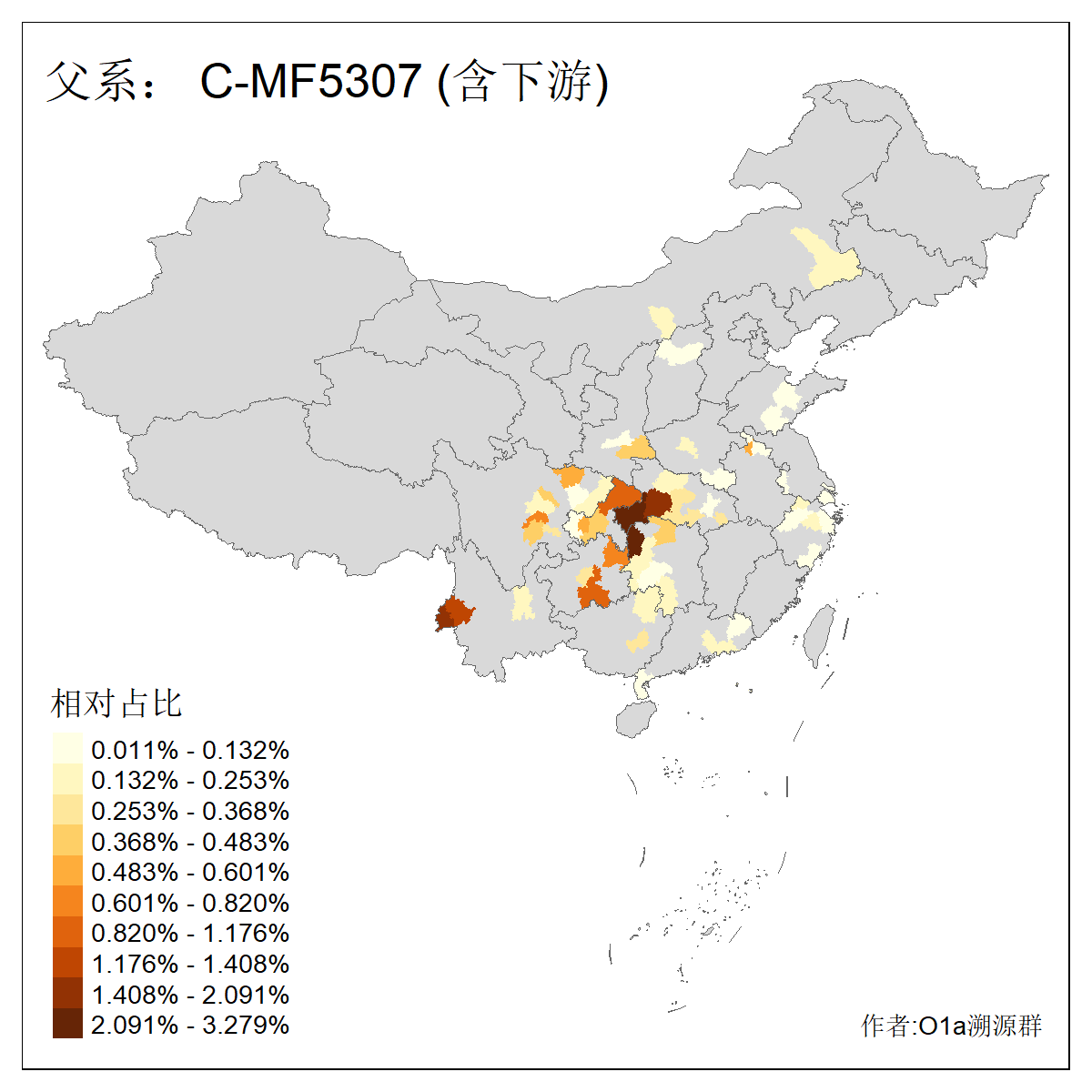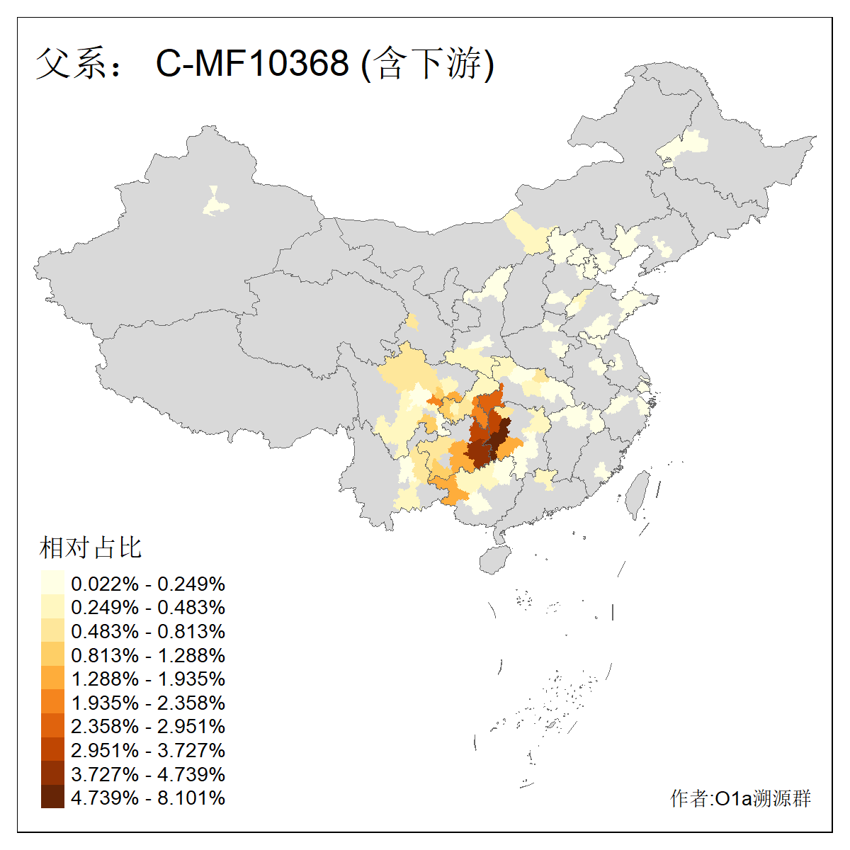 | C-M130_C-F3393_C-F1370_C-AM00694_C-AM00848 | 4310 | 0.198% | 293人(含下游) 李:26 张:17 陈:16 杨:13 梁:13 黄:13 刘:12 罗:12 王:11 赵:11 向:5 吴:5 邱:5 马:5 ![]() | 72人(不含下游) 李:10 梁:5 刘:4 陈:4 罗:3 蒙:3 马:3 高:3 张:2 潘:2 牟:2 陆:2 韦:2 余:1 ![]() |