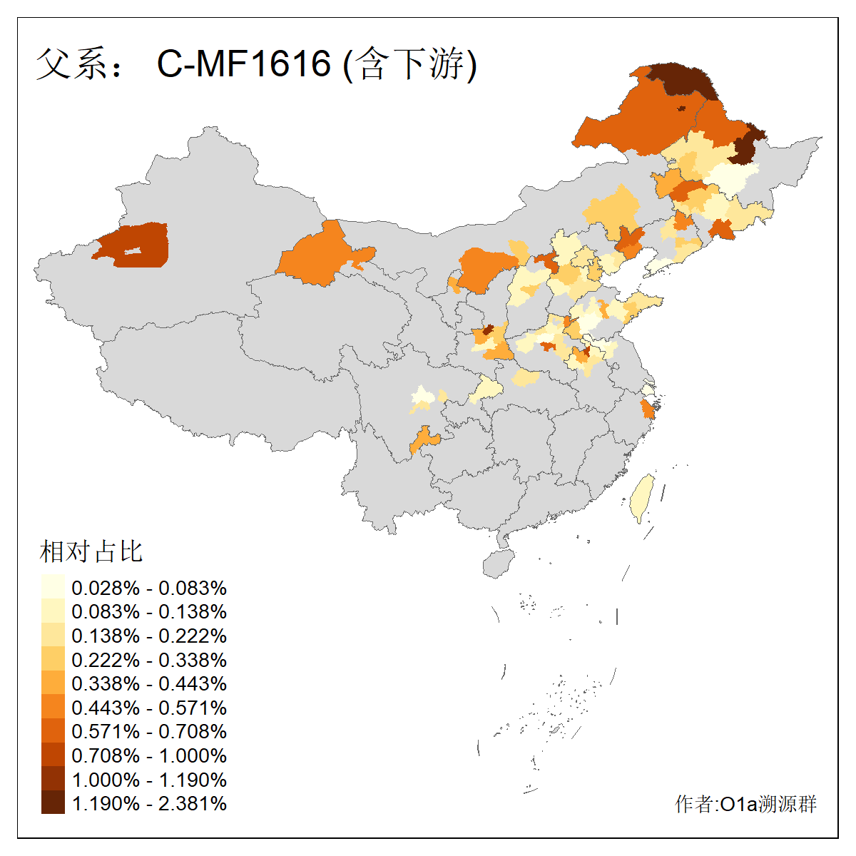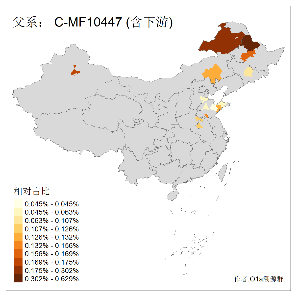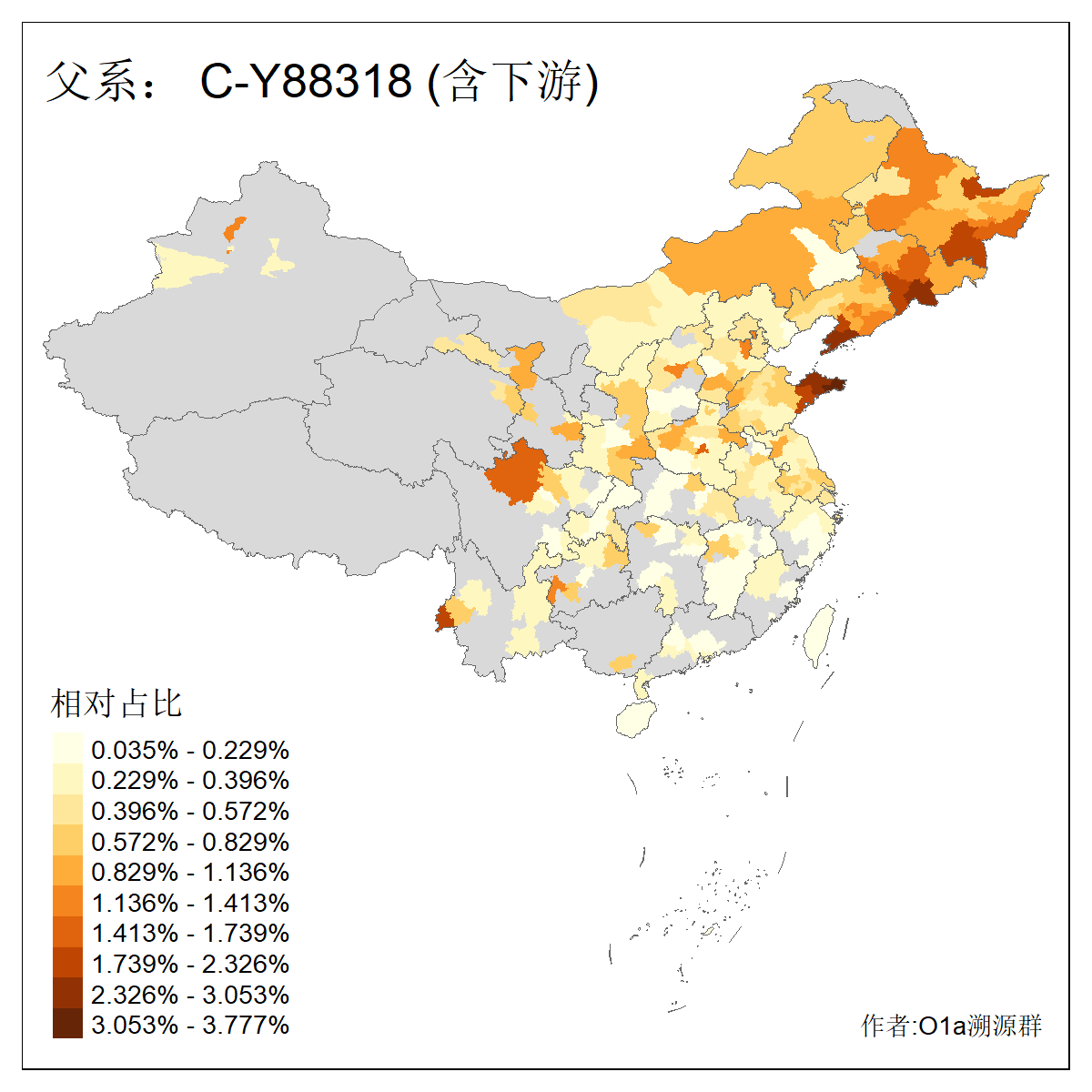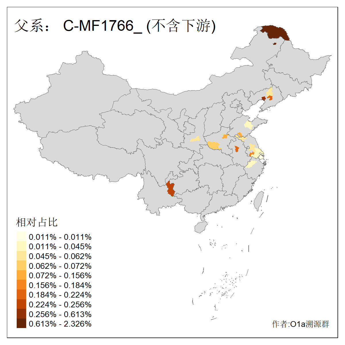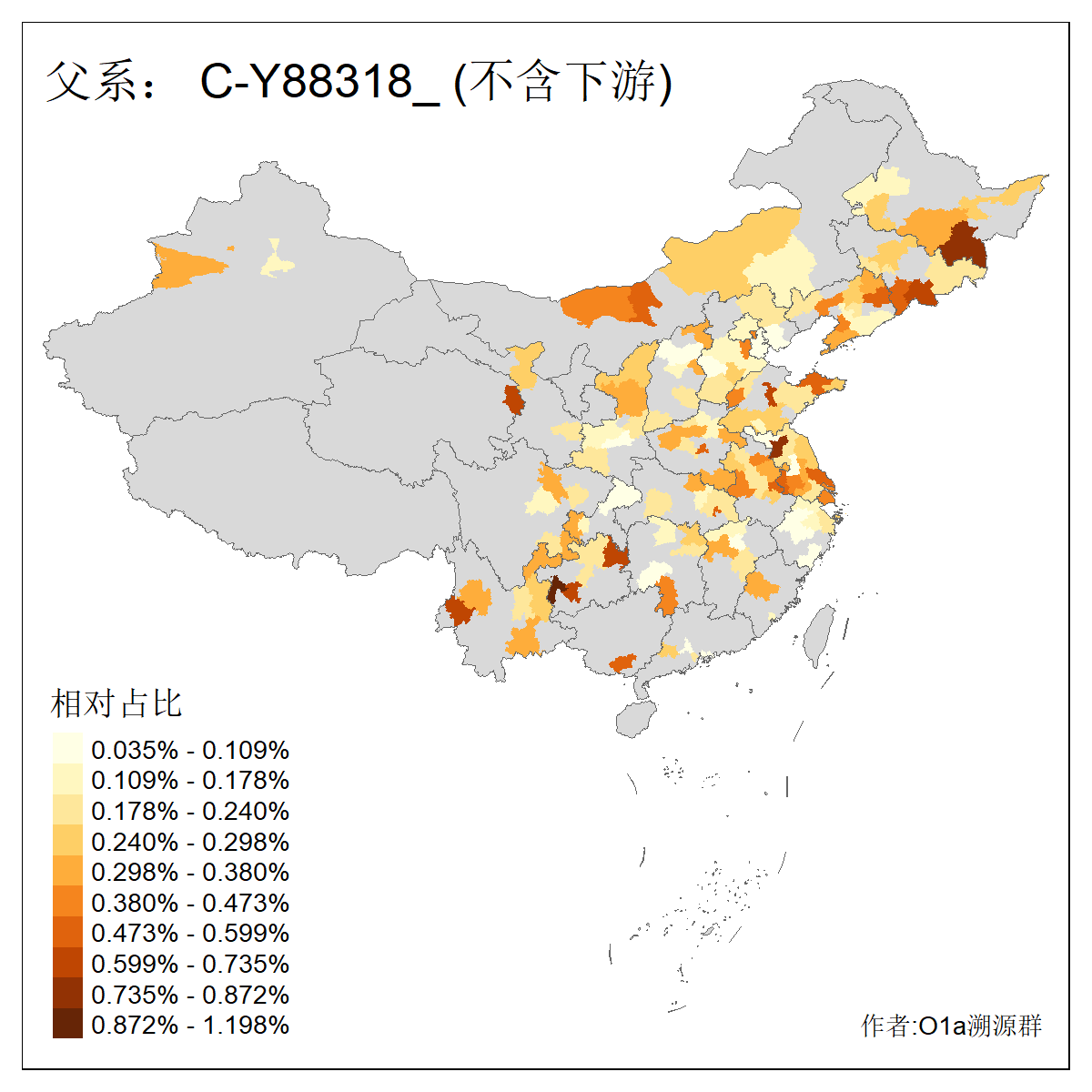 | C-M130_C-M217_C-L1373_C-F3447_C-F1699_C-Y6715_C-M504_C-Y4519 | 4040 | 0.332% | 711人(含下游) 赵:44 李:36 关:29 王:26 张:24 吴:20 阿:16 马:16 刘:14 白:14 艾:14 何:13 巴:12 哈:11 ![]() | 40人(不含下游) 赵:6 董:5 王:4 童:3 恒:2 白:2 佟:1 傅:1 呼:1 奥:1 崔:1 张:1 李:1 焦:1 ![]() |