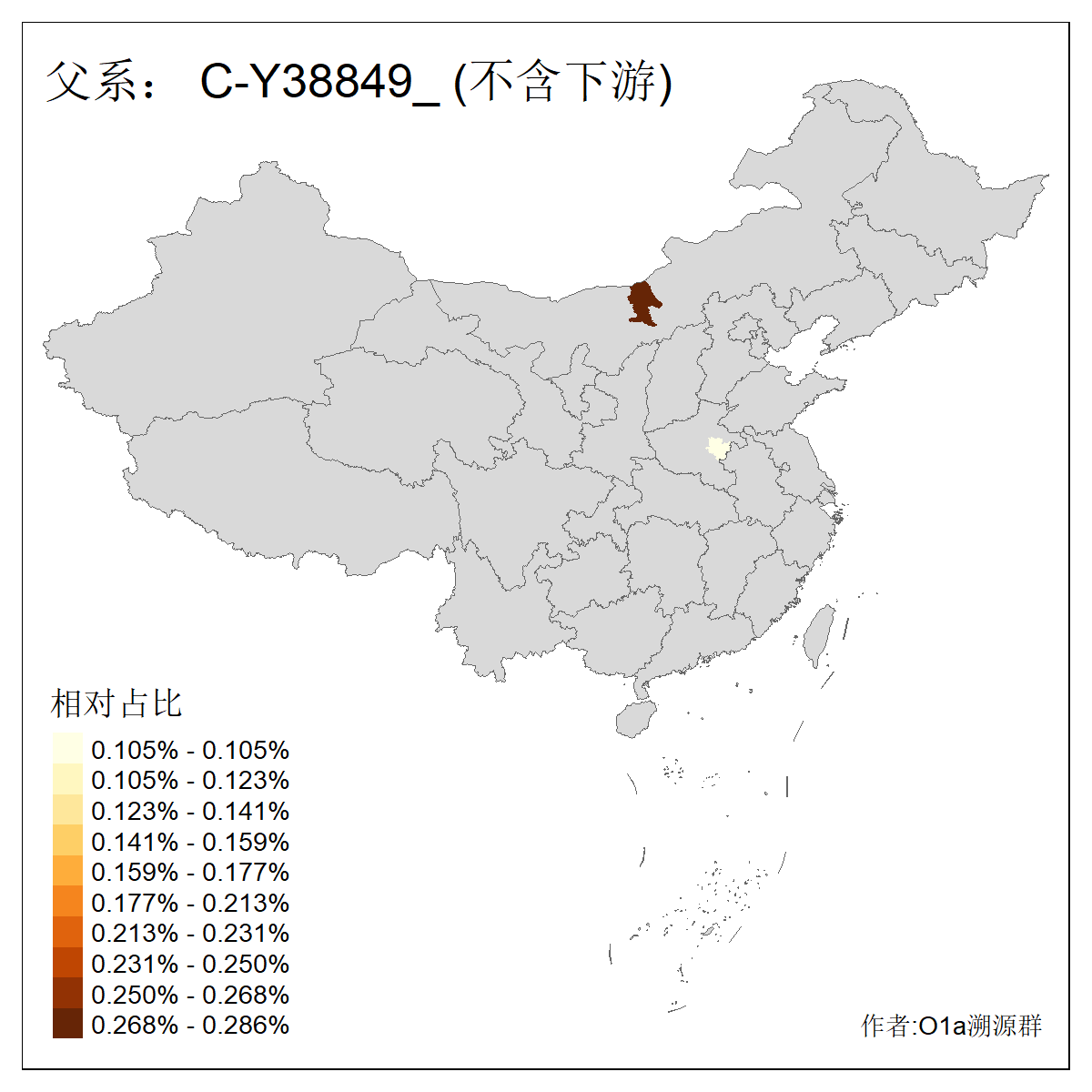 | C-M130_C-M217_C-F1067_C-CTS2 | 15180 | 7.636% | 18730人(含下游) 王:1613 张:1349 李:1324 刘:956 陈:692 杨:654 赵:343 周:340 孙:302 马:295 徐:292 吴:283 黄:270 朱:228 ![]() | 2人(不含下游) 王:1 齐:1 ![]() |