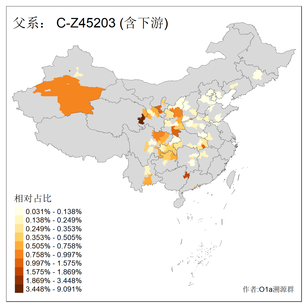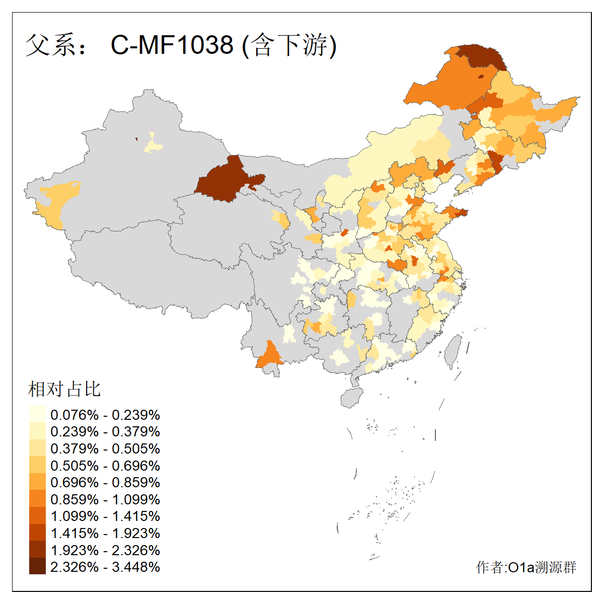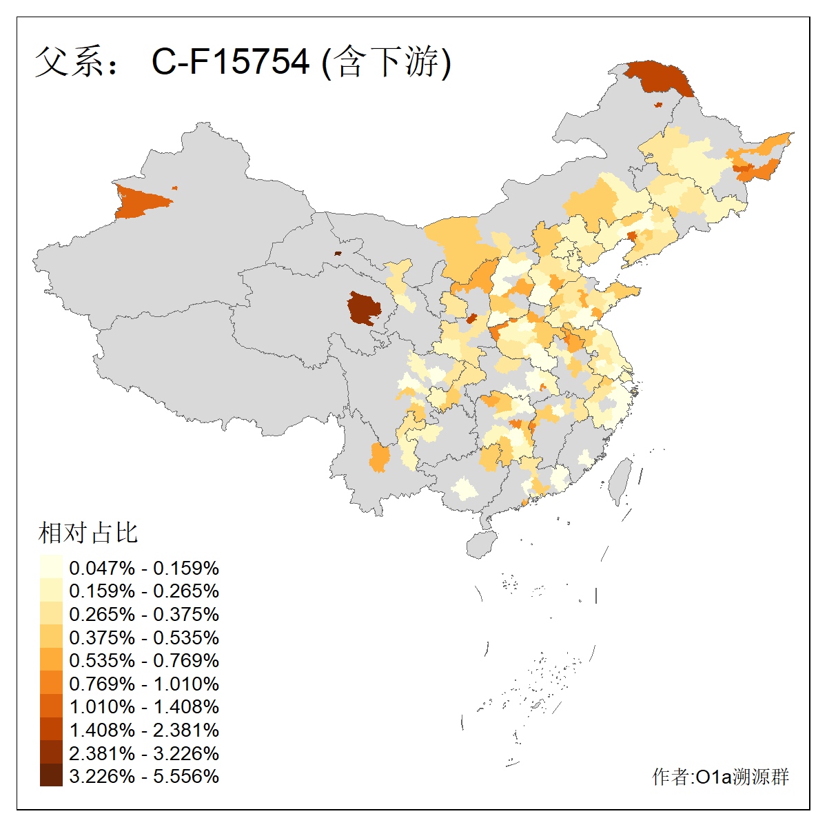 | C-M130_C-M217_C-F1067_C-CTS2_C-F978_C-F3895_C-CTS2657_C-CTS11990_C-CTS8579 | 7210 | 1.525% | 3770人(含下游) 王:355 李:279 张:269 刘:205 杨:132 陈:122 孙:82 赵:70 宋:62 周:60 吴:59 高:57 郭:51 马:51 ![]() | 108人(不含下游) 王:16 张:8 刘:4 孙:4 徐:4 陈:4 朱:3 李:3 杨:3 马:3 黄:3 周:2 姚:2 林:2 ![]() |