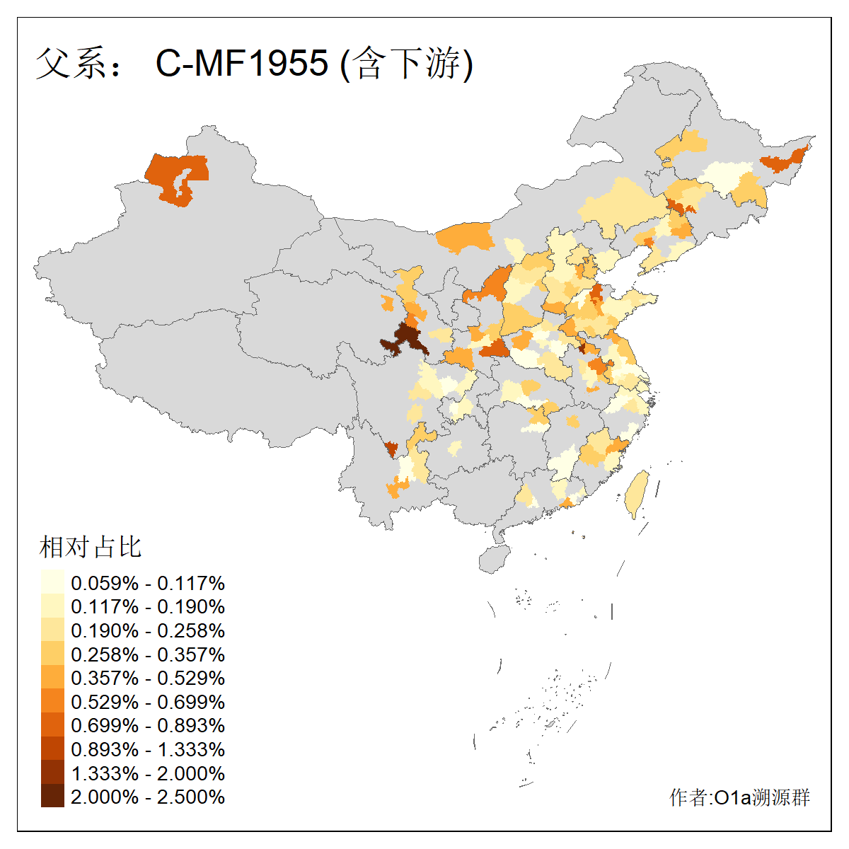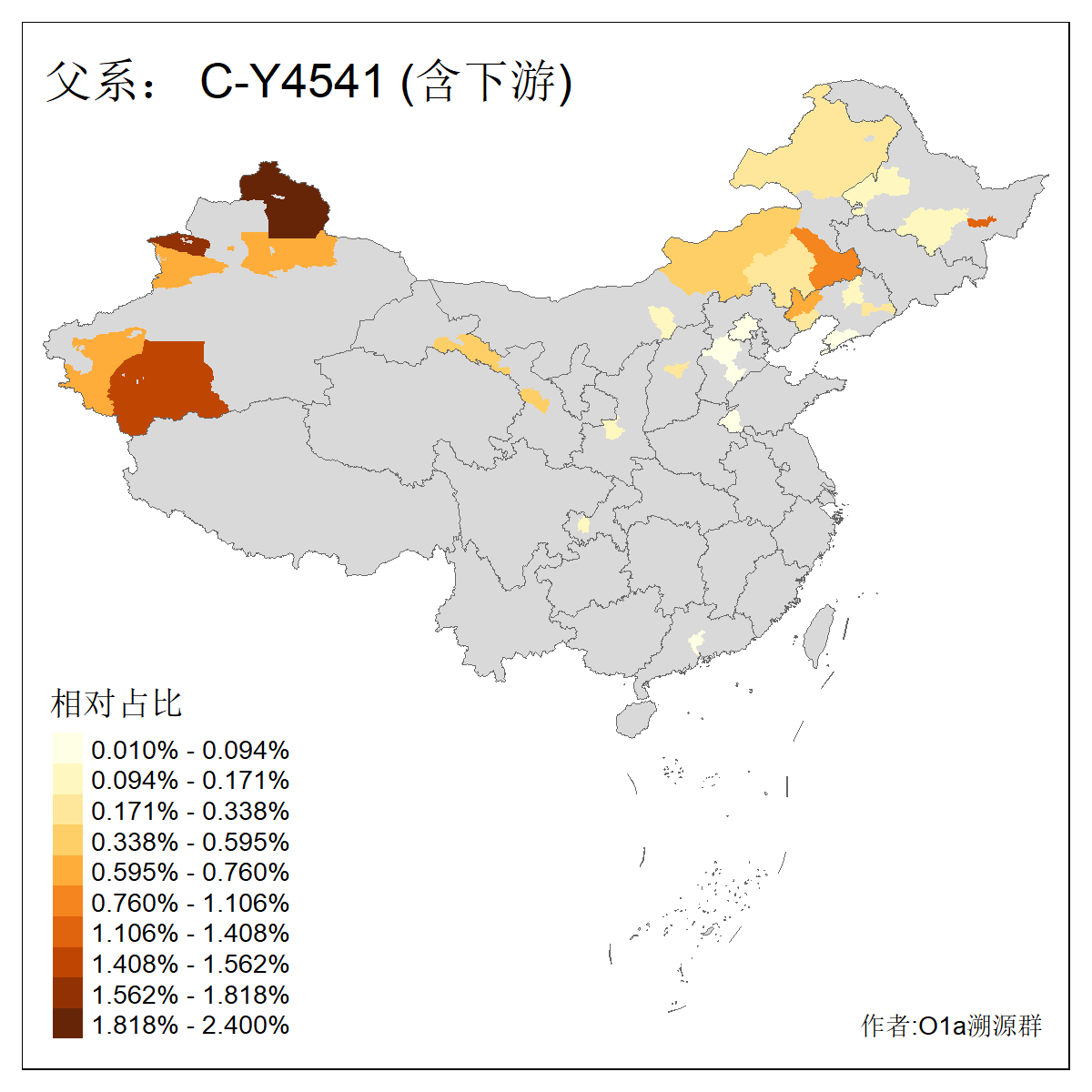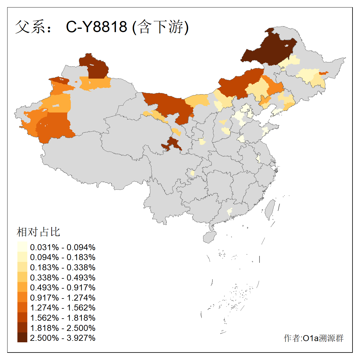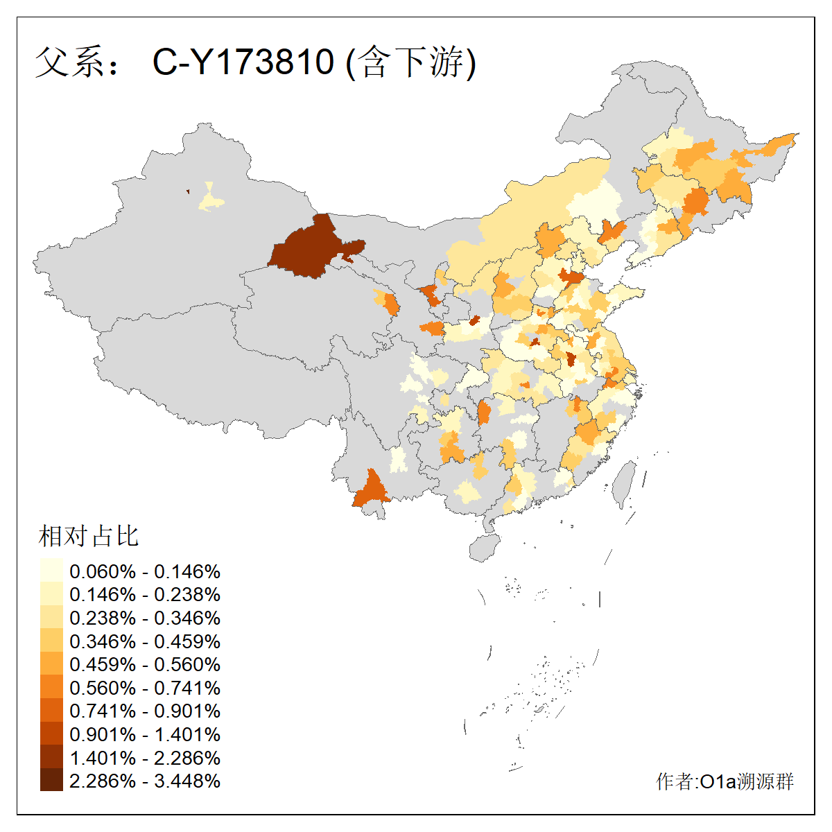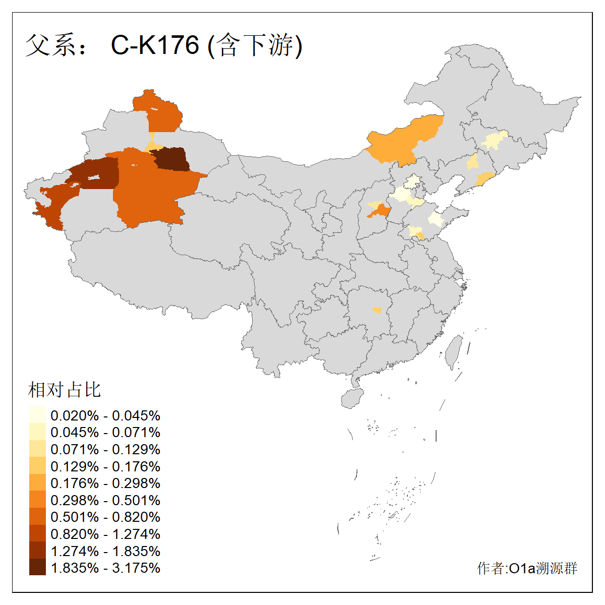 | C-M130_C-M217_C-L1373_C-F3447_C-F1699_C-Y6715_C-M504_C-Y4519_C-Y11121 | 3480 | 0.286% | 582人(含下游) 李:28 关:27 张:23 吴:19 王:19 赵:17 阿:16 艾:14 刘:13 巴:12 白:12 马:12 何:11 哈:11 ![]() | 20人(不含下游) 张:2 白:2 马:2 乌:1 仝:1 周:1 孙:1 封:1 曹:1 杨:1 王:1 罕:1 赫:1 赵:1 ![]() |