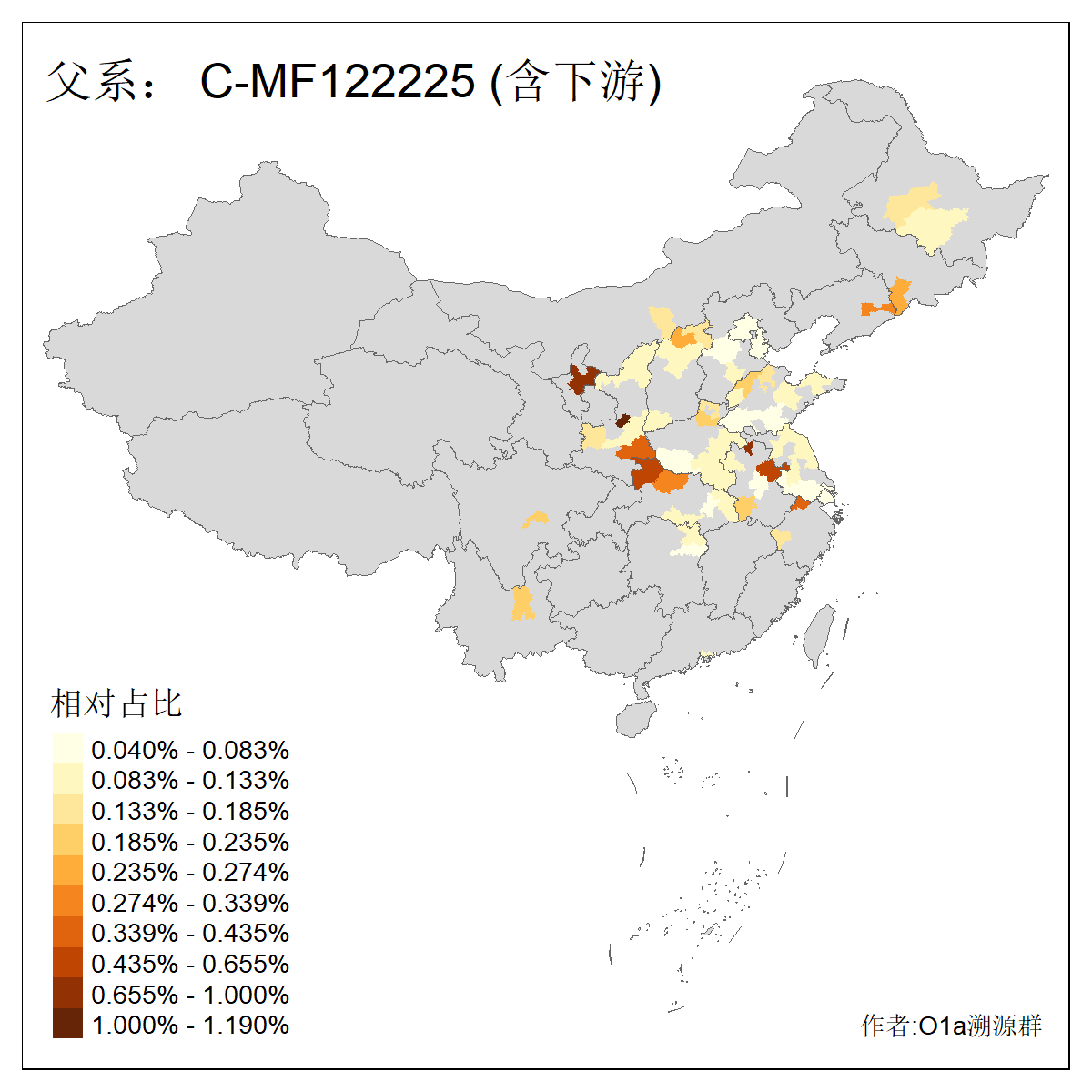 | C-M130_C-M217_C-F1067_C-CTS2_C-F978_C-F3895_C-CTS2657_C-A14901_C-A14909_C-MF1553_C-MF3752 | 3930 | 0.058% | 122人(含下游) 李:12 孙:9 张:8 王:8 刘:7 马:6 袁:5 徐:4 朱:4 郭:4 陆:4 陈:4 牛:3 付:2 ![]() | 70人(不含下游) 李:7 王:7 孙:5 袁:5 张:4 刘:3 徐:3 牛:3 郭:3 朱:2 段:2 陆:2 马:2 万:1 ![]() |