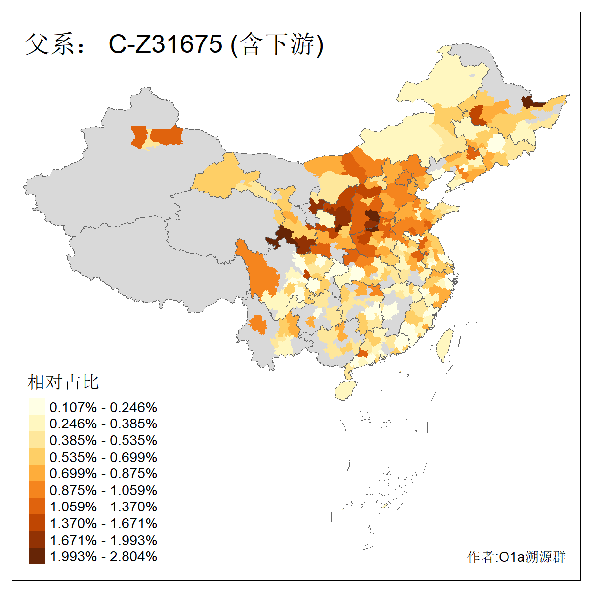 | C-M130_C-M217_C-F1067 | 33790 | 7.879% | 19232人(含下游) 王:1620 张:1371 李:1362 刘:982 陈:732 杨:668 周:353 赵:345 孙:304 吴:300 黄:299 徐:296 马:296 朱:238 ![]() | 0人(不含下游) |