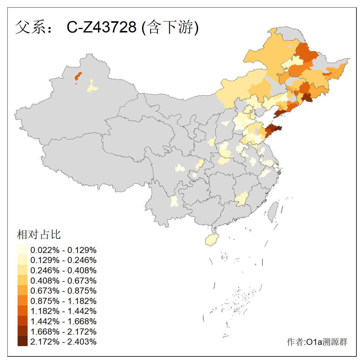 | C-M130_C-M217_C-L1373_C-F3447_C-F1699_C-Y6715_C-Y10418_C-FGC28903_C-F1756_C-F12632_C-Y10417_C-F3830_C-F10085_C-F9721_C-F11330_C-MF36855 | 2660 | 0.043% | 48人(含下游) 李:4 赵:4 张:3 王:3 达:3 陈:3 丛:2 刘:2 吴:2 郝:2 于:1 亓:1 叶:1 孙:1 ![]() | 0人(不含下游) |