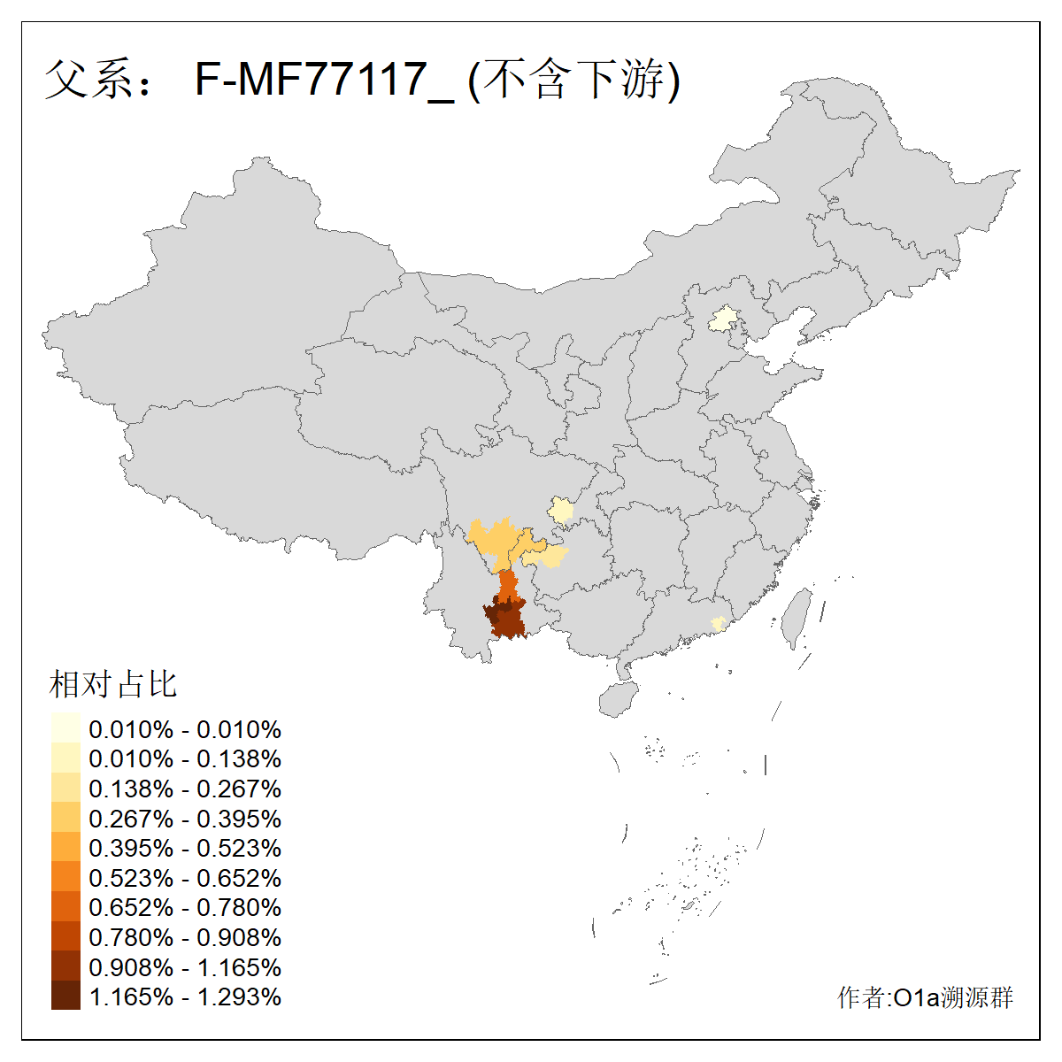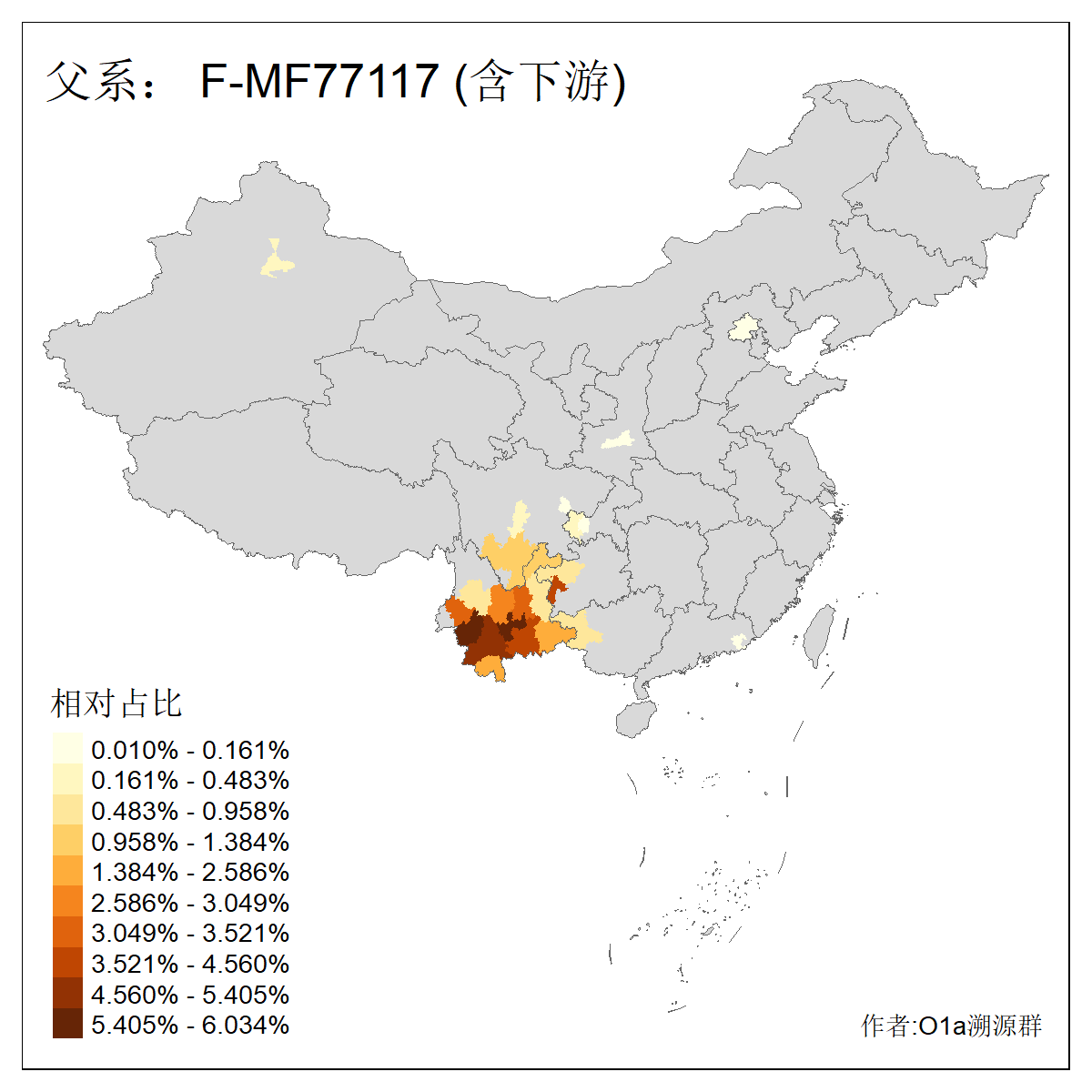| F-M89_F-Y27277_F-M427_F-MF77117_F-F17579 | 3070 | 0.116% | 97人(含下游) 李:18 陈:7 张:5 杨:5 王:4 方:3 普:3 段:3 罗:3 赵:3 阿:3 尚:2 徐:2 扎:2 ![]() | 72人(不含下游) 李:14 张:4 杨:4 方:3 普:3 段:3 罗:3 阿:3 徐:2 武:2 王:2 赵:2 陈:2 马:2 ![]() |