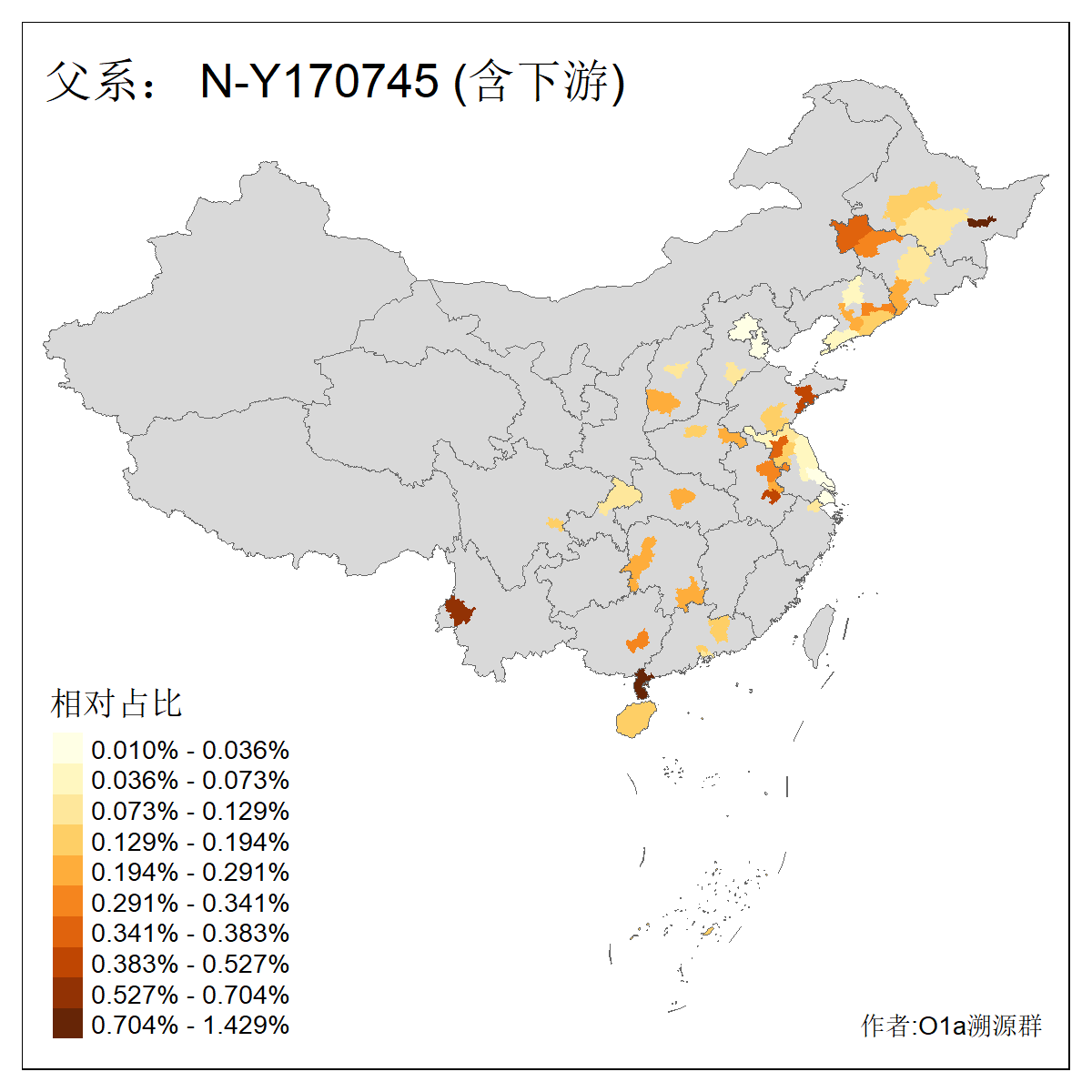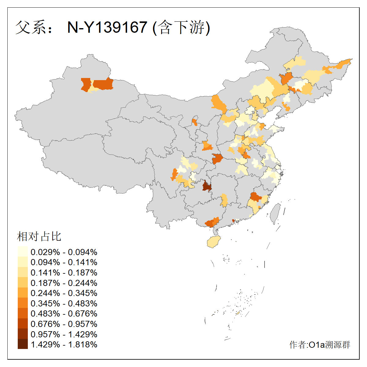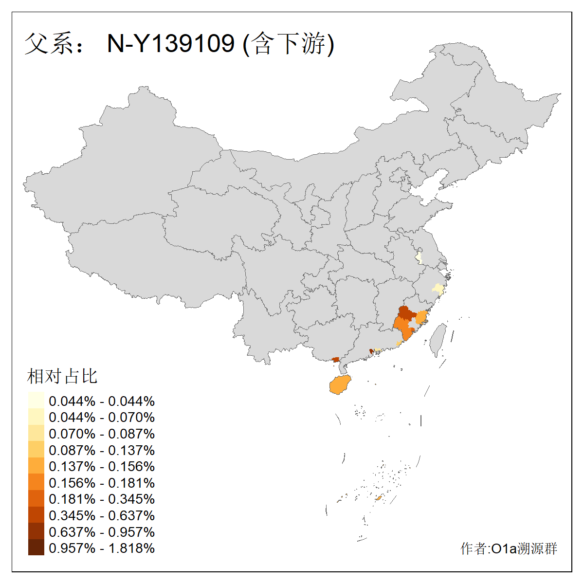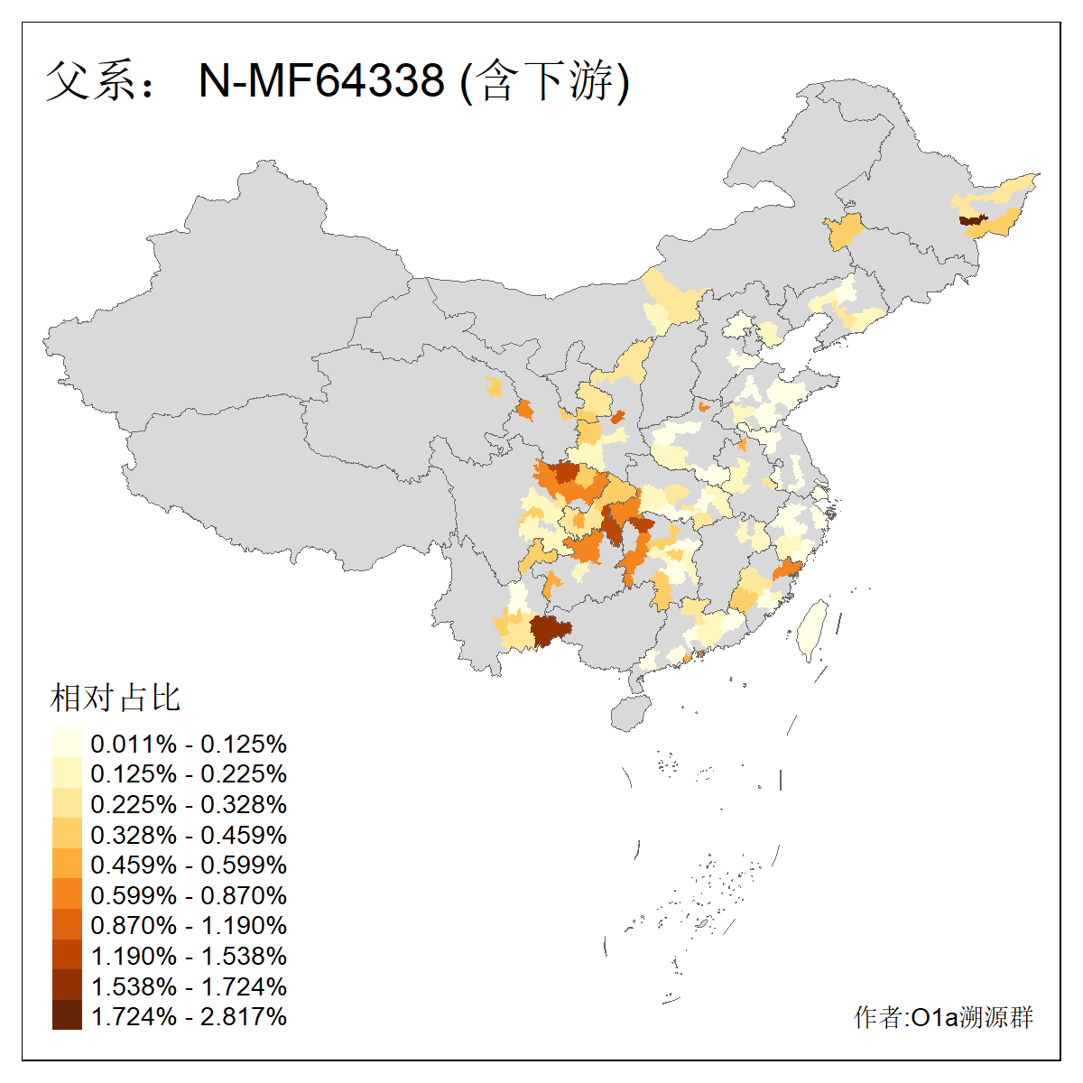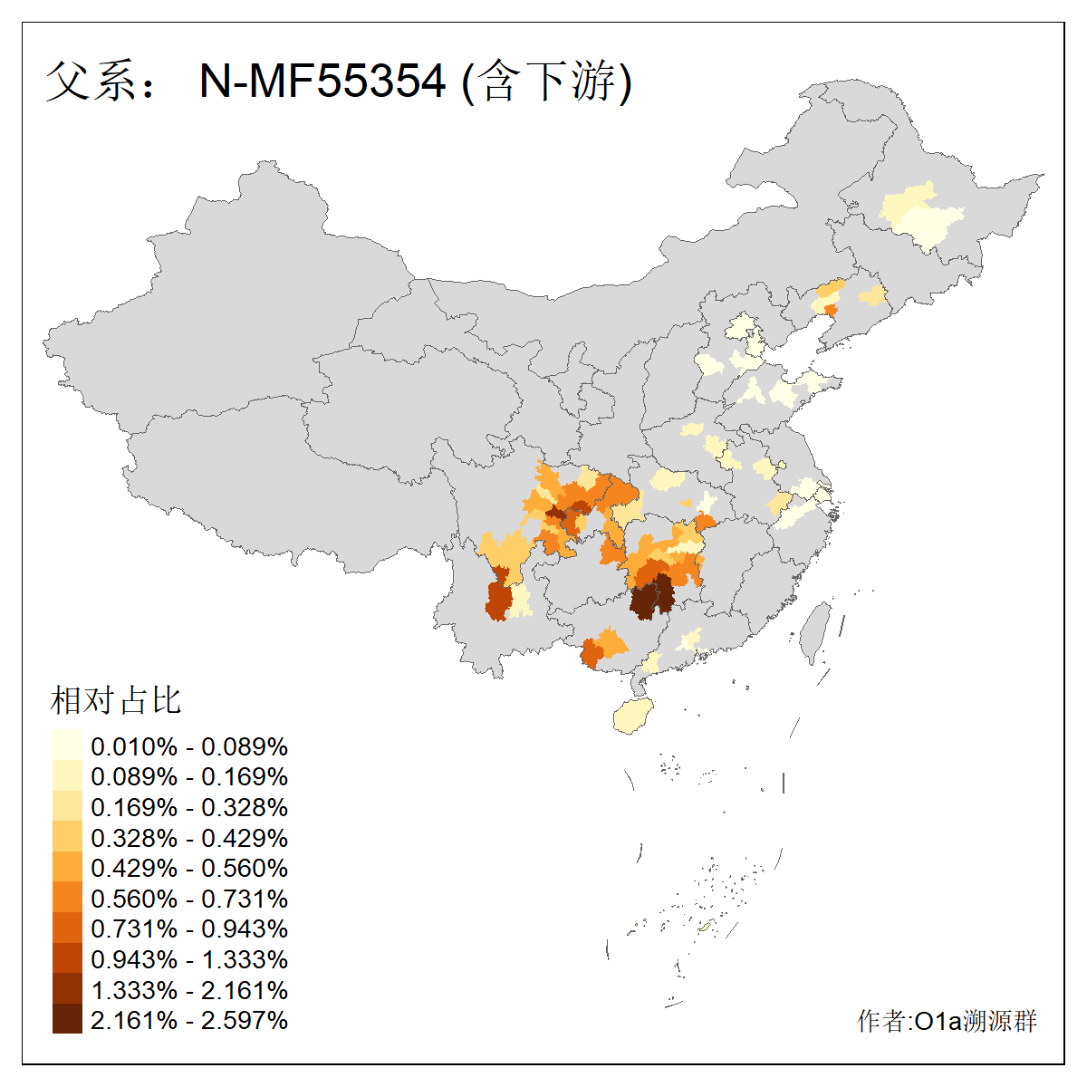 | N-M231_N-CTS833_N-F963_N-F2930_N-M1819_N-F1020_N-M1928_N-Y125475_N-MF170242_N-Y61520_N-MF159068_N-MF435971_N-Y62585 | 3250 | 0.096% | 190人(含下游) 李:15 王:15 何:10 杨:10 张:9 庞:8 苏:8 刘:7 程:7 陈:6 黄:6 戴:5 胡:4 夏:3 ![]() | 105人(不含下游) 王:13 何:8 李:8 杨:6 刘:5 苏:5 程:4 胡:4 陈:4 张:3 伏:2 夏:2 孙:2 徐:2 ![]() |