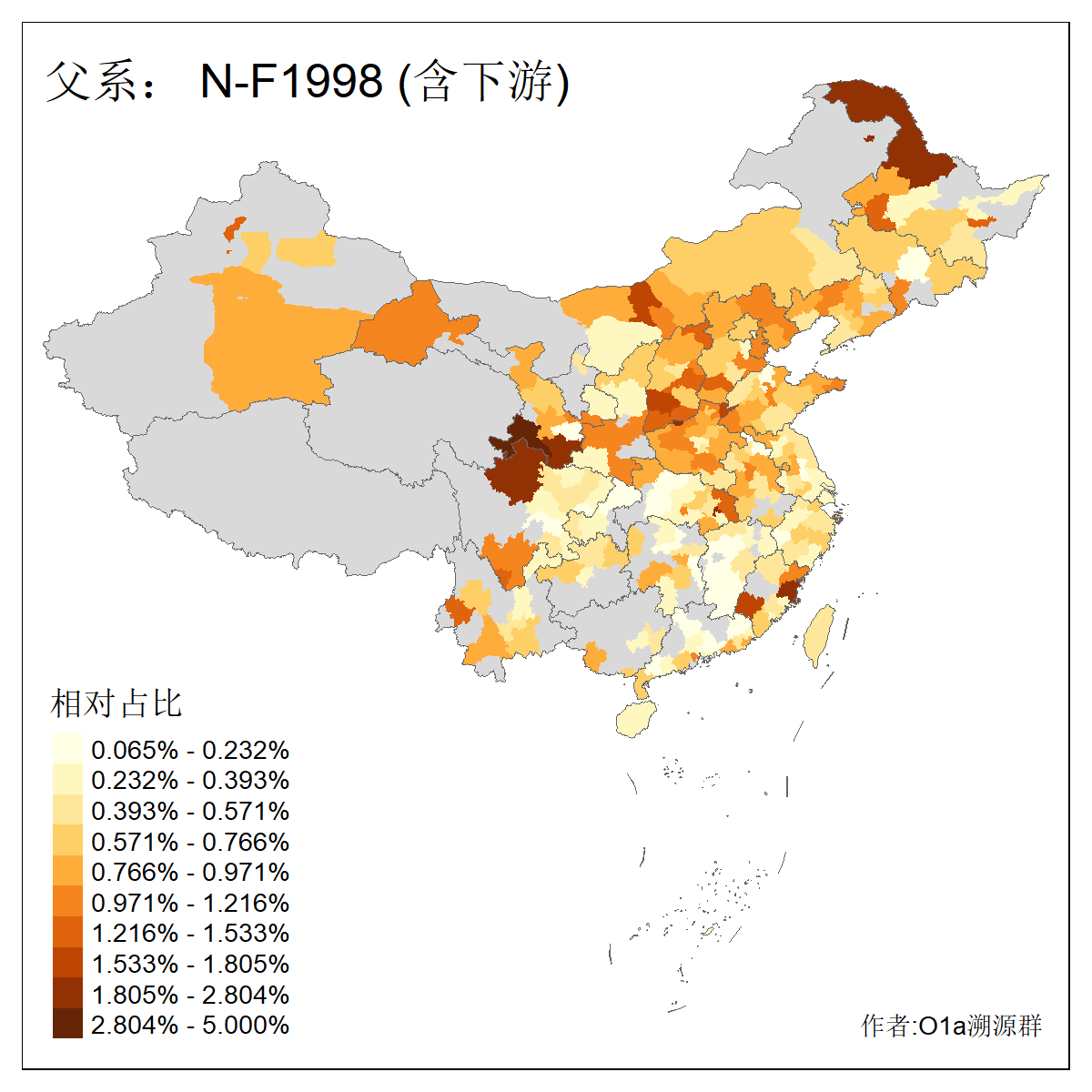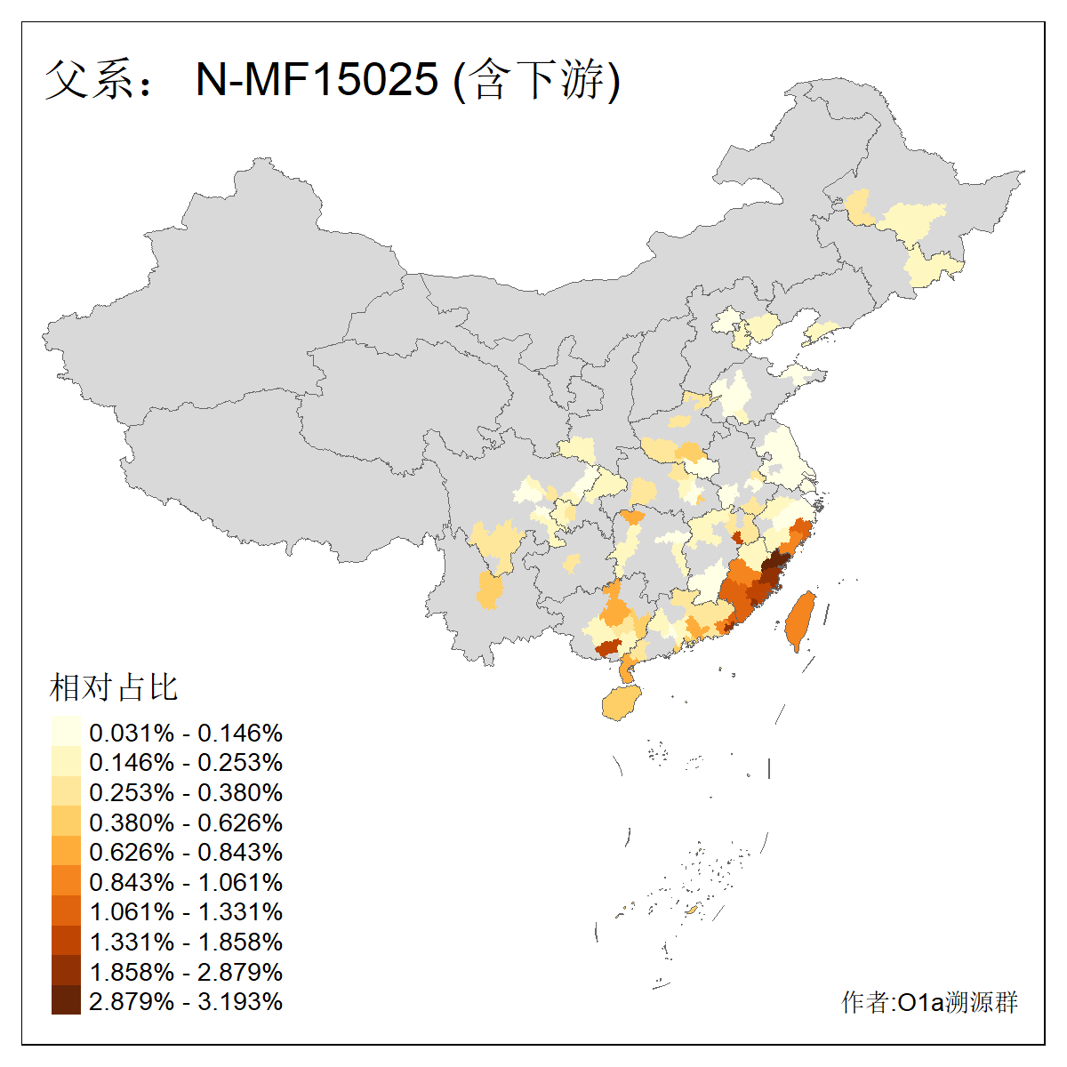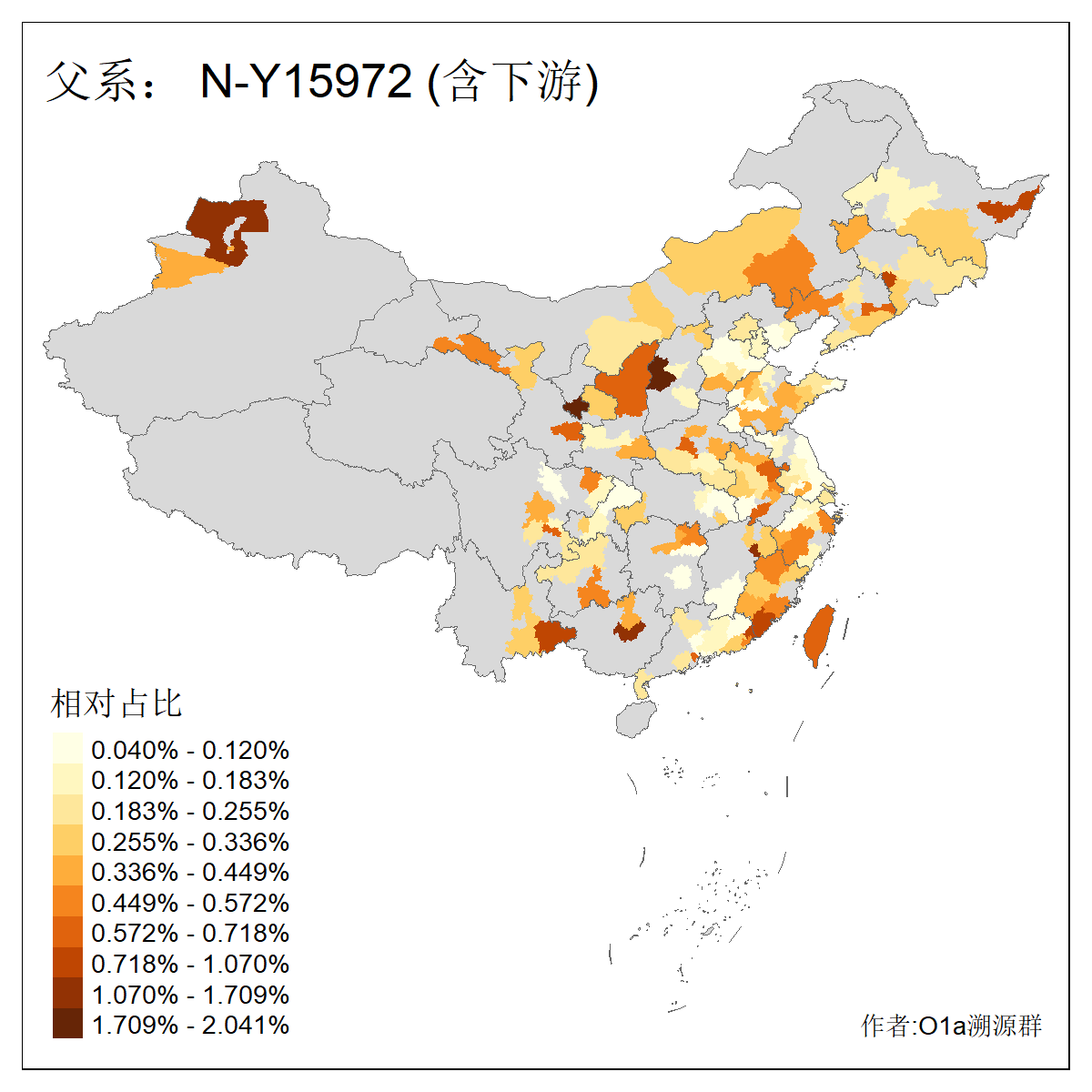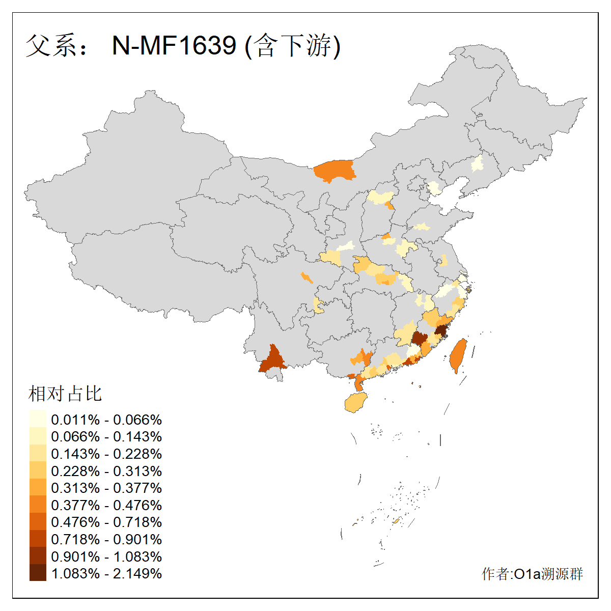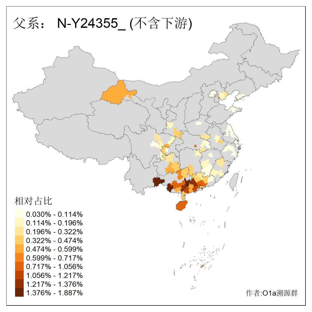 | N-M231_N-CTS833_N-F963_N-F2930_N-M1819_N-F1020_N-M1928_N-Y125475_N-MF170242_N-Y61520_N-MF159068_N-MF435971_N-Y62585 | 3250 | 0.096% | 190人(含下游) 李:15 王:15 何:10 杨:10 张:9 庞:8 苏:8 刘:7 程:7 陈:6 黄:6 戴:5 胡:4 夏:3 ![]() | 105人(不含下游) 王:13 何:8 李:8 杨:6 刘:5 苏:5 程:4 胡:4 陈:4 张:3 伏:2 夏:2 孙:2 徐:2 ![]() |