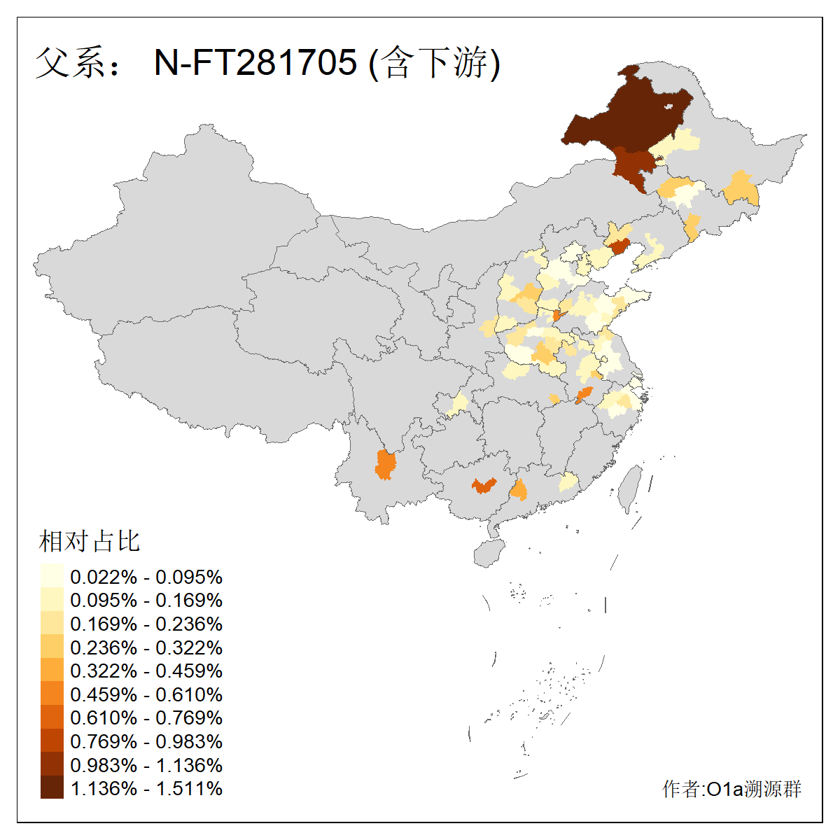 | N-M231_N-CTS833_N-F963_N-F1206_N-F2584_N-M46_N-CTS6128_N-Z1957_N-M2126_N-M2019_N-M2058 | 4170 | 0.205% | 446人(含下游) 王:64 张:53 李:35 刘:27 赵:13 贺:12 许:11 冯:10 杨:10 马:10 宋:9 陈:9 孙:8 郭:8 ![]() | 33人(不含下游) 张:5 赵:5 王:4 刘:3 李:2 董:2 马:2 云:1 包:1 吴:1 梁:1 罗:1 翟:1 艾:1 ![]() |
