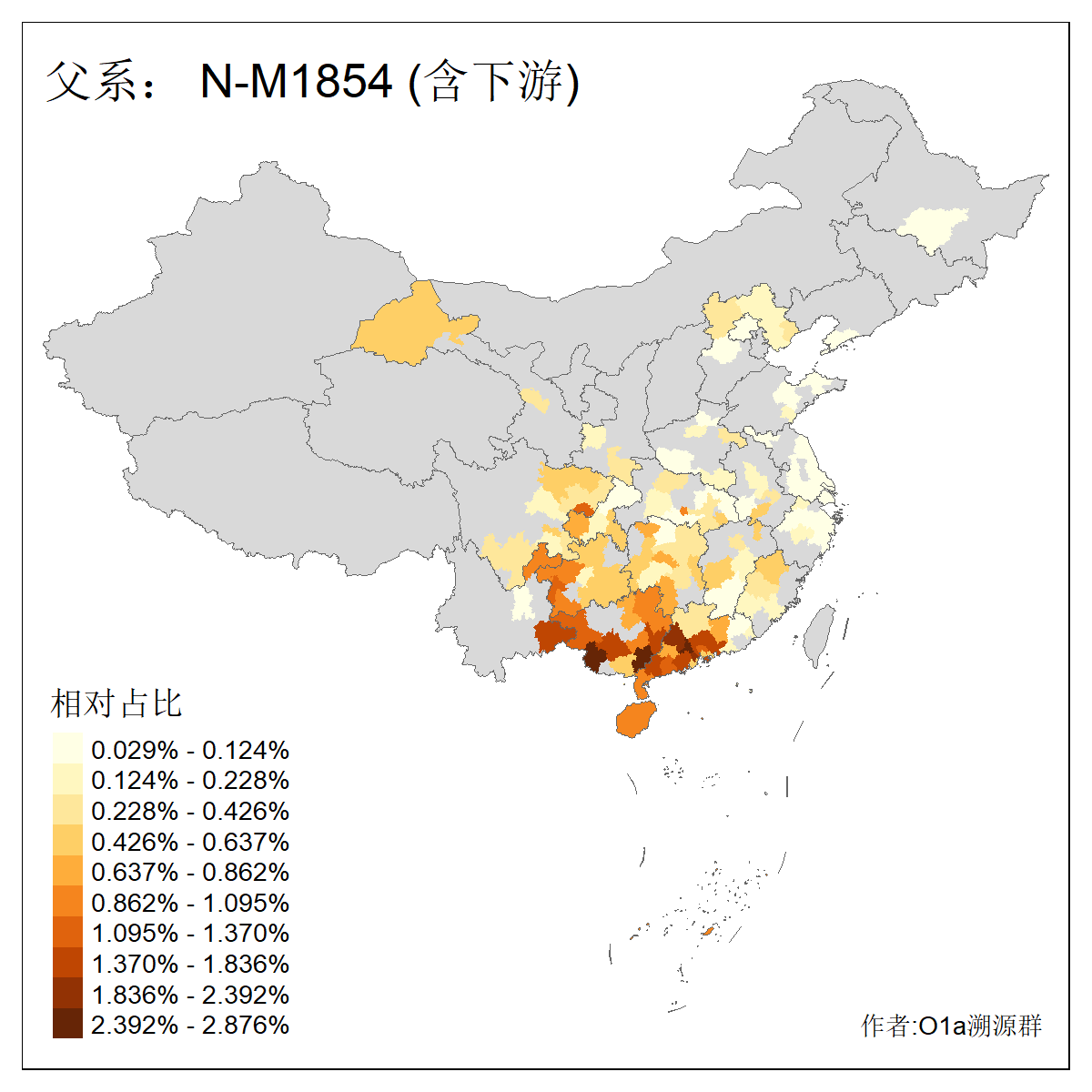 | #父系分布图 作者:咸宁华 2024年8月29日 注意:某些支系不含下游人数过少统计仅供参,仅统计含下游大于等于8人的支系 | ||||