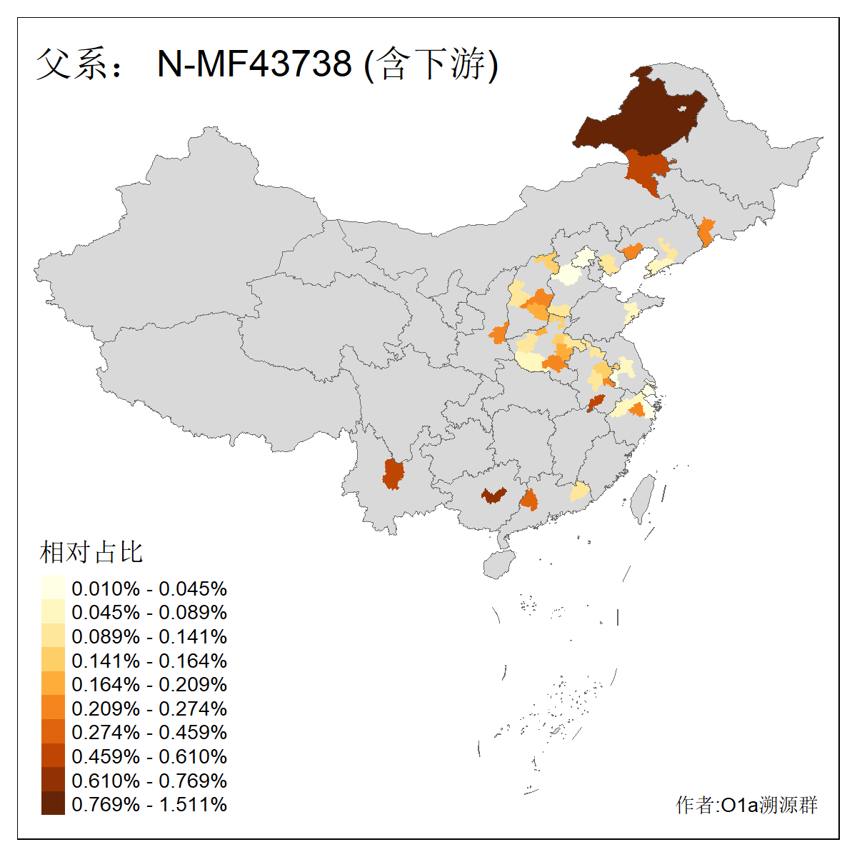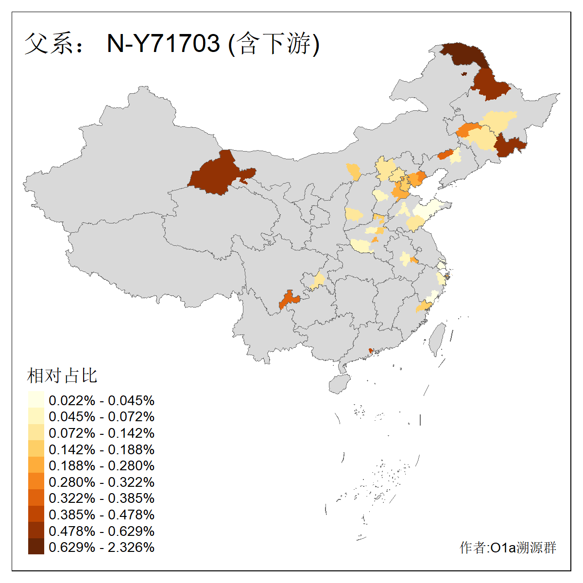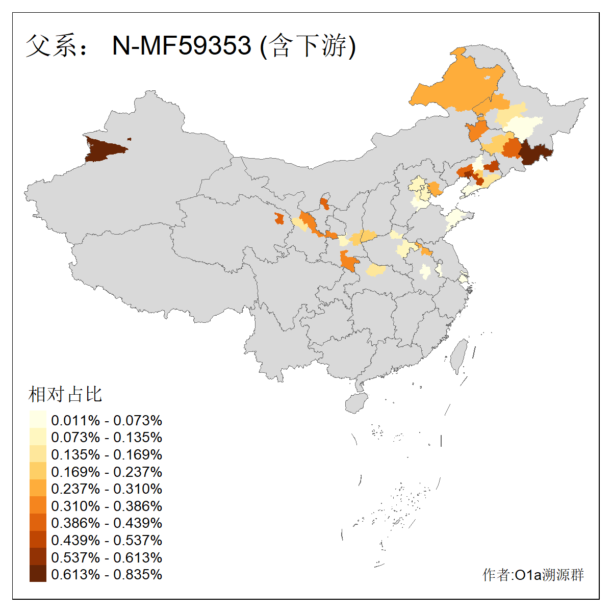 | N-M231_N-CTS833_N-F963_N-F1206_N-F2584_N-M46_N-CTS6128 | 10970 | 0.336% | 676人(含下游) 张:74 王:73 李:44 刘:41 杨:19 赵:18 许:14 陈:14 马:13 高:13 白:12 贺:12 郭:11 冯:10 ![]() | 1人(不含下游) 张:1 ![]() |