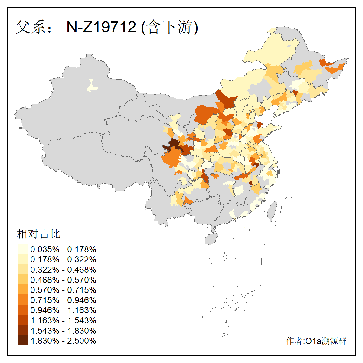 | N-M231_N-CTS833_N-F963_N-F1206_N-F2584_N-M46_N-F4063_N-Y125666_N-MF16681_N-MF15811_N-MF15765_N-MF15831 | 4560 | 0.394% | 325人(含下游) 张:25 黄:21 王:20 李:18 曹:14 孟:12 刘:9 杨:8 裴:7 韩:7 周:6 赵:6 陈:6 孙:5 ![]() | 0人(不含下游) |