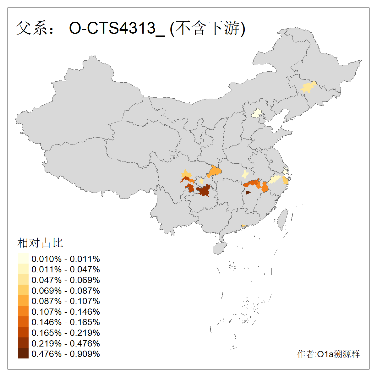 | O-F1876_O-F2159_O-F1867_O-F852_O-F2266_O-L599_O-Z24958_O-CTS5919_O-F16056 | 2010 | 0.007% | 13人(含下游) 黄:6 宋:1 幸:1 张:1 朱:1 熊:1 王:1 程:1 ![]() | 9人(不含下游) 黄:3 宋:1 幸:1 张:1 熊:1 王:1 程:1 ![]() |