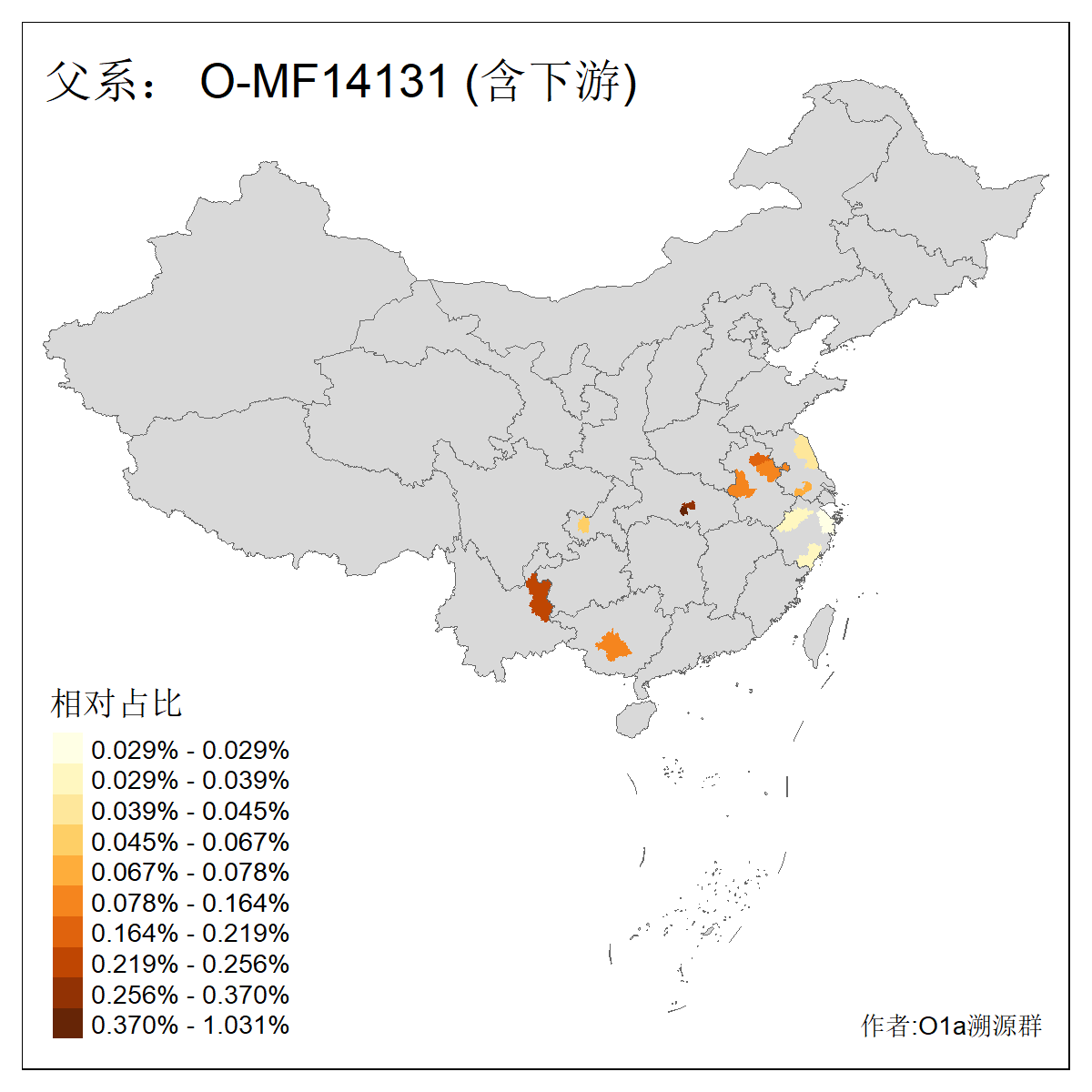 | O-F1876_O-F2159_O-F1867_O-F852_O-F854_O-CTS1290_O-Z24850_O-Z24891_O-MF162752 | 2600 | 0.020% | 44人(含下游) 马:4 刘:3 朱:3 潘:3 冯:2 周:2 赵:2 郑:2 陈:2 伊:1 何:1 史:1 唐:1 姜:1 ![]() | 3人(不含下游) 何:1 姜:1 马:1 ![]() |