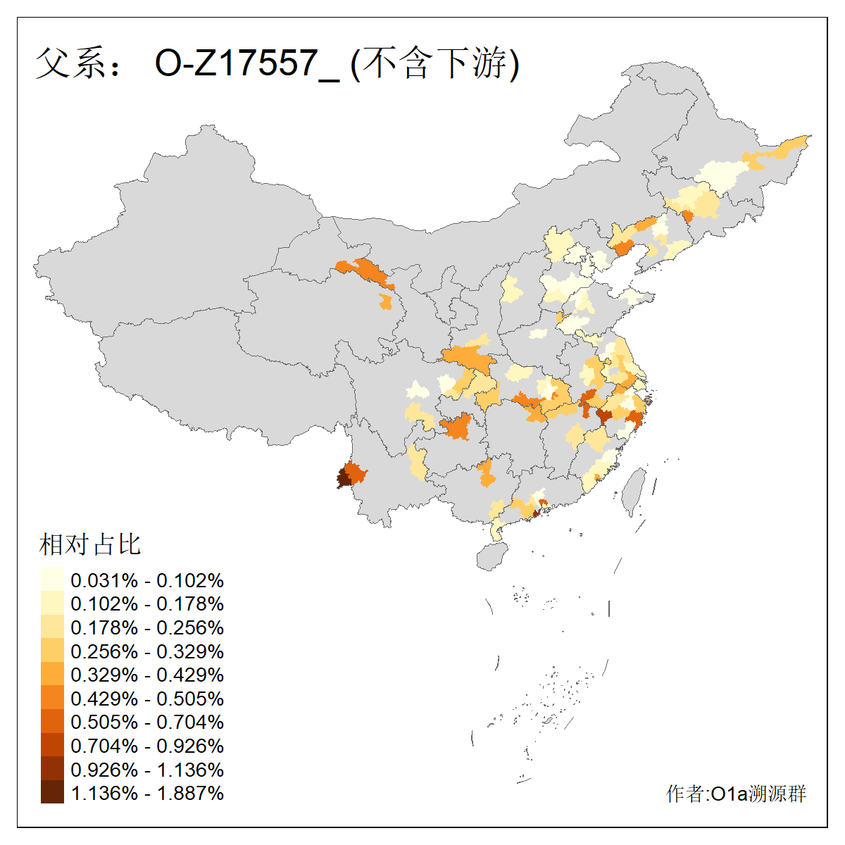 | O-F742_O-F1150_O-F2310_O-F837_O-Y29783_O-CTS2334_O-MF14167_O-Y29792_O-Y173835_O-Y173834_O-MF14883_O-CTS798_O-F1025_O-MF253242 | 1850 | 0.041% | 24人(含下游) 孙:8 刘:4 李:2 屈:1 岑:1 张:1 杨:1 王:1 计:1 谢:1 郑:1 陈:1 黄:1 ![]() | 4人(不含下游) 刘:1 杨:1 郑:1 ![]() |
