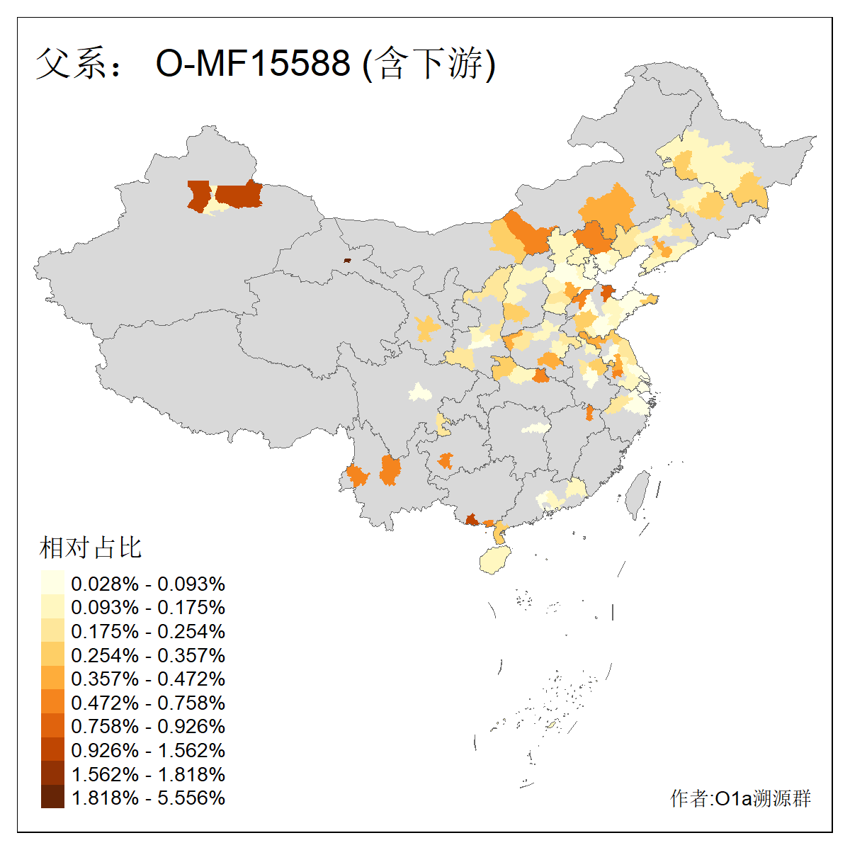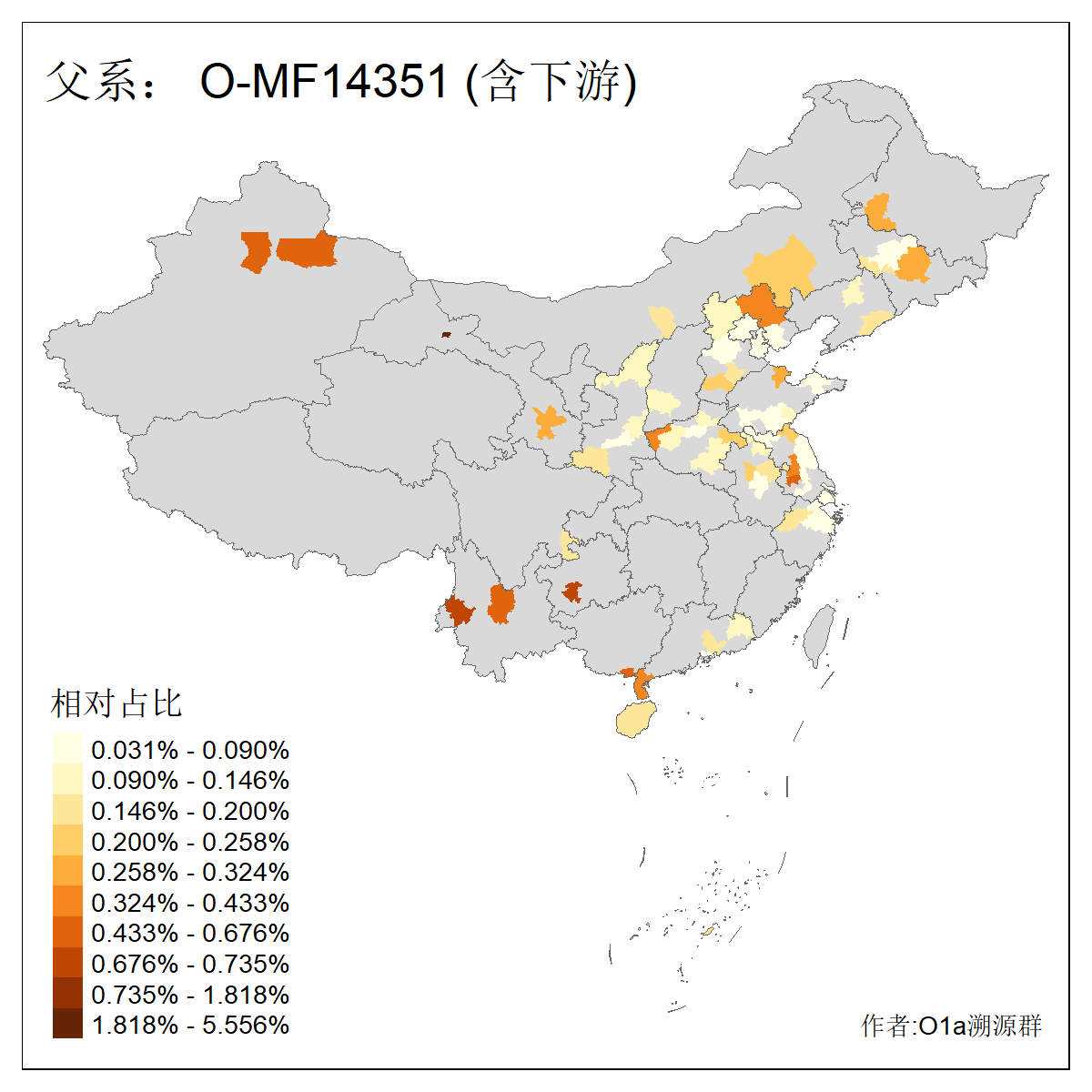 | O-F742_O-F1150_O-F2310_O-F837_O-Y29783_O-CTS2334_O-MF14167_O-Y29792_O-Y173835_O-Y173834_O-FGC4253_O-MF56407 | 2930 | 0.037% | 21人(含下游) 丁:12 刘:2 张:2 孔:1 李:1 贺:1 邱:1 黄:1 ![]() | 2人(不含下游) 张:2 贺:1 ![]() |