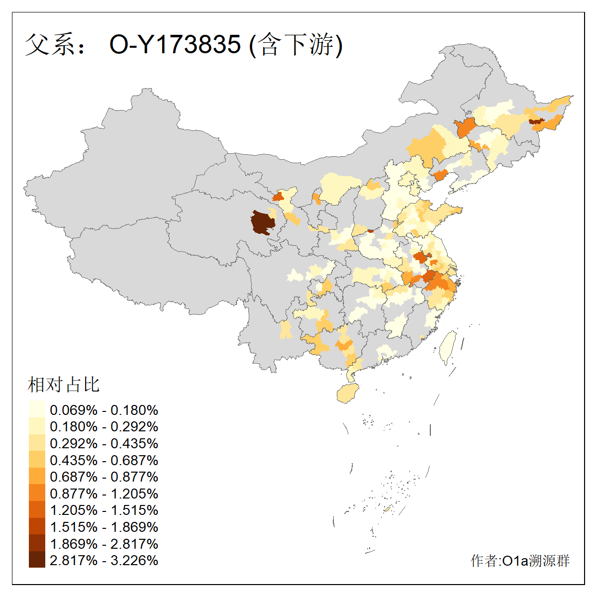 | O-F742_O-F1150_O-F2310_O-F837_O-Y29783_O-CTS2334_O-MF14167_O-Y29792_O-Y173835_O-Y173834 | 3660 | 0.169% | 483人(含下游) 刘:40 孙:34 张:28 于:26 王:26 陈:22 李:20 丁:15 章:12 周:10 徐:8 黄:8 赵:7 吴:6 ![]() | 80人(不含下游) 王:13 张:8 于:5 刘:5 李:5 戴:3 徐:2 林:2 解:2 金:2 陈:2 隋:2 黄:2 任:1 ![]() |