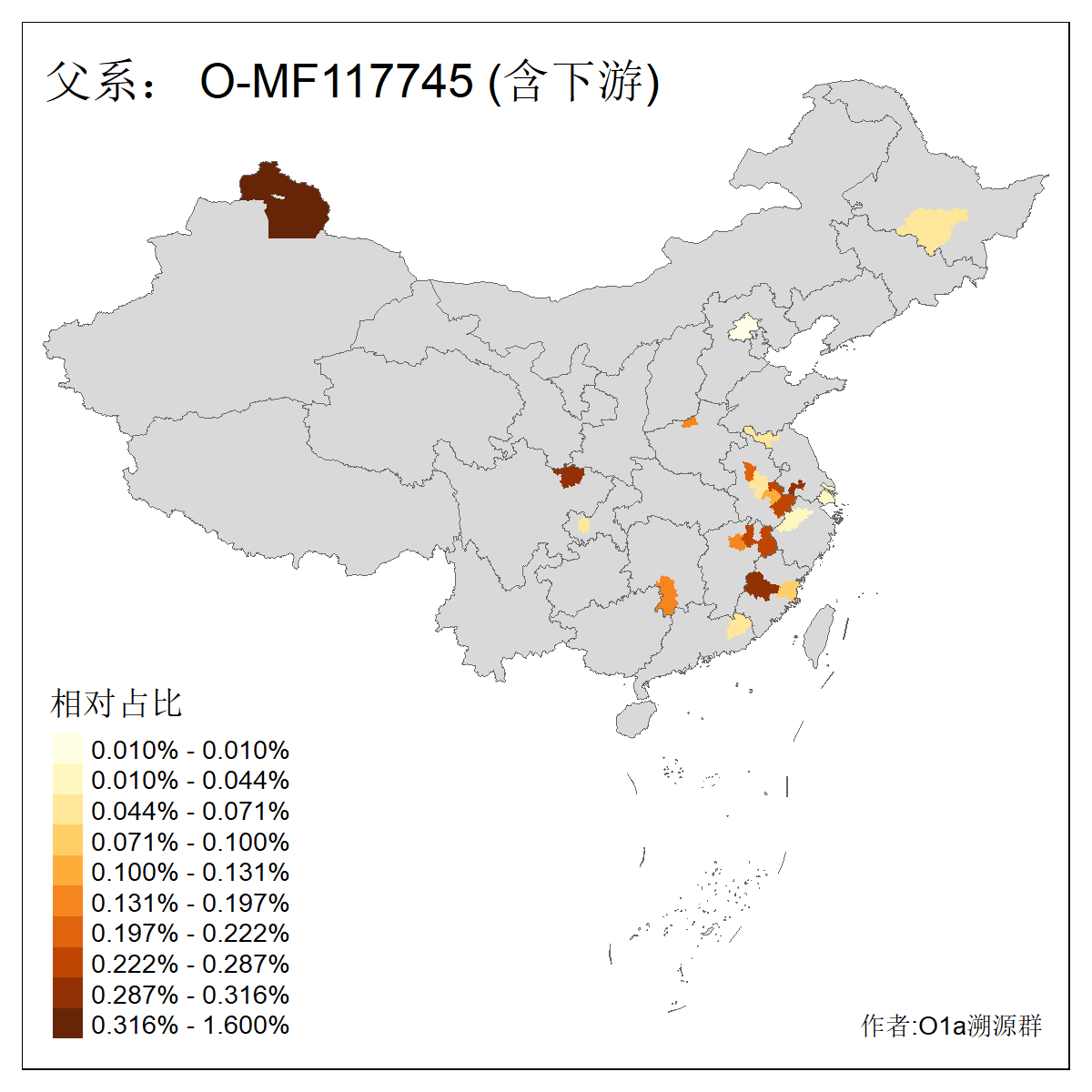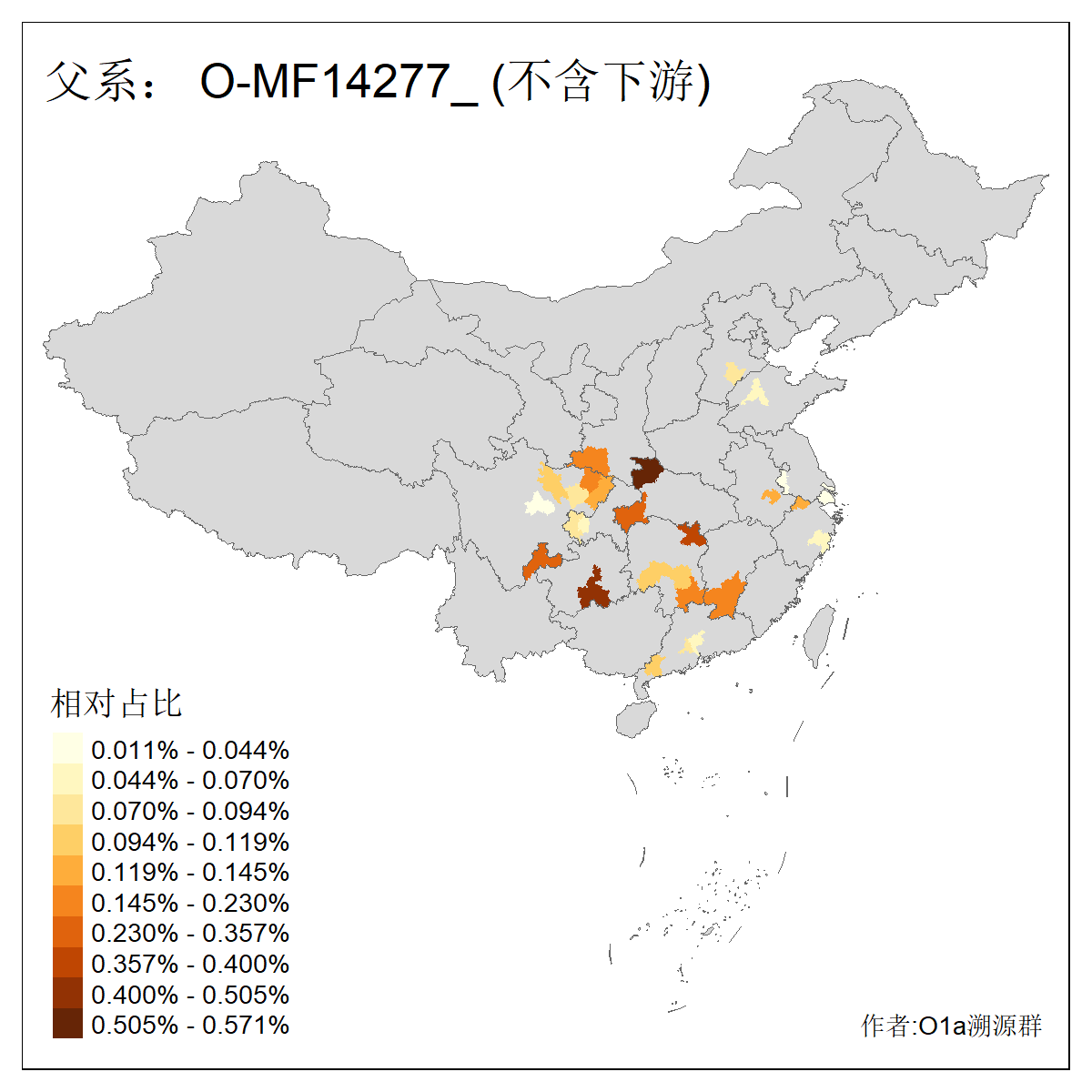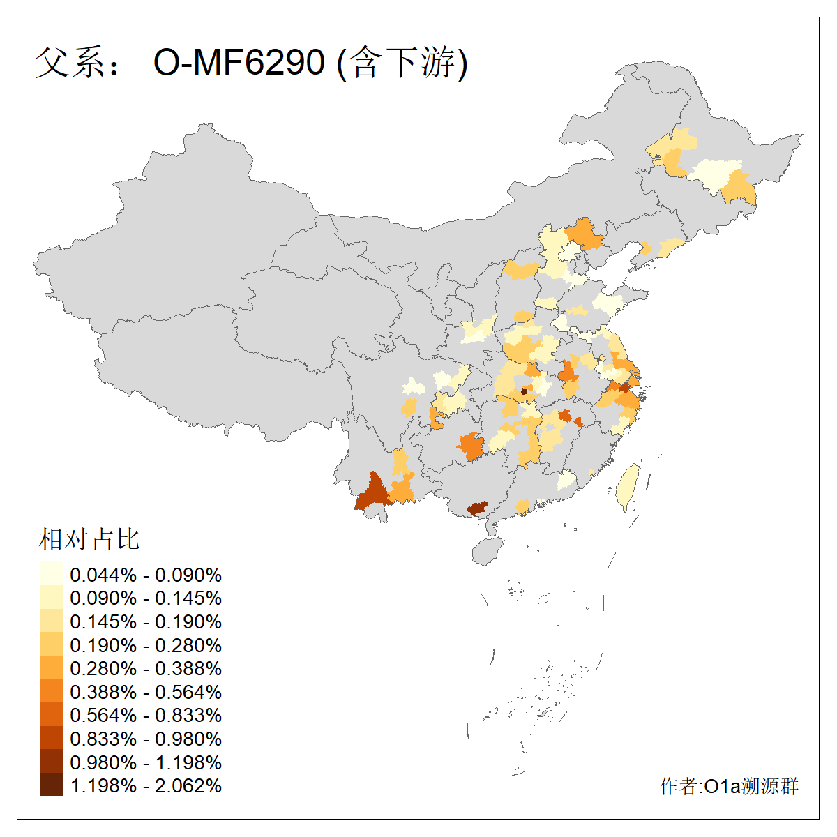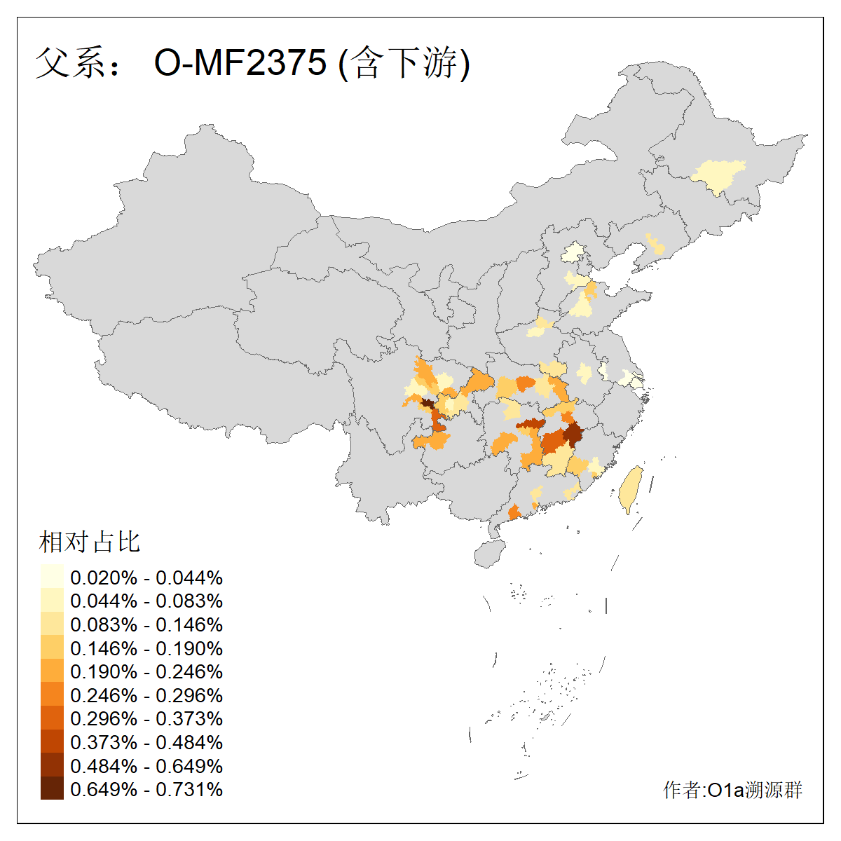 | O-M119_O-F1_O-Z23193_O-M307_O-F446_O-Z23448_O-F140_O-K611_O-F206_O-F78_O-F81_O-MF1075_O-MF1081_O-MF36656 | 1570 | 0.026% | 9人(含下游) 杨:2 刘:1 李:1 缪:1 袁:1 贡:1 赵:1 陶:1 ![]() | 4人(不含下游) 刘:1 李:1 杨:1 缪:1 ![]() |