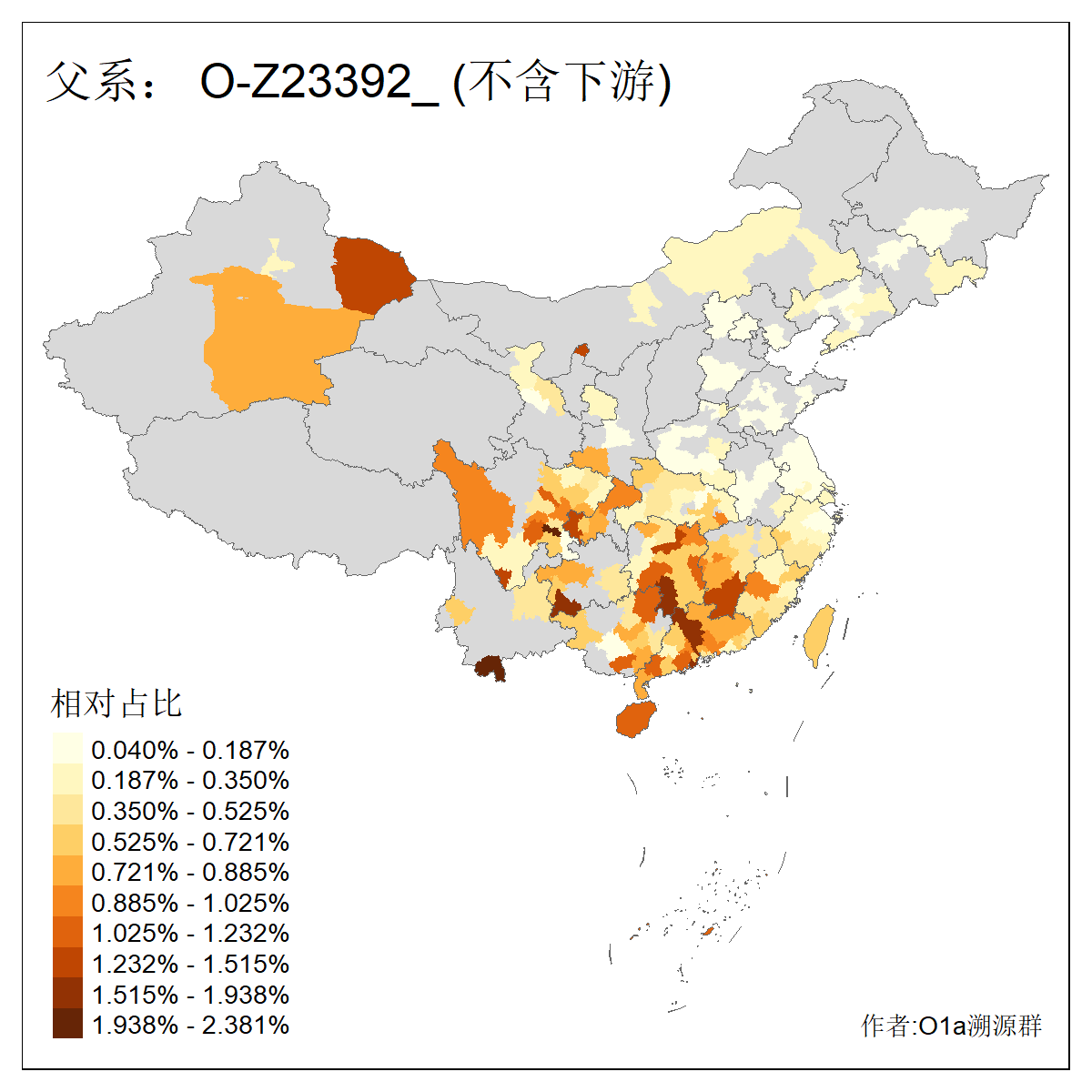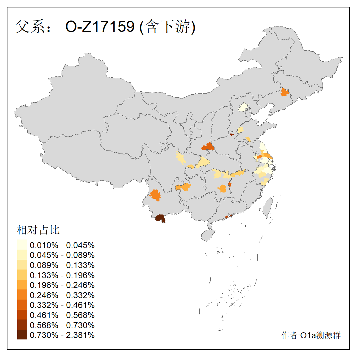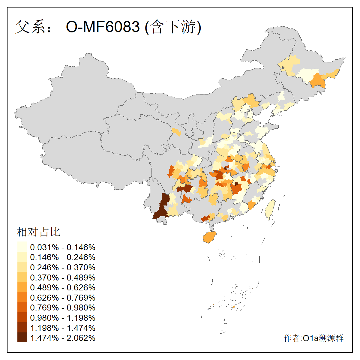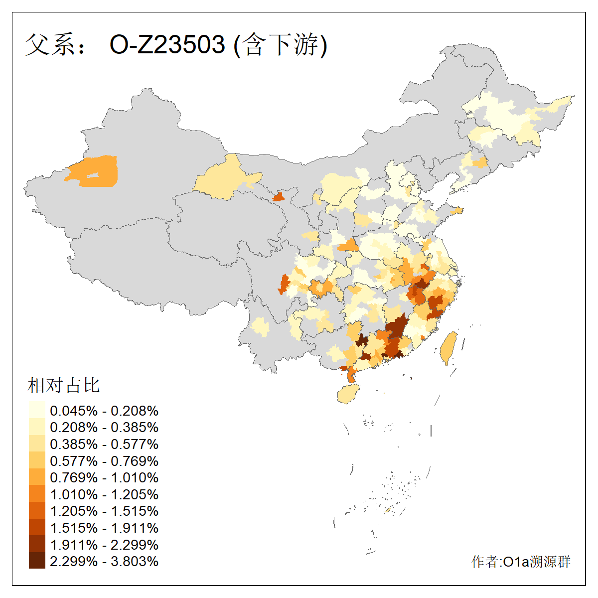 | O-M119_O-F1_O-Z23193_O-M307_O-F446_O-Z23448_O-F140_O-K611_O-F206_O-F78_O-F81_O-CTS2458_O-MF6080 | 4450 | 0.258% | 502人(含下游) 张:31 王:29 刘:26 陈:26 李:21 黄:21 郑:20 周:17 姚:13 杨:13 朱:12 万:9 胡:9 何:8 ![]() | 65人(不含下游) 郑:11 陈:5 王:4 张:3 林:3 黄:3 刘:2 叶:2 周:2 程:2 胡:2 袁:2 许:2 余:1 ![]() |