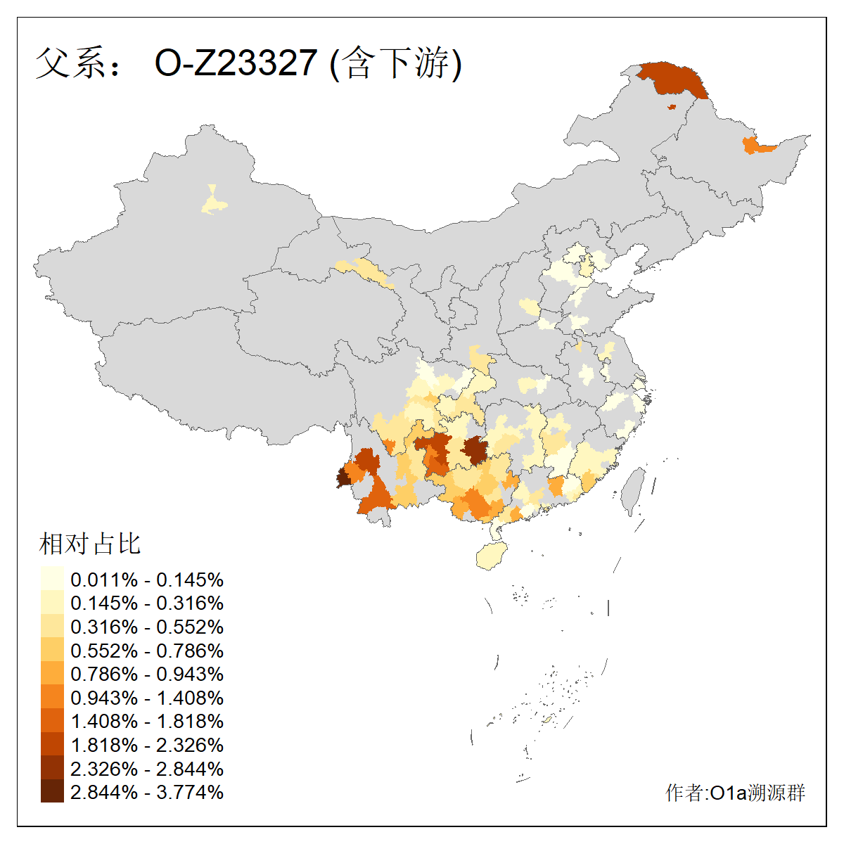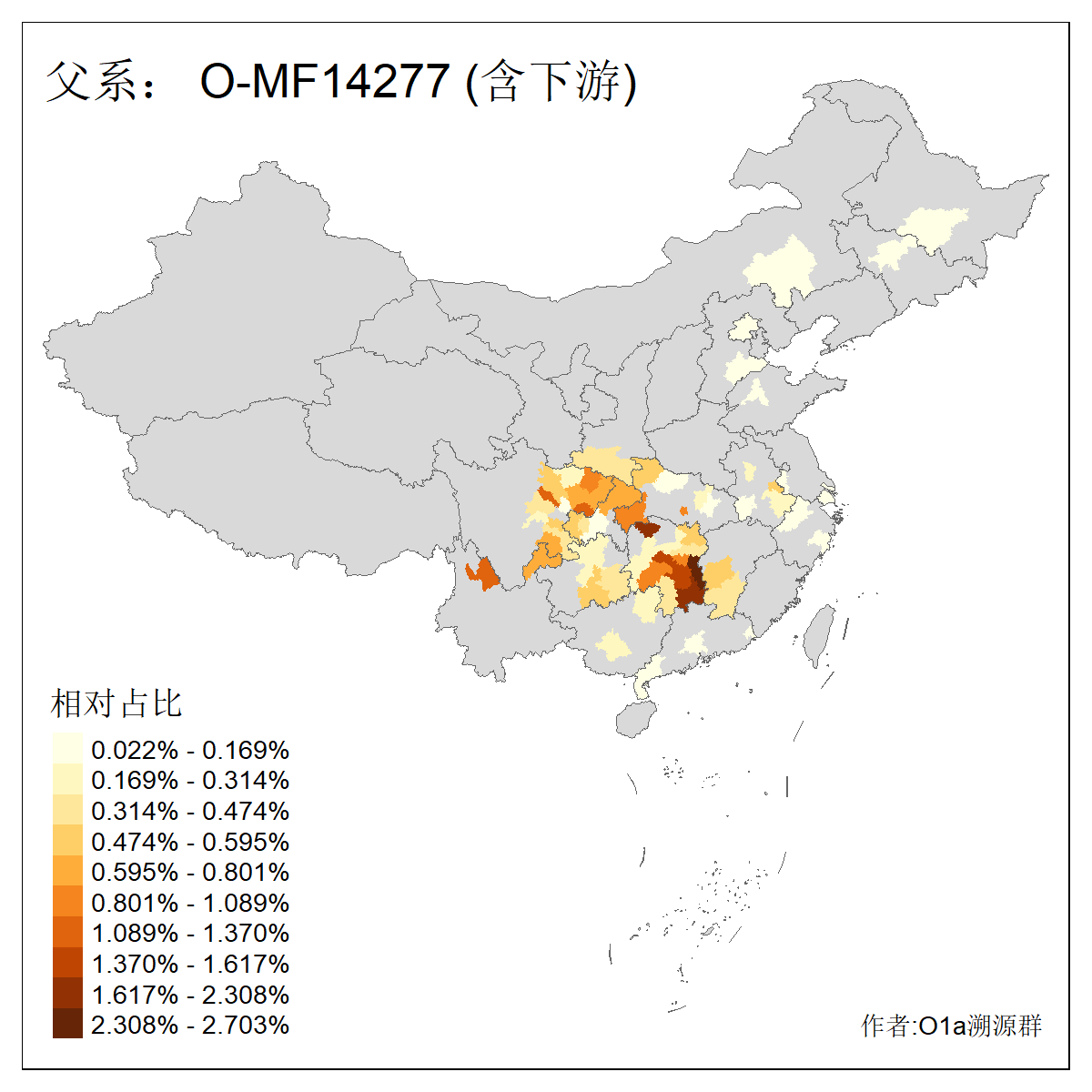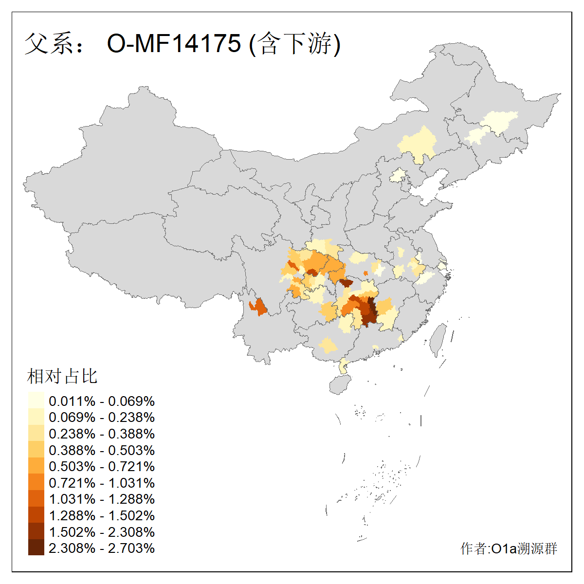 | O-M119_O-F1_O-F3288 | 5550 | 0.195% | 368人(含下游) 黄:30 陈:21 李:20 张:17 刘:16 吴:13 周:11 王:11 彭:8 苏:8 何:7 冯:7 赵:7 骆:7 ![]() | 30人(不含下游) 刘:3 袁:3 周:2 彭:2 肖:2 陈:2 丁:1 伍:1 夏:1 易:1 曹:1 曾:1 朱:1 杜:1 ![]() |