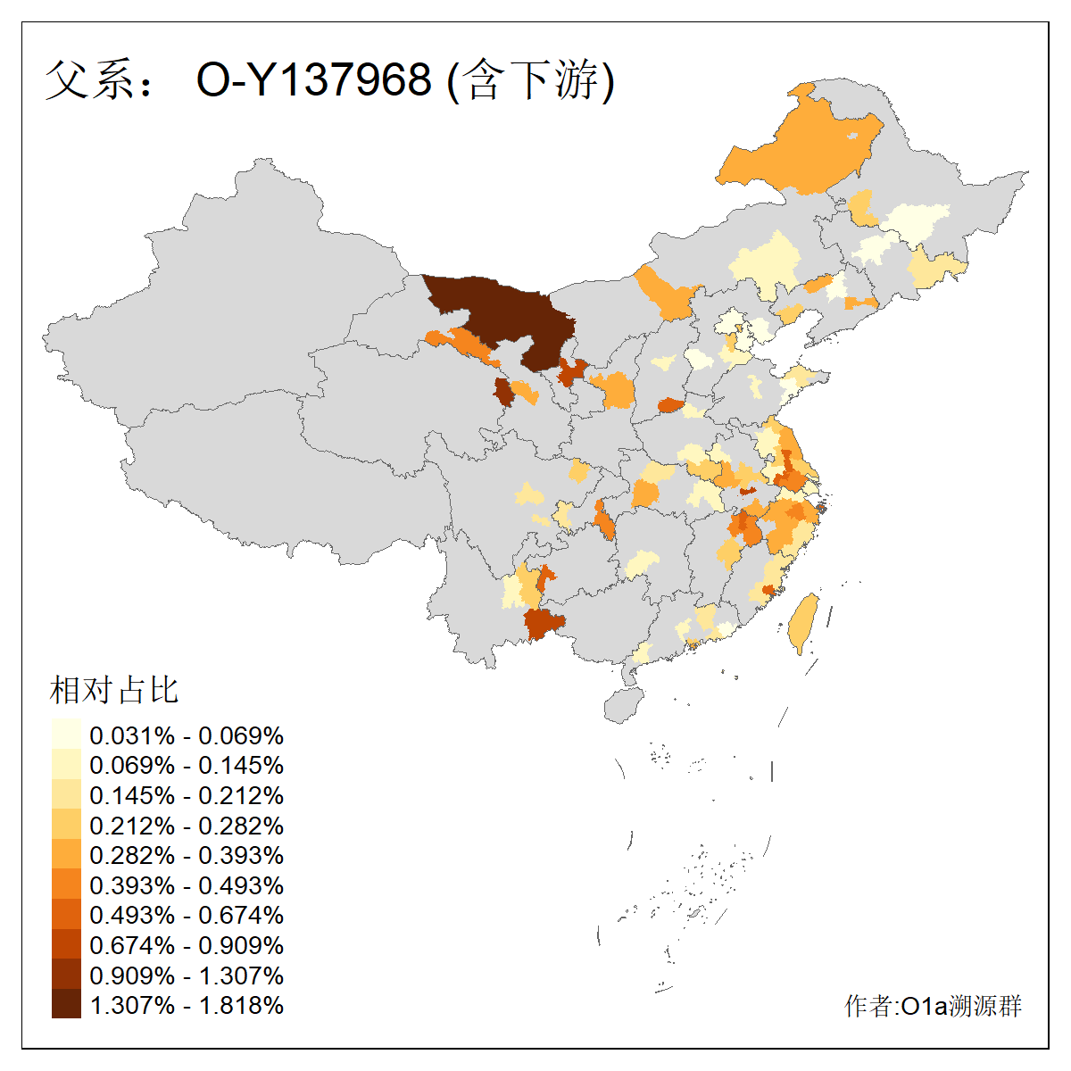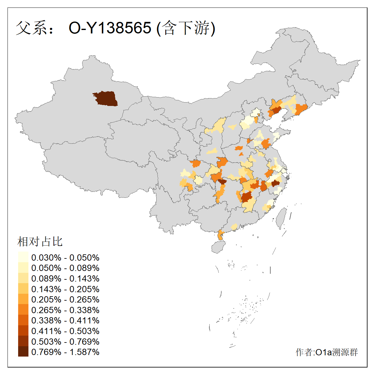 | O-M119_O-F1_O-Z23193_O-CTS5726_O-SK1590 | 9680 | 0.126% | 270人(含下游) 王:21 陈:21 胡:20 吴:17 刘:14 张:14 杨:12 宋:9 姚:8 崔:8 周:7 赵:7 黄:7 朱:6 ![]() | 1人(不含下游) 张:1 ![]() |