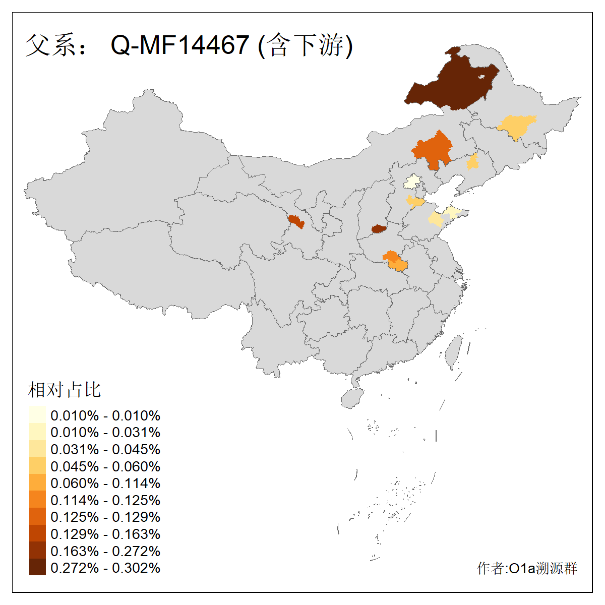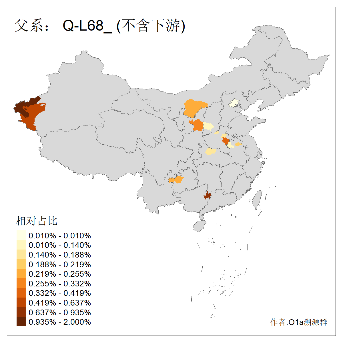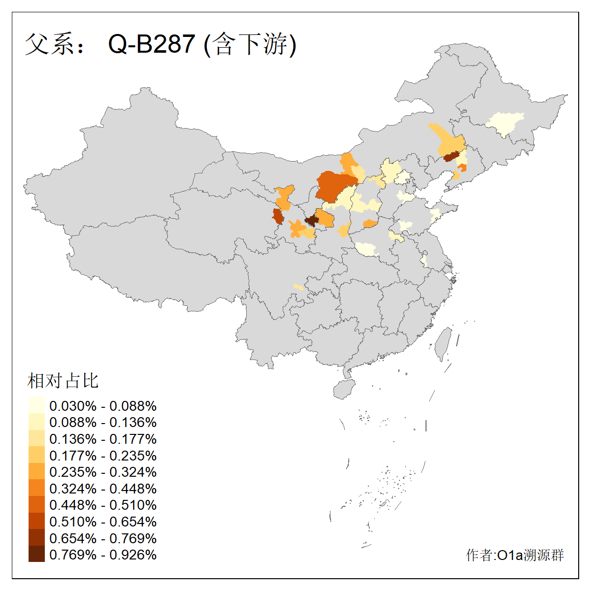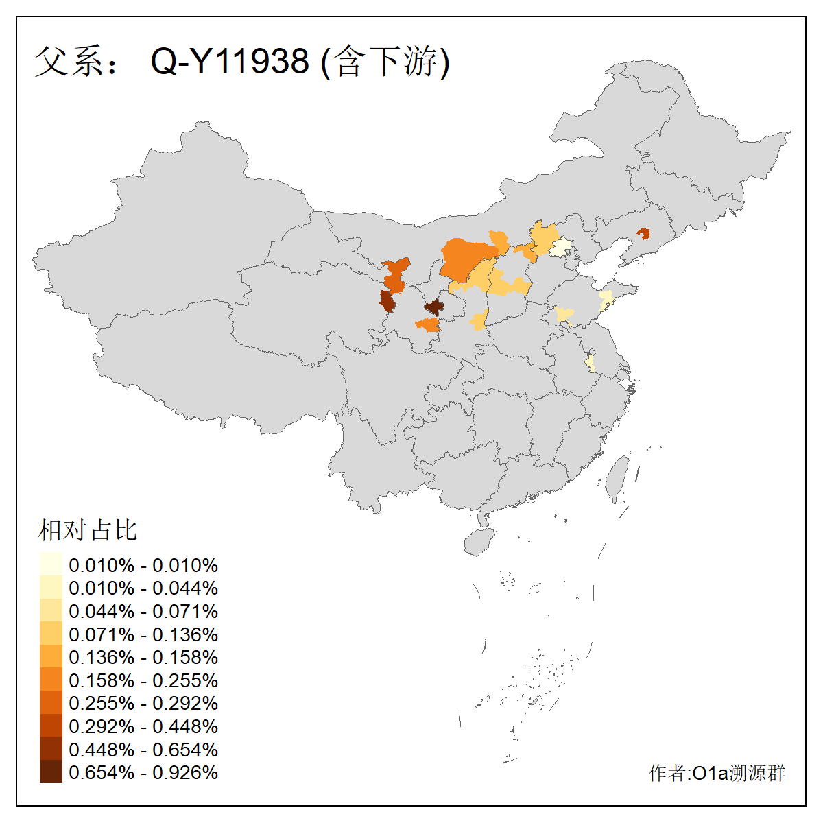 | Q_Q-L472_Q-M346_Q-L53_Q-L54 | 15700 | 0.095% | 223人(含下游) 刘:20 王:20 张:16 李:16 贺:9 马:8 白:7 陈:7 高:6 杨:5 贾:4 郭:4 于:3 周:3 ![]() | 2人(不含下游) 左:1 蔡:1 ![]() |