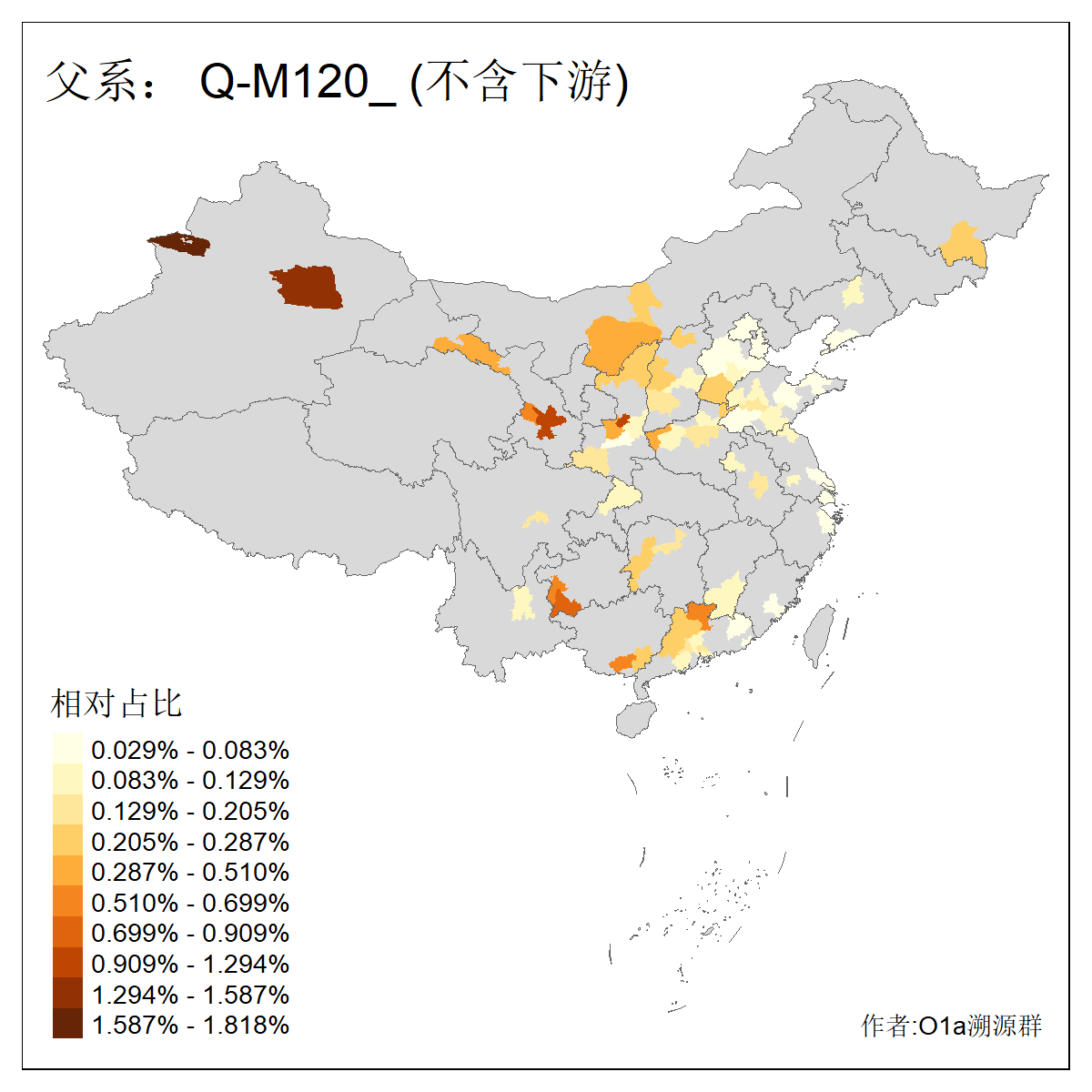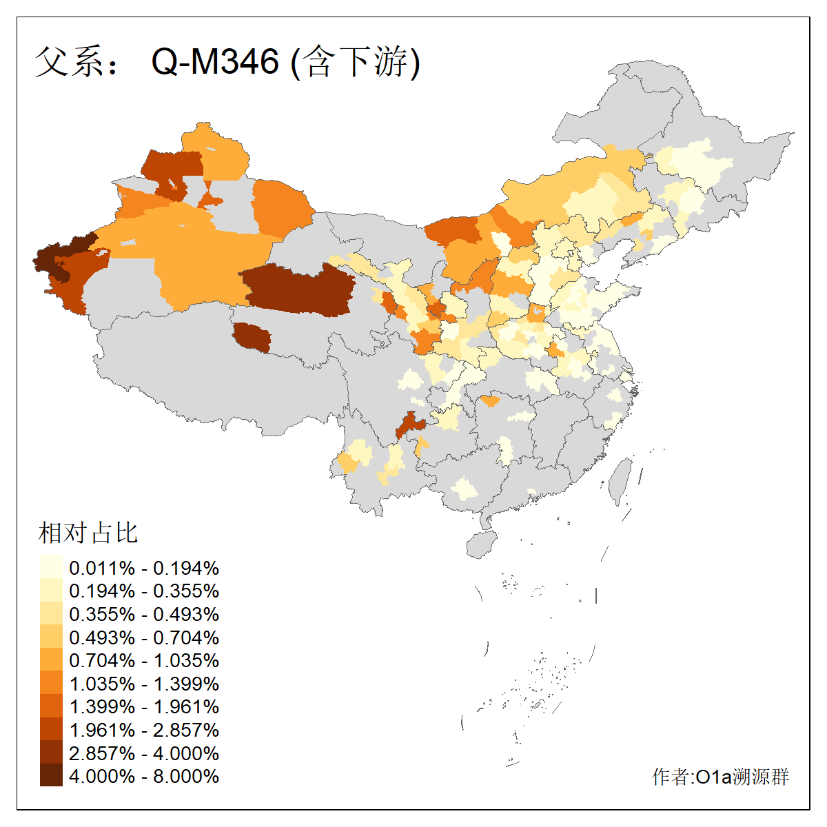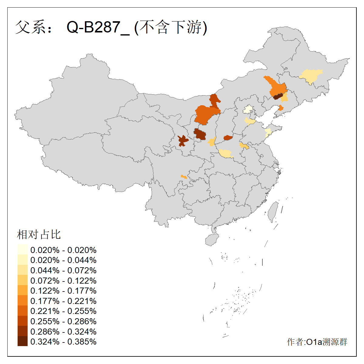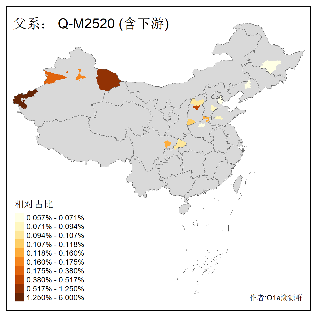 | Q_Q-L472_Q-M346_Q-L53_Q-L54 | 15700 | 0.095% | 223人(含下游) 刘:20 王:20 张:16 李:16 贺:9 马:8 白:7 陈:7 高:6 杨:5 贾:4 郭:4 于:3 周:3 ![]() | 2人(不含下游) 左:1 蔡:1 ![]() |