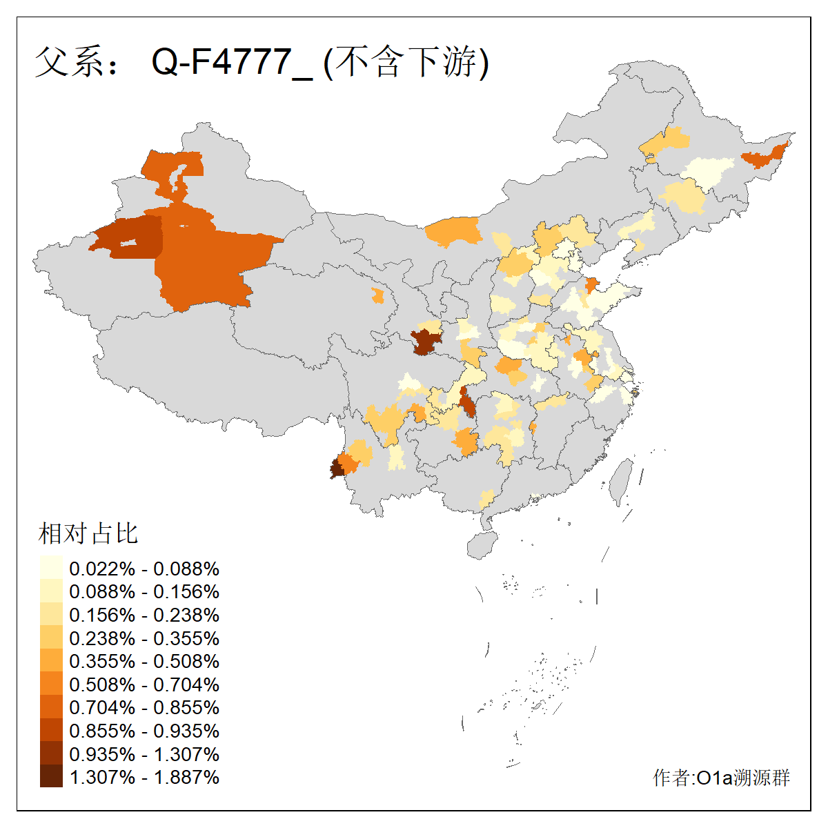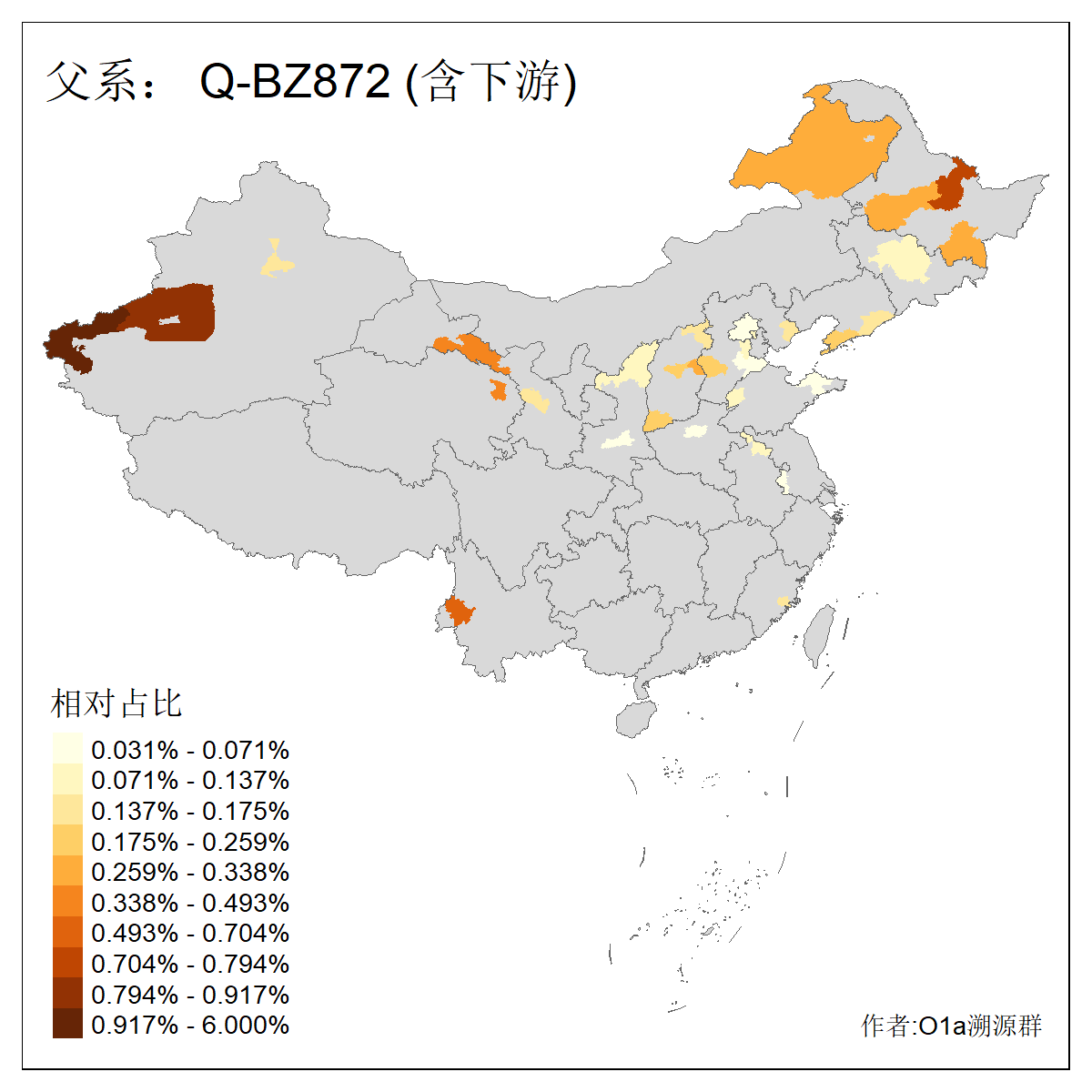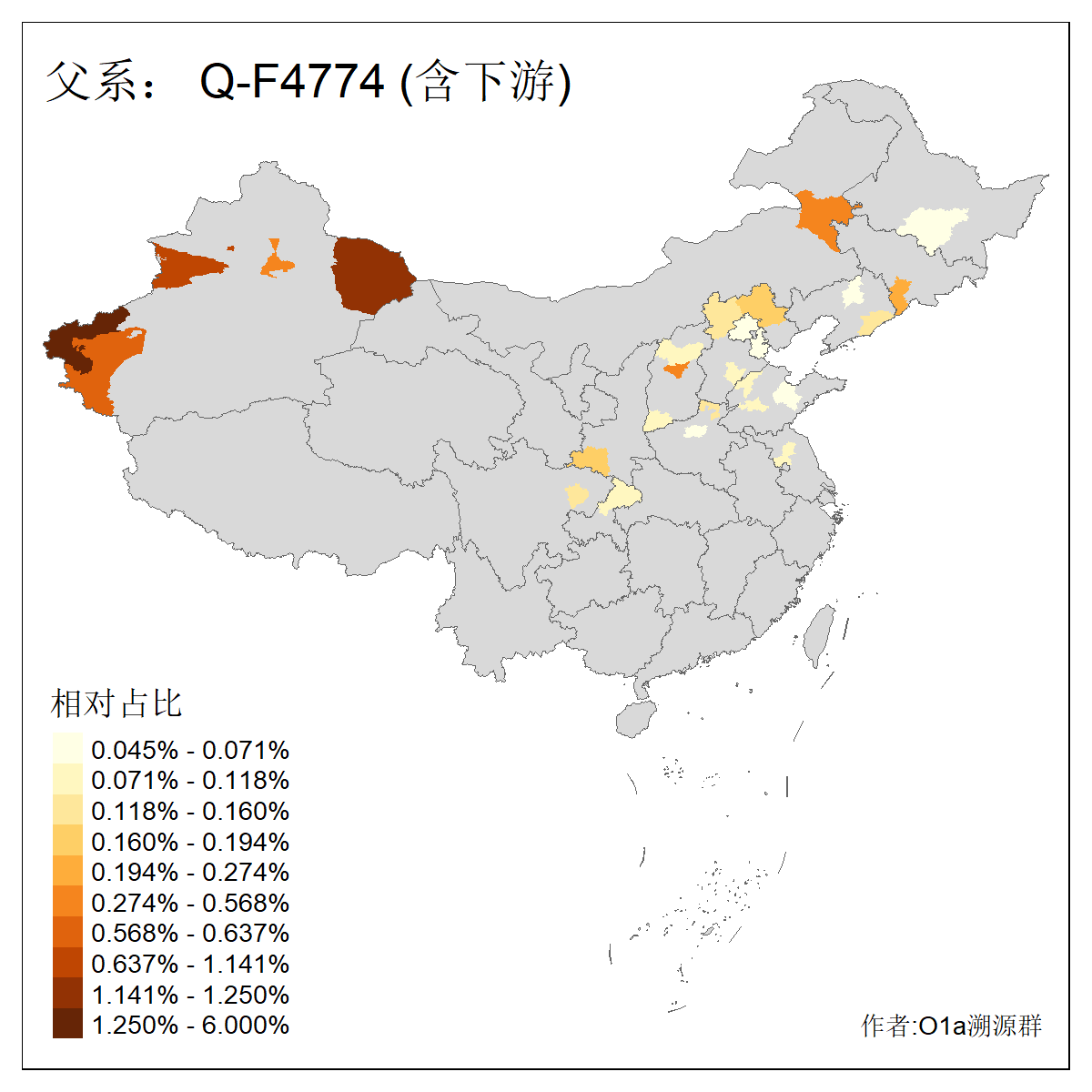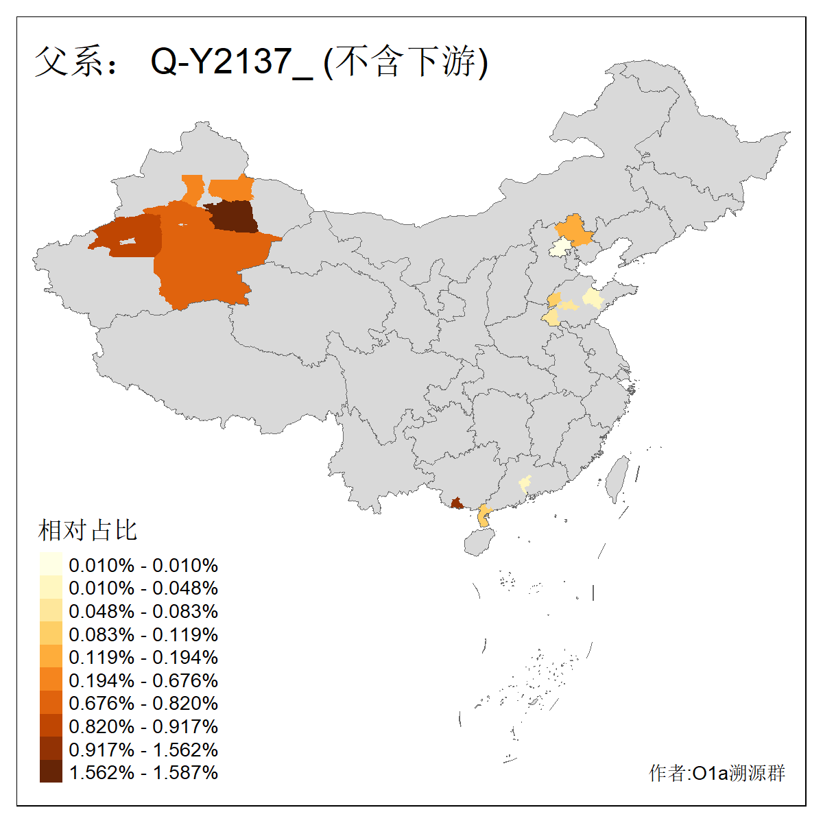 | Q_Q-L275_Q-F1213 | 9730 | 0.042% | 62人(含下游) 李:10 马:6 杨:4 高:3 余:2 努:2 康:2 张:2 艾:2 金:2 阿:2 陈:2 任:1 傅:1 ![]() | 4人(不含下游) 努:1 吾:1 李:1 马:1 ![]() |