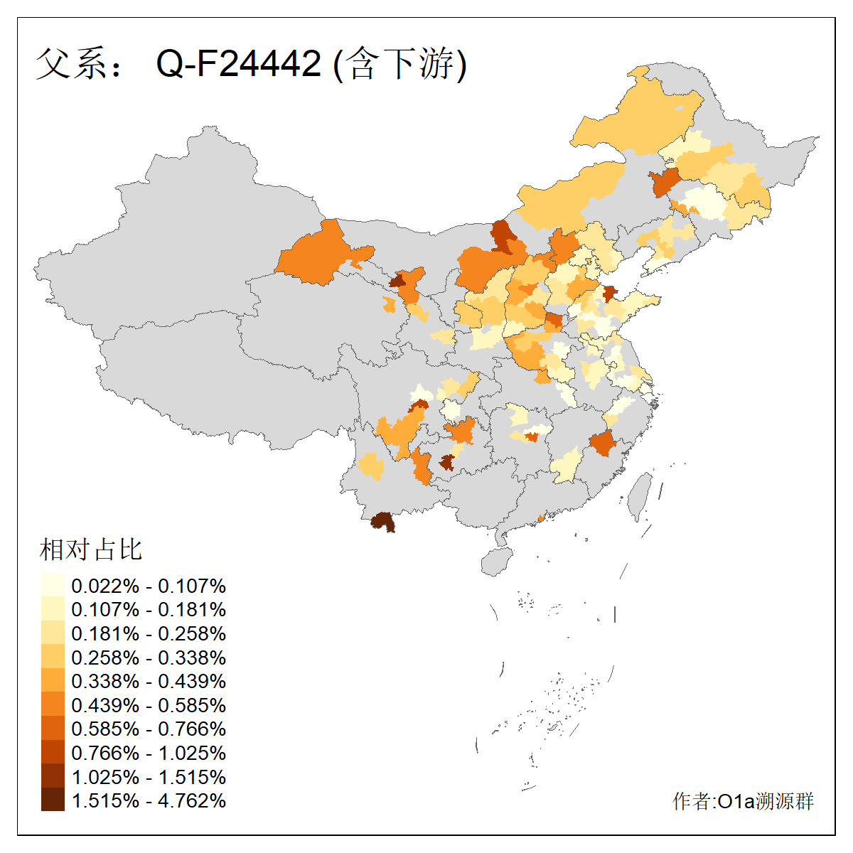 | Q_Q-L472_Q-F1096_Q-F746_Q-M120_Q-Y630_Q-Z19154_Q-F1626_Q-Y560_Q-Y542_Q-F4528_Q-Y565_Q-F4777_Q-F4759_Q-Y559_Q-Y17430_Q-Y557_Q-MF176330 | 3030 | 0.503% | 272人(含下游) 张:36 李:16 王:14 陈:12 刘:11 孙:8 居:8 周:7 龚:7 杨:6 许:6 范:5 邢:5 兴:4 ![]() | 0人(不含下游) |