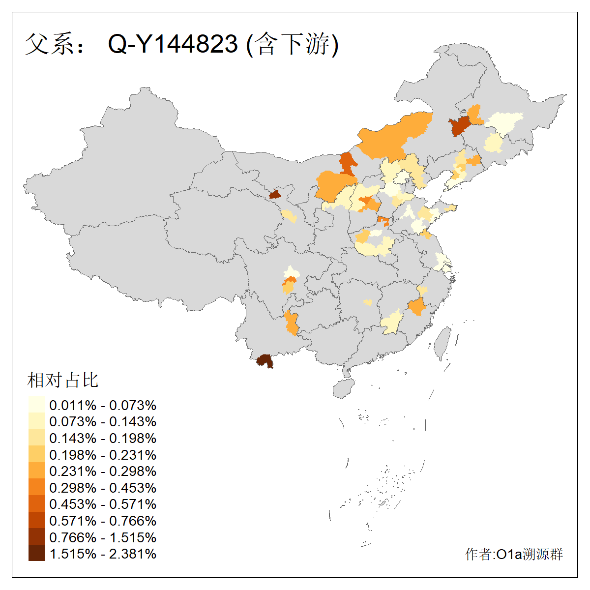| Q_Q-L472_Q-F1096_Q-F746_Q-M120_Q-Y630_Q-Z19154_Q-F1626_Q-Y560_Q-Y542_Q-F4528_Q-Y565_Q-F4777_Q-F4759_Q-Y559_Q-Y17430_Q-Y557_Q-MF176330_Q-Y562 | 2960 | 0.133% | 244人(含下游) 张:34 李:14 王:11 陈:11 刘:8 孙:8 居:8 周:7 龚:7 杨:6 许:5 邢:5 兴:4 吴:4 ![]() | 87人(不含下游) 张:16 李:7 周:4 孙:4 王:4 陈:4 牛:3 龚:3 丁:2 刘:2 吴:2 曹:2 秦:2 葛:2 ![]() |