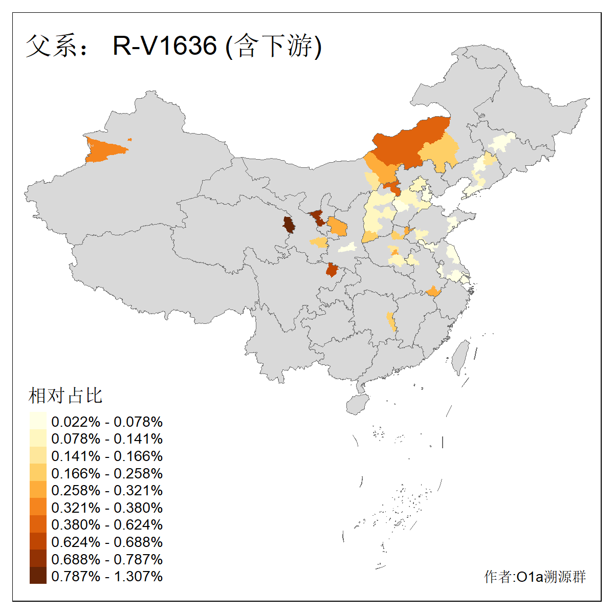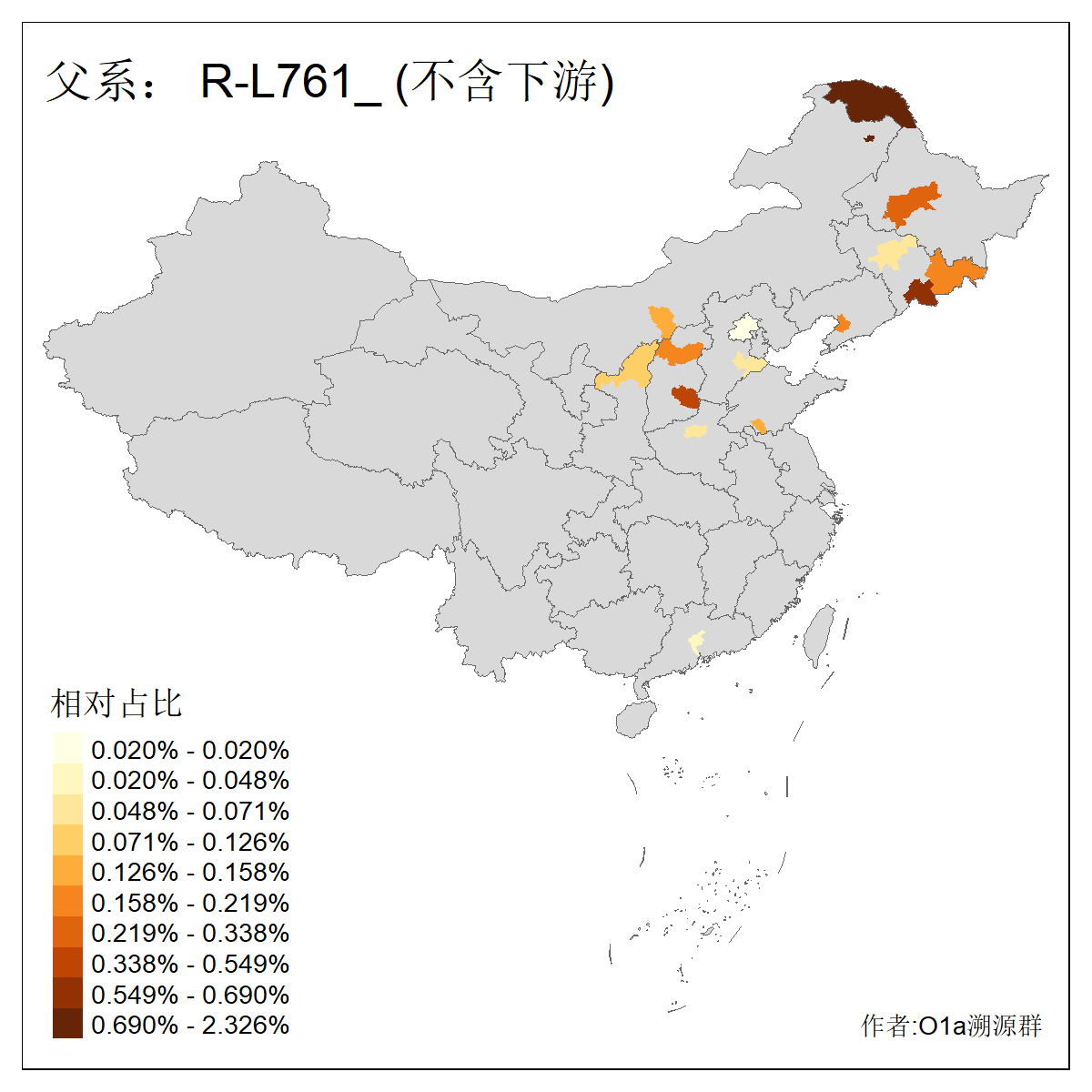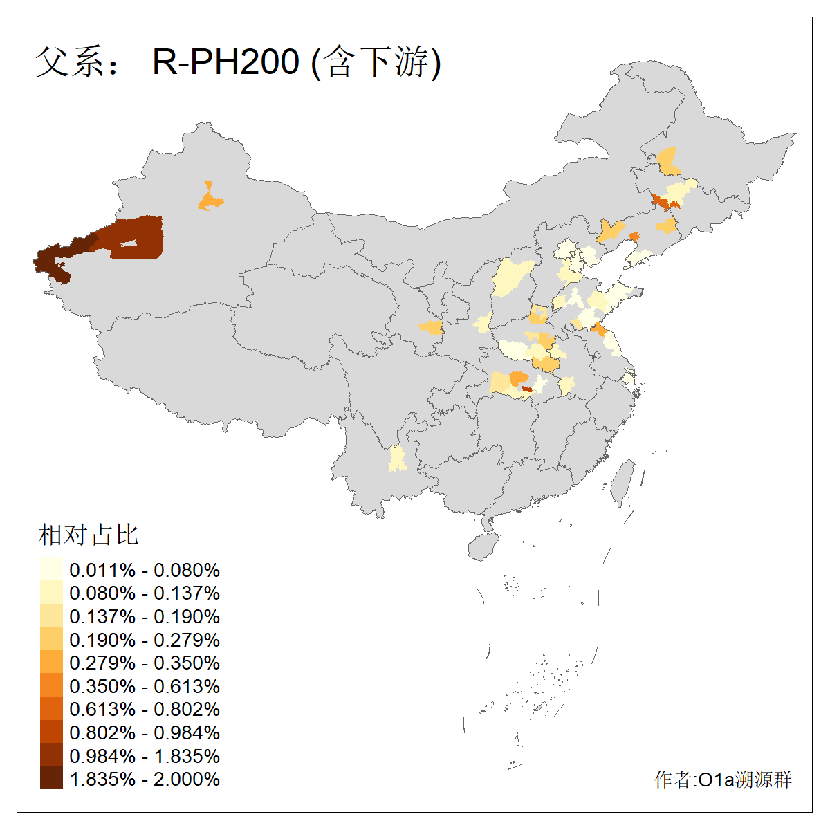 | R_R-Y482_R1_R-M343_R-L754_R-L761 | 17730 | 0.291% | 673人(含下游) 张:46 李:37 王:36 马:35 刘:25 杨:21 丁:12 曹:12 苗:12 安:10 韩:10 白:8 艾:8 赵:8 ![]() | 20人(不含下游) 张:5 杨:4 白:2 阎:2 扈:1 曹:1 李:1 霍:1 韩:1 ![]() |