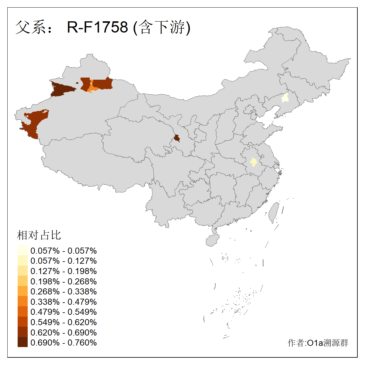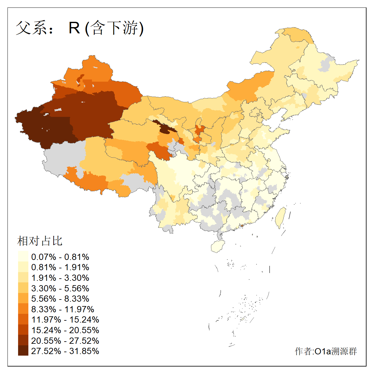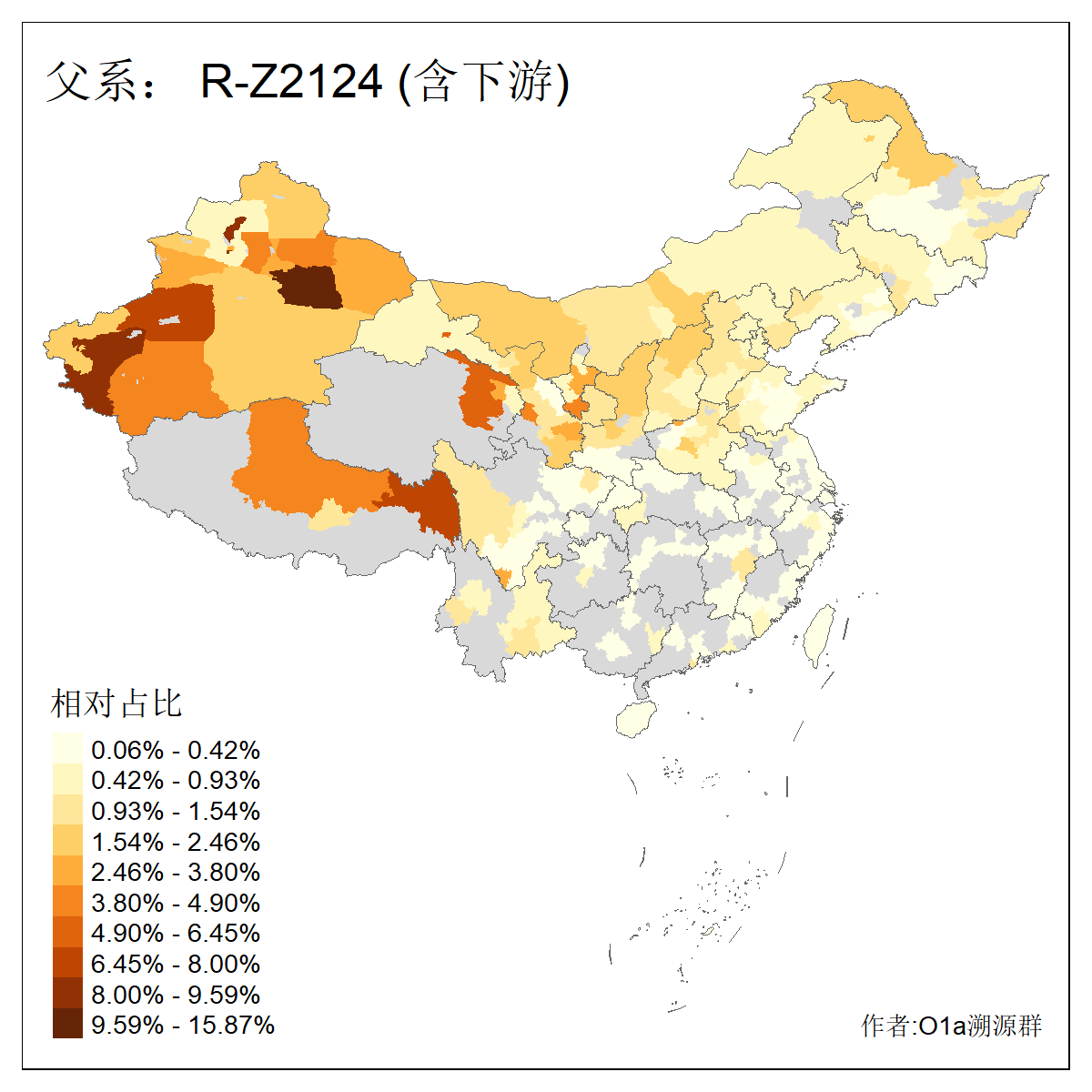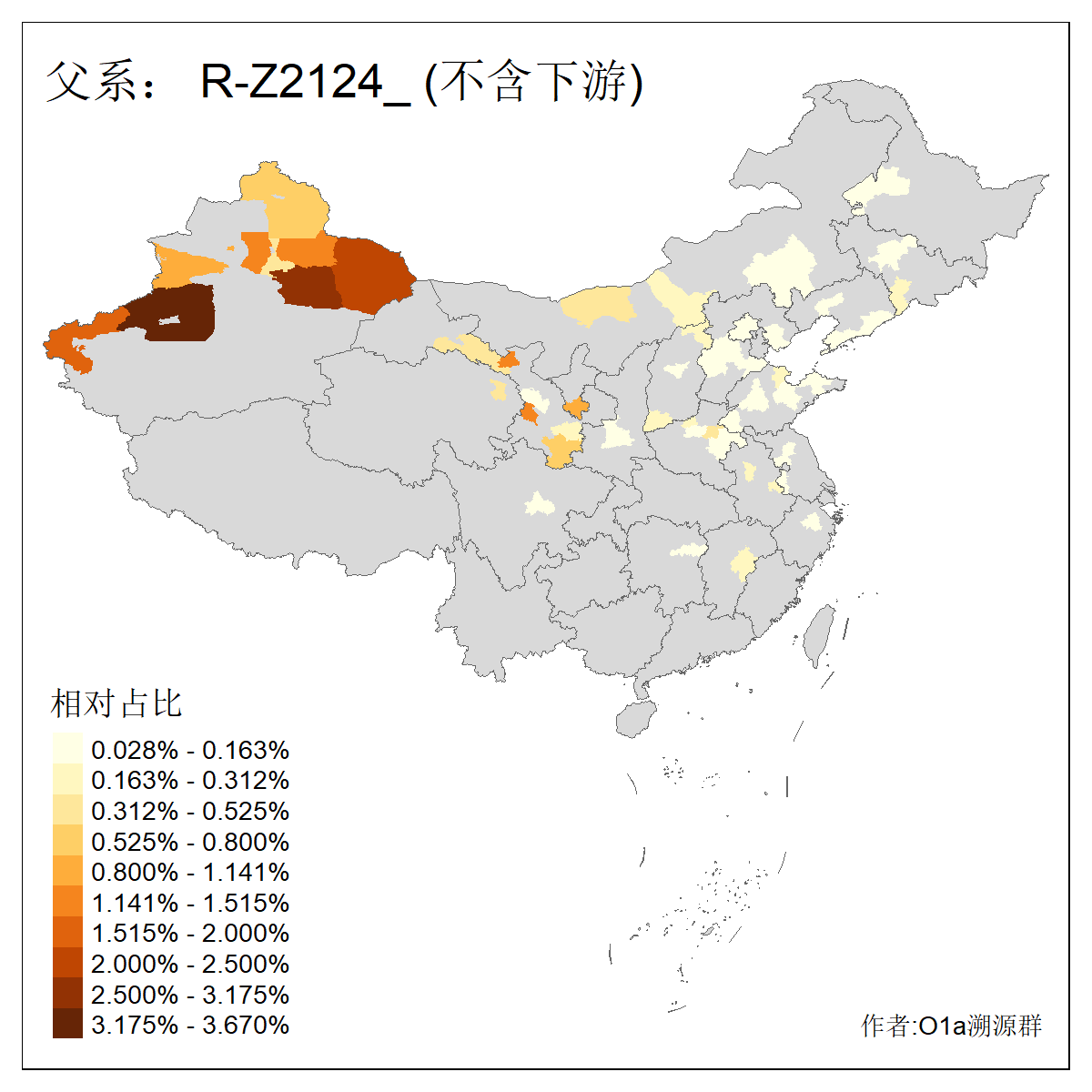 | R_R-Y482_R1_R1a_R-M459_R-M198_R-M417_R-PF6162_R-F992_R-F3105_R-Z2124_R-S4576 | 4160 | 0.100% | 212人(含下游) 王:18 张:17 李:12 卓:10 马:10 刘:9 白:9 陈:9 徐:6 胡:6 高:6 杨:5 赵:5 郑:4 ![]() | 36人(不含下游) 王:4 张:3 白:3 雷:3 马:2 克:1 吴:1 察:1 屈:1 康:1 徐:1 施:1 曹:1 李:1 ![]() |