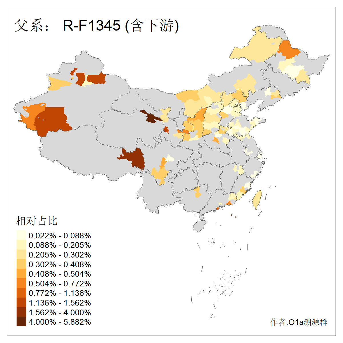 | R_R-Y482_R1_R-M343_R-L754_R-L761_R-L389 | 17720 | 0.287% | 645人(含下游) 张:39 李:36 王:36 马:35 刘:25 杨:15 丁:12 苗:12 曹:11 安:10 韩:9 艾:8 赵:8 陈:8 ![]() | 0人(不含下游) |